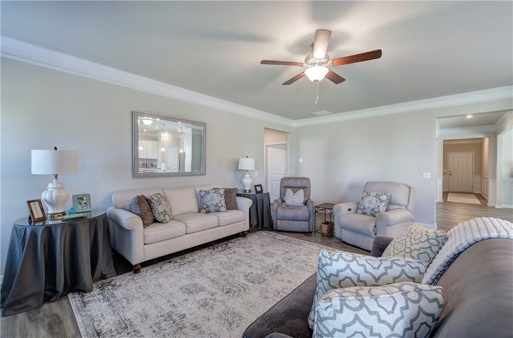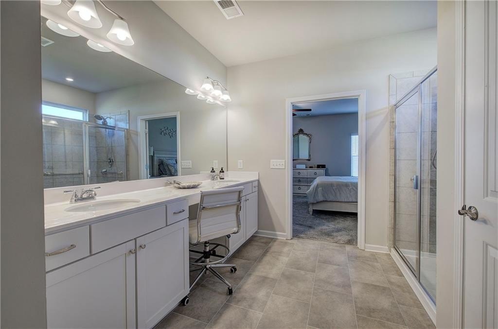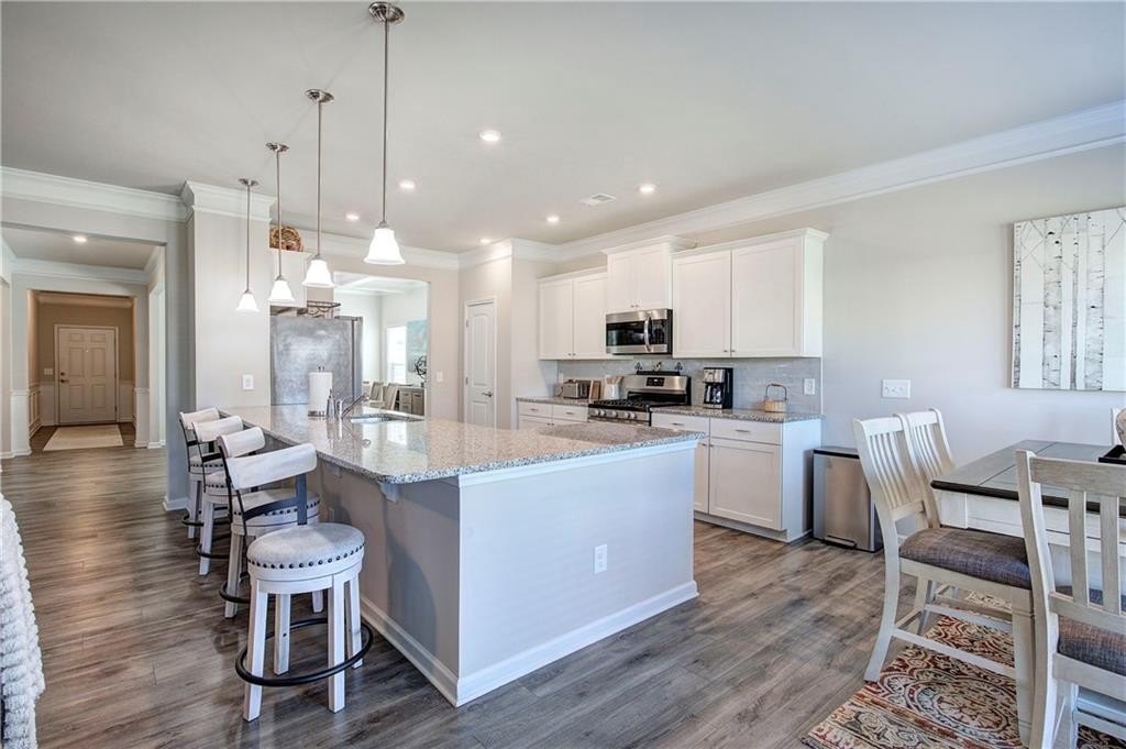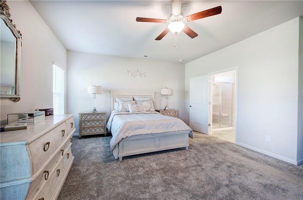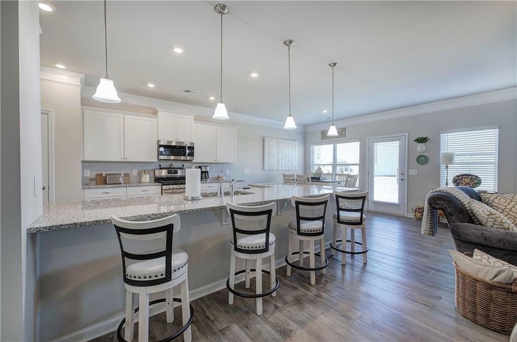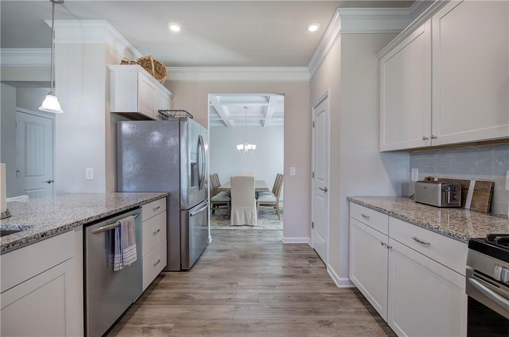 Single-Level Elegance with Open-Concept Living! Welcome home to this beautifully designed, single-level gem—where open-concept living meets comfort, style, and convenience! Only three years old and meticulously maintained, this spacious home offers the perfect blend of modern design and thoughtful functionality, all without a single stair to climb. Step inside to find an expansive layout ideal for both entertaining and everyday living. The heart of the home is the stunning kitchen, featuring a large granite bar that can comfortably seat up to eight and still have room to make cookies, upgraded gas stove and refrigerator, abundant drawer space, and a large pantry. A bright breakfast area provides a cozy spot for morning coffee, while the separate formal dining room—with elegant coffered ceilings—sets the stage for gatherings and special occasions. The inviting living room offers a sense of warmth and connection, centered around a beautiful fireplace that serves as the main focal point. The home’s thoughtful layout continues into the oversized primary suite, which provides ample space for your ideal furniture arrangement. The ensuite bathroom features a massive, tiled shower with bench seating, a wide dual-sink vanity with generous counter space, and two large closets for storage. The huge walk in closet connects directly to the laundry room—an exceptionally convenient design that also allows a second entrance for household use. Storage is abundant throughout this home, with multiple closets perfectly placed, including a mudroom closet, a front hall closet, and additional storage options that make organization effortless. On the opposite side of the home, you’ll find two spacious secondary bedrooms, one with a walk-in closet, along with two additional full bathrooms—ideal for guests or family members. With so much built-in storage, you can actually use your two-car garage for parking, not overflow! Enjoy life in this friendly, newer community—perfect for evening walks or meeting neighbors at the community pool and playground. All of this comes with the convenience of city living: close to the Cartersville Market, downtown festivals and concerts, museums, shopping, and easy access to I-75 for effortless commuting. Experience single-level living at its finest—modern, open, and perfectly located in the heart of Cartersville. Agent is related to the owner and has an interest in this sale.
