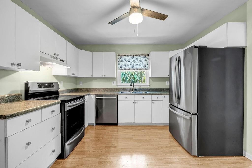 Enjoy peace of mind with a newer energy-efficient heating and air conditioning system, updated gutters and downspouts, and sleek stainless steel appliances in the kitchen, including an induction range. The home sits on a large lot with a level, fully fenced backyard—ideal for entertaining on the patio, playing with pets, or expanding your gardening dreams with the existing vegetable garden area.