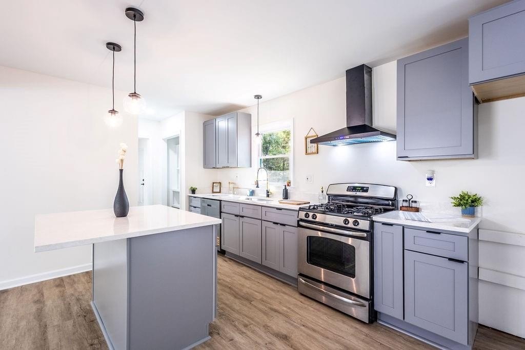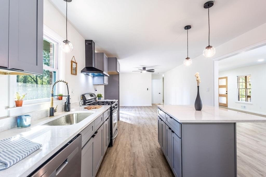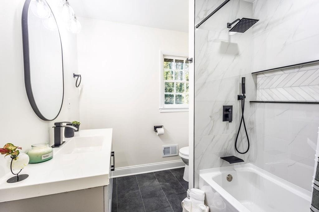 Modern Renovation in Prime Marietta Location. This home offers a classic charm that meets modern luxury. This fully renovated 3 bedroom, 2-bathroom home delivers style, comfort, and convenience. Thoughtfully updated from top to bottom, the kitchen is a true focal point, offering stunning quartz countertops, crisp grey cabinetry, custom lighting, and a generous island—ideal for entertaining or enjoying everyday meals in style. Both bathrooms have been transformed into serene retreats with modern tile work, spa-like finishes, and elegant fixtures that elevate the entire living experience. Flooded with natural light, the home feels warm and welcoming in every room. Outside, enjoy your private backyard oasis that is perfect for entertaining or a place for the kids to run around in. Located in a quiet, established neighborhood with no HOA, this home offers access to everything Marietta and Easy Access to Atlanta. Just minutes from Smyrna, The Battery, Truist Park, and I-75, and a short drive to downtown Marietta, you'll enjoy proximity to top-rated schools, parks, restaurants, shopping, and entertainment options. This home is ready for you to make it yours!