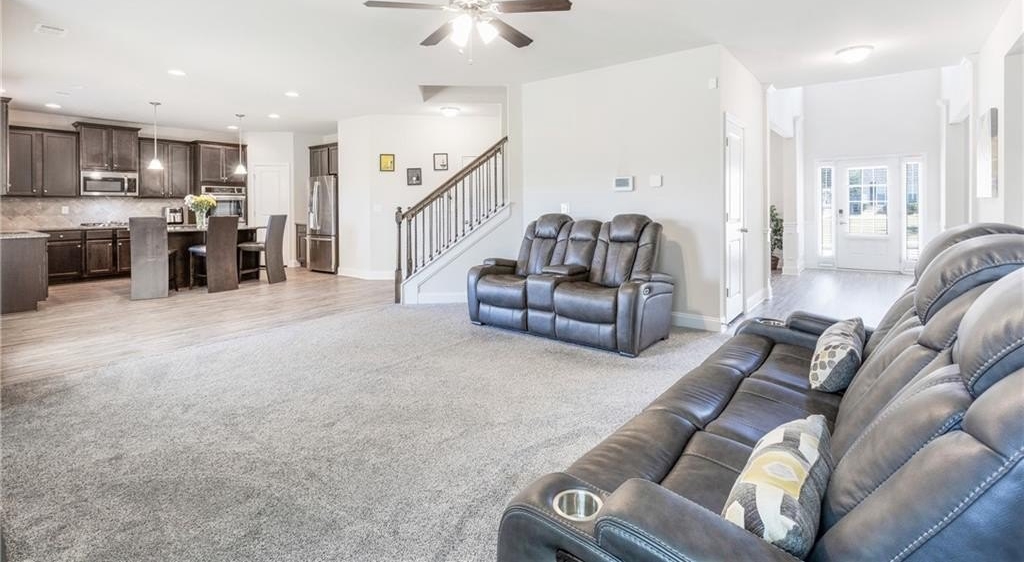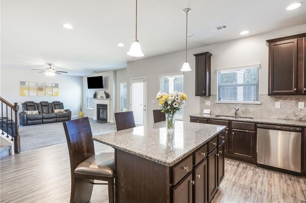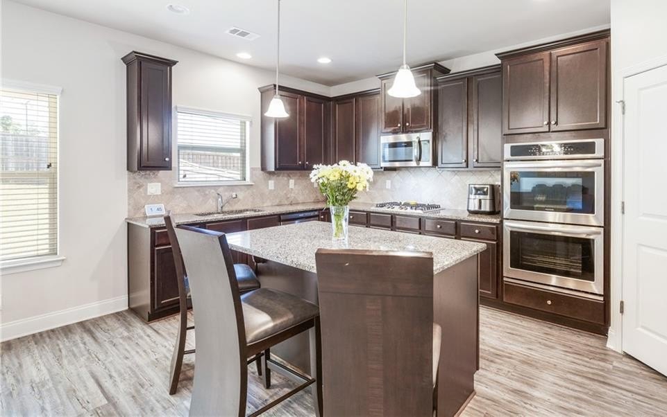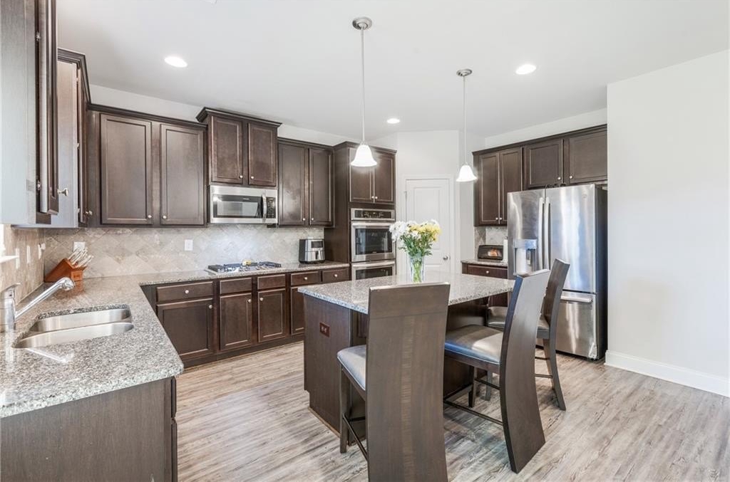 Beautiful spacious well maintained home, 5 bedrooms , 4 full baths, super clean with over 3,000+ sq. .ft, 9 foot ceilings and thoughtful upgrades, luxury vinyl flooring, coffered ceiling in dining room, chefs style kitchen with island, granite counter tops, double ovens, gas stove, microwave, large fridge that has a hot coffee making feature, 42 inch cabinetry and a walk-in pantry.