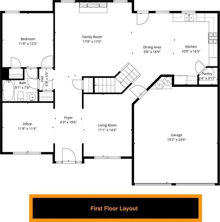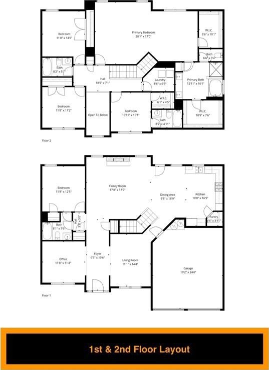 First floor has a large bedroom with private access to the full bath, kitchen, dining room, family room and office/flex room.