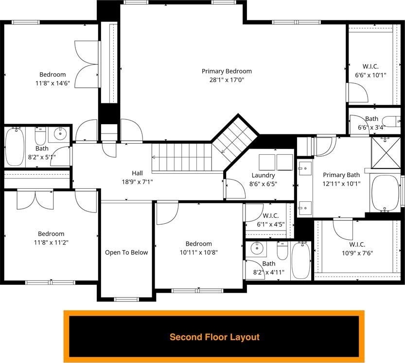 The second floor features a balcony that overlooks the foyer, 4 additional bedrooms with 3 full baths and the primary suite has sitting area as well as two full size walk-in closets.