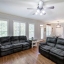 Upstairs, the oversized owner’s suite boasts a private sitting room, massive walk-in closet, and spa-like bath with double vanities, soaking tub, and tiled shower. Four additional spacious bedrooms include two Jack-and-Jill baths for convenience.