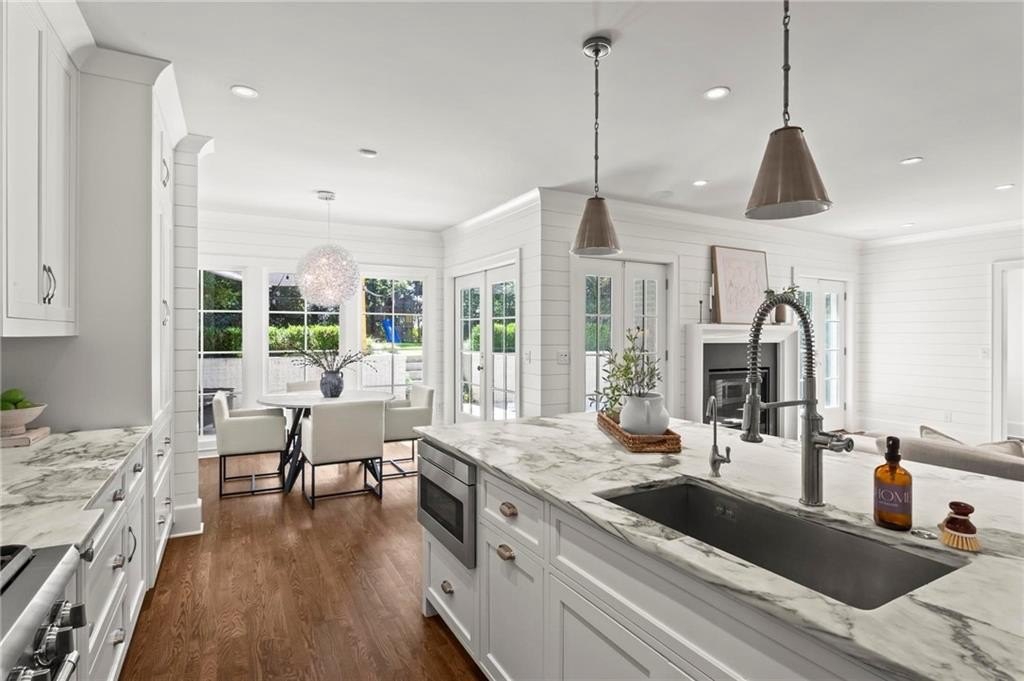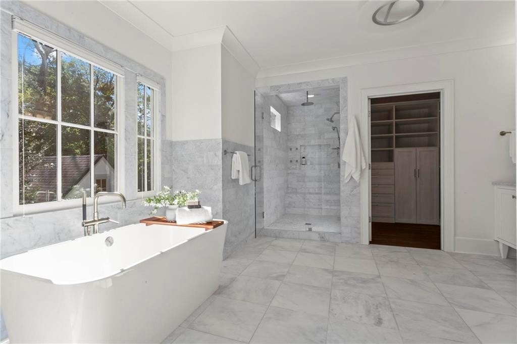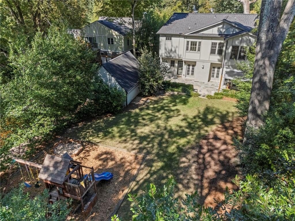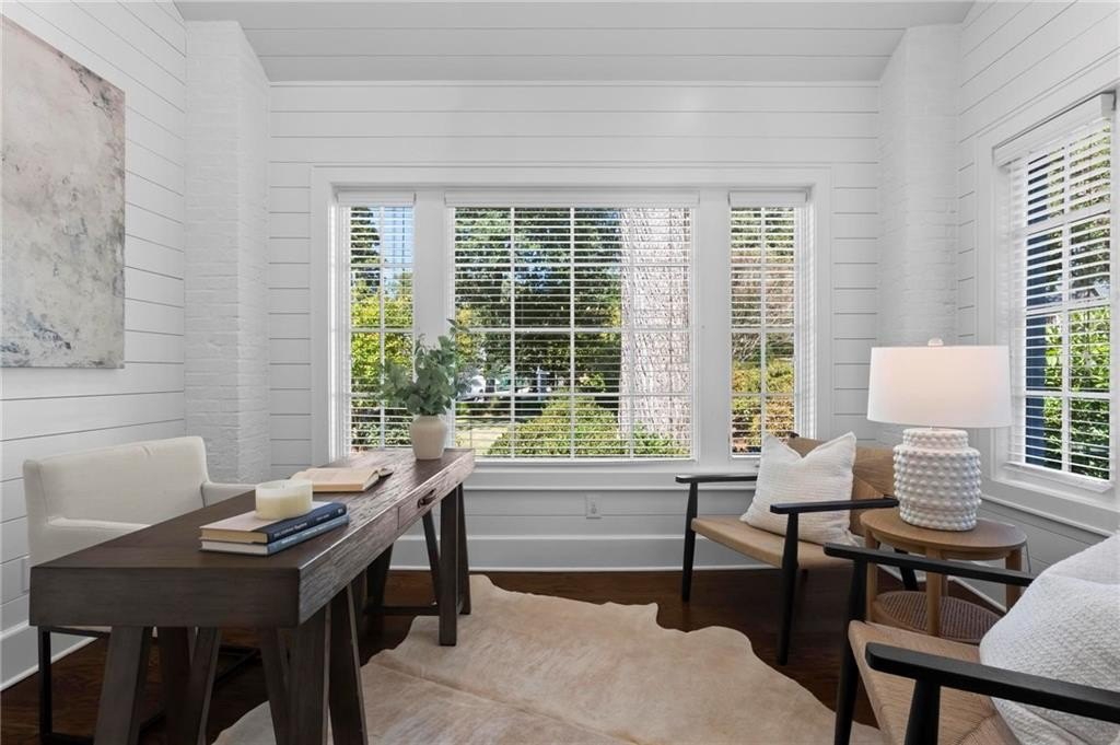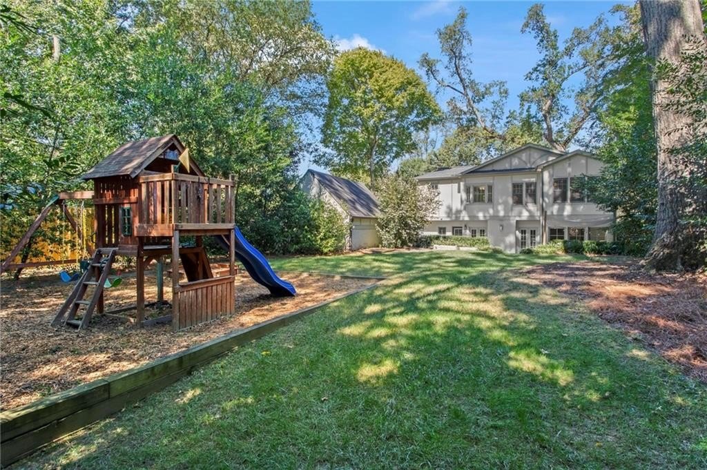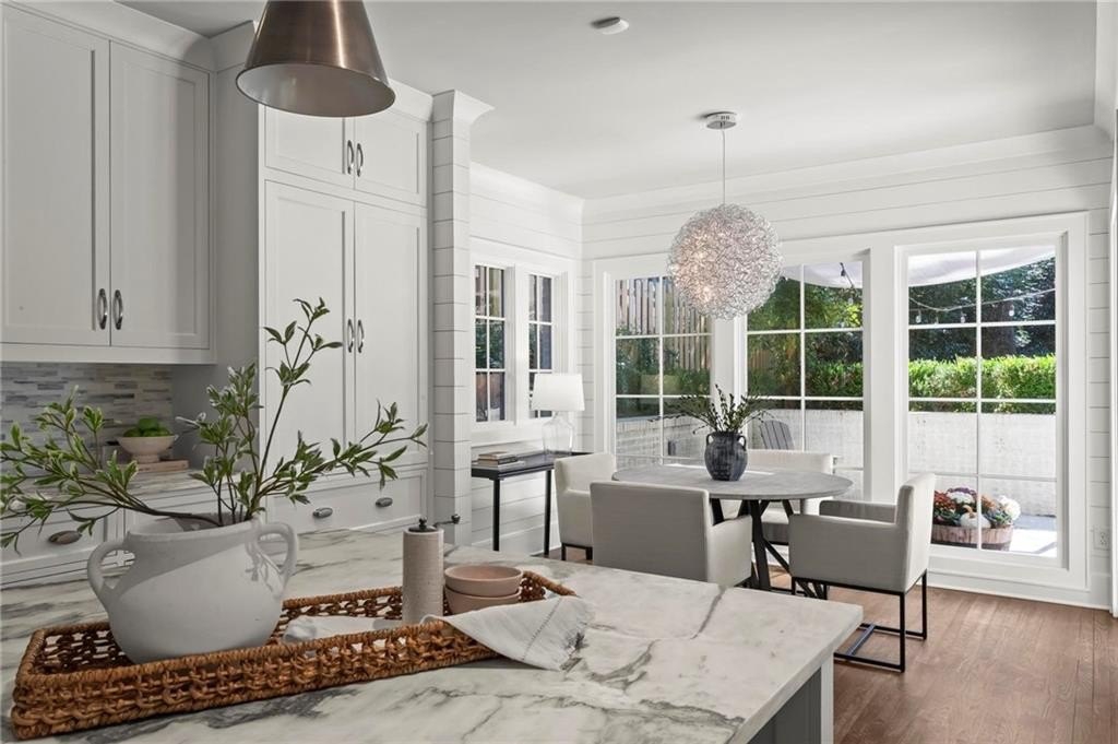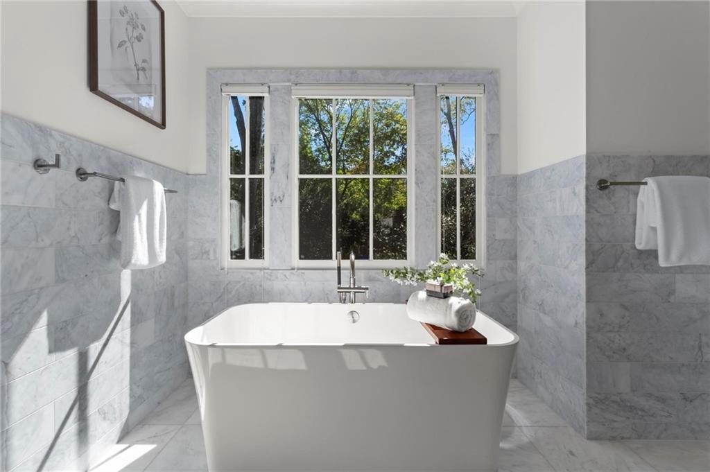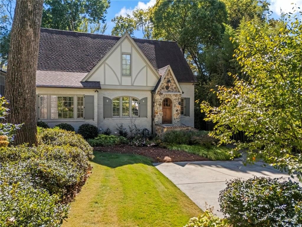 Quintessential Morningside Tudor, expertly renovated and expanded by Horner Homes in 2018, is a dream retreat in an idyllic location. Lush landscaping, generous parking, and a charming front porch make for an easy welcome to greet guests upon arrival. Once inside the arched front door, an open floor plan, high ceilings, extensive trim package and timeless hardwood floors will impress the most discerning eye. The fireside sitting room overlooks the front gardens and opens to the large formal dining space, set beneath a new designer chandelier. Tucked behind a pair of pocket doors, the vaulted office space means serious business. At home chefs will surely delight in this gourmet kitchen boasting a butler’s pantry, custom millwork cabinetry, oversized marble island and commercial grade appliances. The rear half of this main floor is meant for casual entertaining with its sun-drenched breakfast nook, fireside family room (complete with surround sound upgrades and charming French doors), plus a useful mudroom with delightful storage. Rounding out the first level is a cute powder room and an oversized guest suite with generous walk-in closet and private en-suite bathroom. Upstairs you’ll find a massive primary suite complete with a sitting area overlooking the rear courtyard and an in-room wet bar ready for morning coffee. Dripping in marble, the lavish primary bathroom is an expert showcase in timeless design with dual vanities, large shower, soaking tub, and access to the oversized walk-in closet with custom cabinetry. The upstairs laundry room makes the inevitable chore a bit more convenient and manageable. Two additional guest bedrooms, each with private en-suite marble bathrooms, and attic storage complete this upper level. Outside, the stone courtyard exudes old world charm and overlooks the flat, fenced backyard featuring a custom playset and mature trees for ample privacy. Don’t miss the detached one car garage plus more homeowner parking behind the driveway gate. Tree-lined streets with sidewalks, friendly neighbors, pocket parks and top-rated schools define the Morningside neighborhood. Enviable location is moments from Piedmont Park and the Beltline plus local favorite restaurants, boutiques, and coffee shops. You will be hard pressed to find another home in all of intown Atlanta that marries charm and luxury so seamlessly with modern livability. Welcome home to 893 E Rock Springs, where life is good and living is easy.