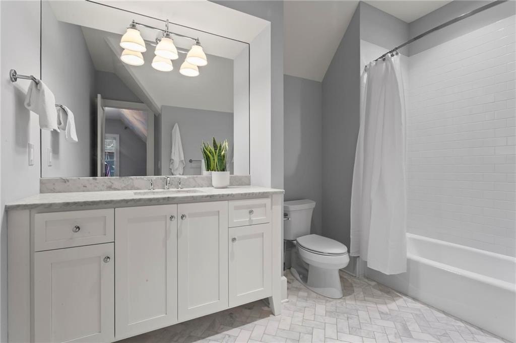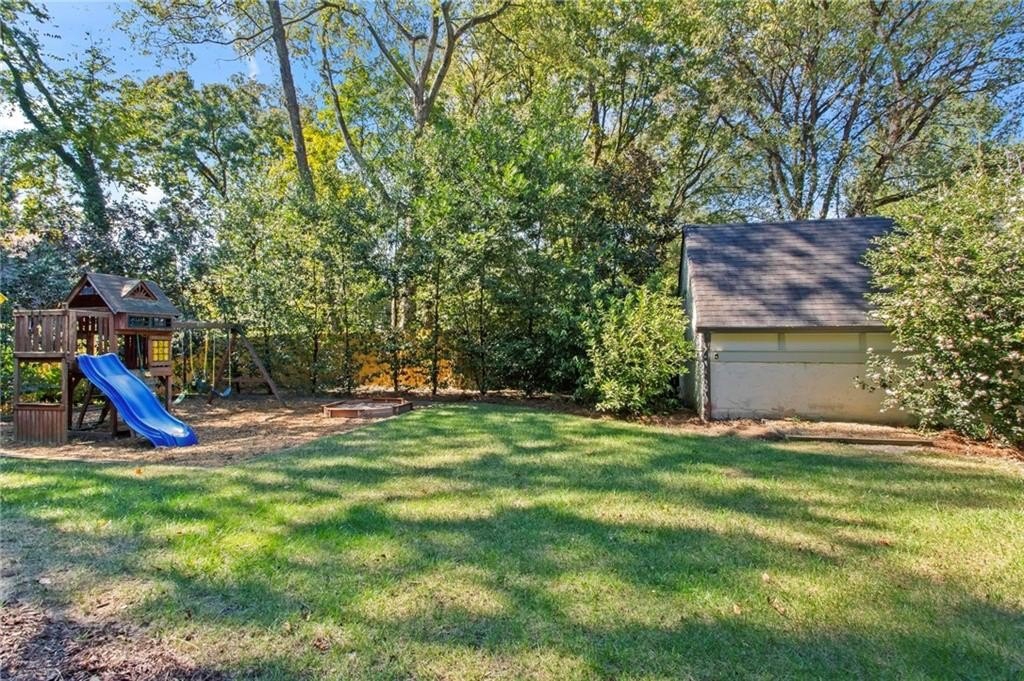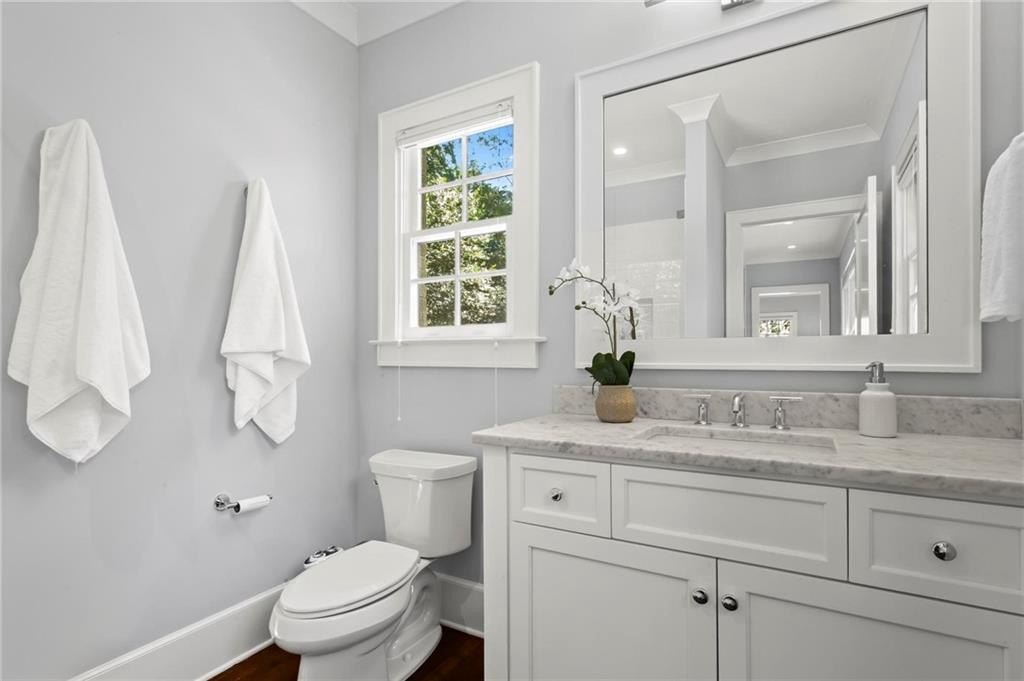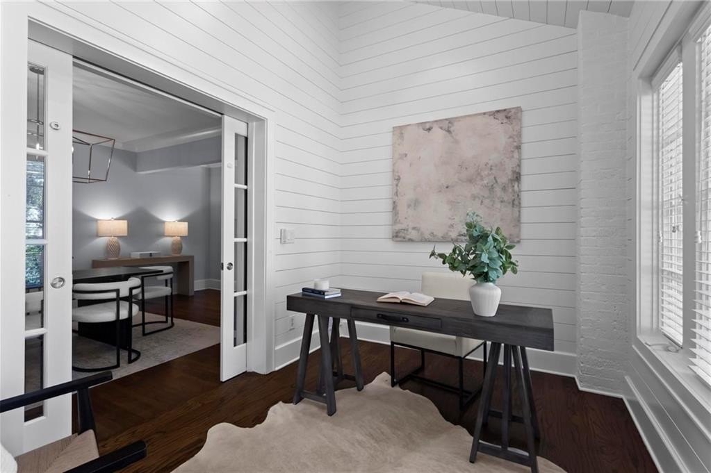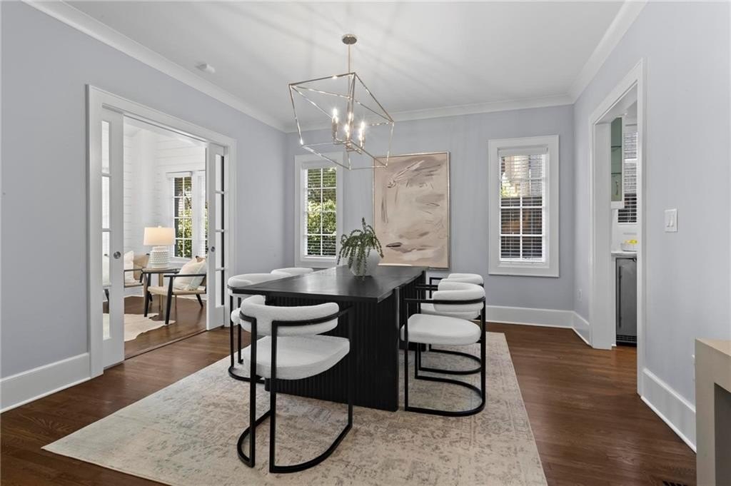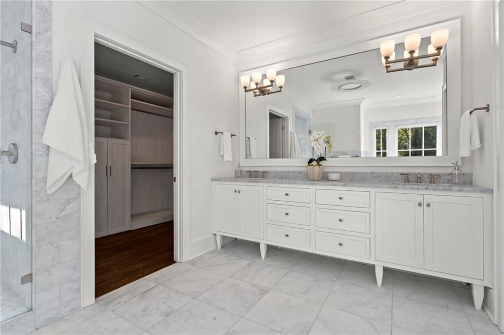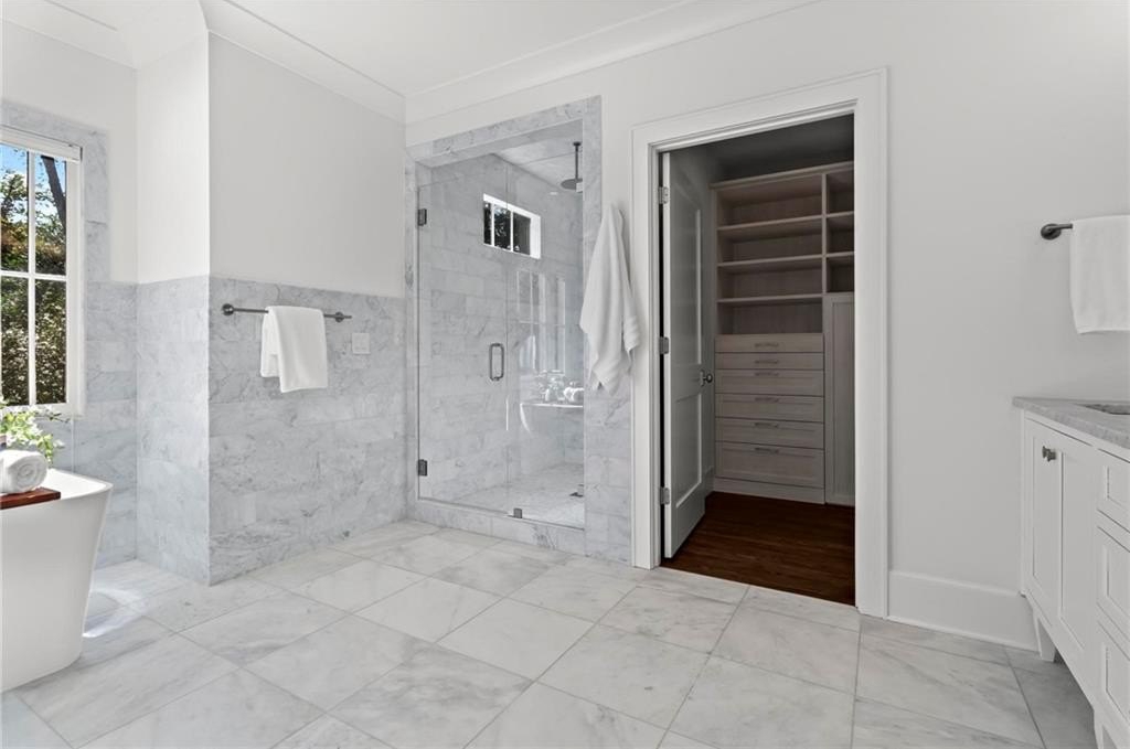 Quintessential Morningside Tudor, expertly renovated and expanded by Horner Homes in 2018, is a dream retreat in an idyllic location. Lush landscaping, generous parking, and a charming front porch make for an easy welcome to greet guests upon arrival. Once inside the arched front door, an open floor plan, high ceilings, extensive trim package and timeless hardwood floors will impress the most discerning eye. The fireside sitting room overlooks the front gardens and opens to the large formal dining space, set beneath a new designer chandelier. Tucked behind a pair of pocket doors, the vaulted office space means serious business. At home chefs will surely delight in this gourmet kitchen boasting a butler’s pantry, custom millwork cabinetry, oversized marble island and commercial grade appliances. The rear half of this main floor is meant for casual entertaining with its sun-drenched breakfast nook, fireside family room (complete with surround sound upgrades and charming French doors), plus a useful mudroom with delightful storage. Rounding out the first level is a cute powder room and an oversized guest suite with generous walk-in closet and private en-suite bathroom. Upstairs you’ll find a massive primary suite complete with a sitting area overlooking the rear courtyard and an in-room wet bar ready for morning coffee. Dripping in marble, the lavish primary bathroom is an expert showcase in timeless design with dual vanities, large shower, soaking tub, and access to the oversized walk-in closet with custom cabinetry. The upstairs laundry room makes the inevitable chore a bit more convenient and manageable. Two additional guest bedrooms, each with private en-suite marble bathrooms, and attic storage complete this upper level. Outside, the stone courtyard exudes old world charm and overlooks the flat, fenced backyard featuring a custom playset and mature trees for ample privacy. Don’t miss the detached one car garage plus more homeowner parking behind the driveway gate. Tree-lined streets with sidewalks, friendly neighbors, pocket parks and top-rated schools define the Morningside neighborhood. Enviable location is moments from Piedmont Park and the Beltline plus local favorite restaurants, boutiques, and coffee shops. You will be hard pressed to find another home in all of intown Atlanta that marries charm and luxury so seamlessly with modern livability. Welcome home to 893 E Rock Springs, where life is good and living is easy.
