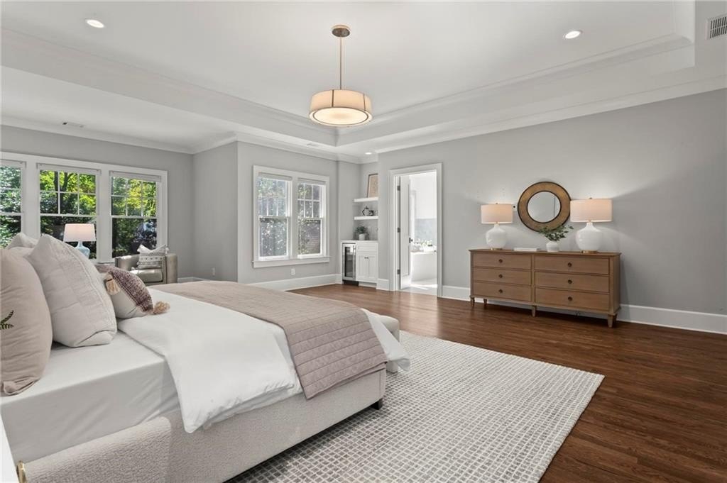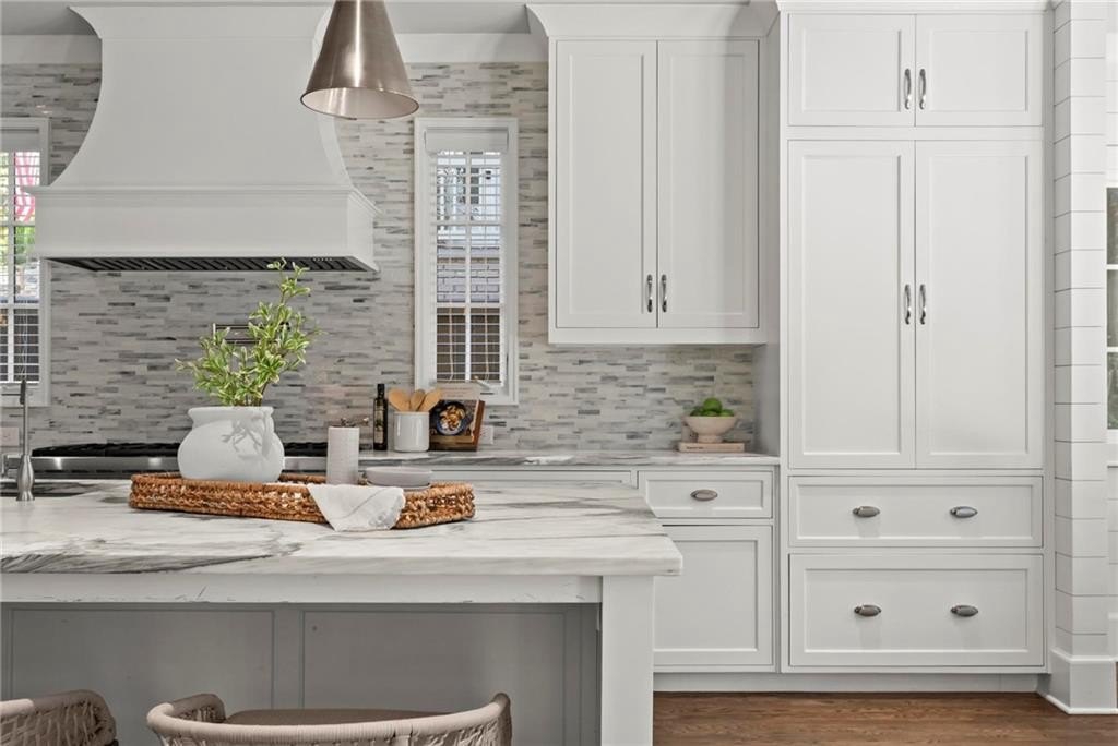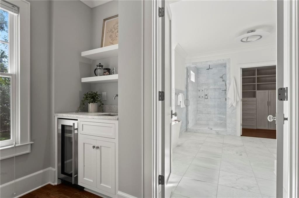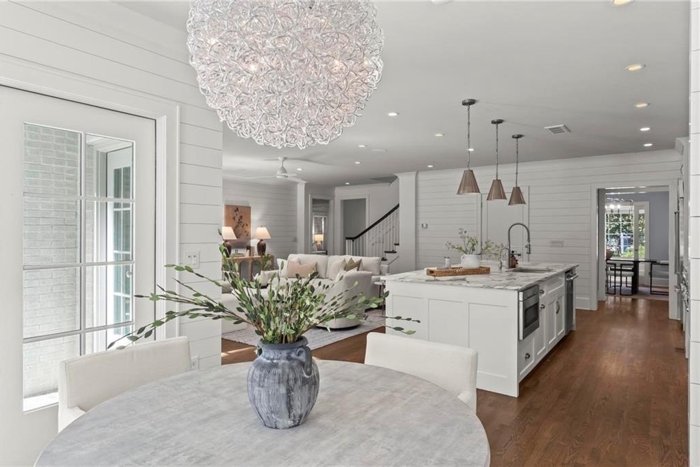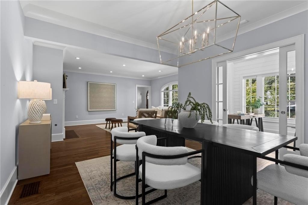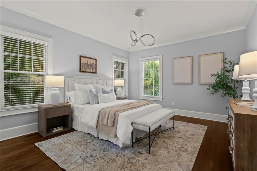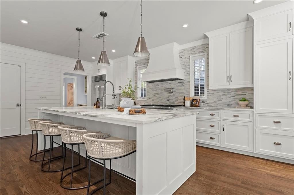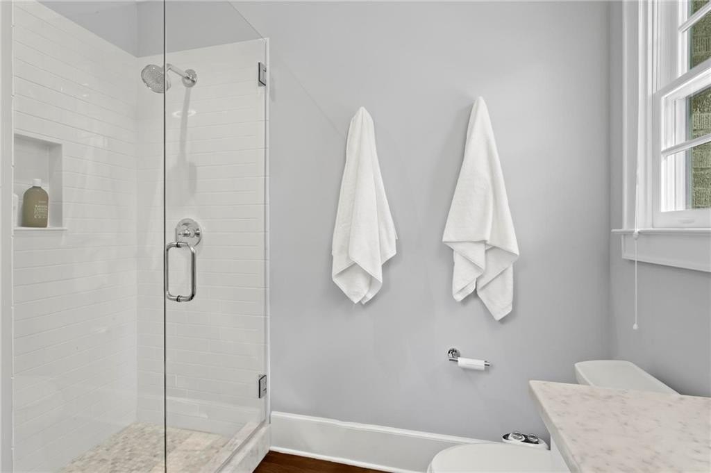 Quintessential Morningside Tudor, expertly renovated and expanded by Horner Homes in 2018, is a dream retreat in an idyllic location. Lush landscaping, generous parking, and a charming front porch make for an easy welcome to greet guests upon arrival. Once inside the arched front door, an open floor plan, high ceilings, extensive trim package and timeless hardwood floors will impress the most discerning eye. The fireside sitting room overlooks the front gardens and opens to the large formal dining space, set beneath a new designer chandelier. Tucked behind a pair of pocket doors, the vaulted office space means serious business. At home chefs will surely delight in this gourmet kitchen boasting a butler’s pantry, custom millwork cabinetry, oversized marble island and commercial grade appliances. The rear half of this main floor is meant for casual entertaining with its sun-drenched breakfast nook, fireside family room (complete with surround sound upgrades and charming French doors), plus a useful mudroom with delightful storage. Rounding out the first level is a cute powder room and an oversized guest suite with generous walk-in closet and private en-suite bathroom. Upstairs you’ll find a massive primary suite complete with a sitting area overlooking the rear courtyard and an in-room wet bar ready for morning coffee. Dripping in marble, the lavish primary bathroom is an expert showcase in timeless design with dual vanities, large shower, soaking tub, and access to the oversized walk-in closet with custom cabinetry. The upstairs laundry room makes the inevitable chore a bit more convenient and manageable. Two additional guest bedrooms, each with private en-suite marble bathrooms, and attic storage complete this upper level. Outside, the stone courtyard exudes old world charm and overlooks the flat, fenced backyard featuring a custom playset and mature trees for ample privacy. Don’t miss the detached one car garage plus more homeowner parking behind the driveway gate. Tree-lined streets with sidewalks, friendly neighbors, pocket parks and top-rated schools define the Morningside neighborhood. Enviable location is moments from Piedmont Park and the Beltline plus local favorite restaurants, boutiques, and coffee shops. You will be hard pressed to find another home in all of intown Atlanta that marries charm and luxury so seamlessly with modern livability. Welcome home to 893 E Rock Springs, where life is good and living is easy.
