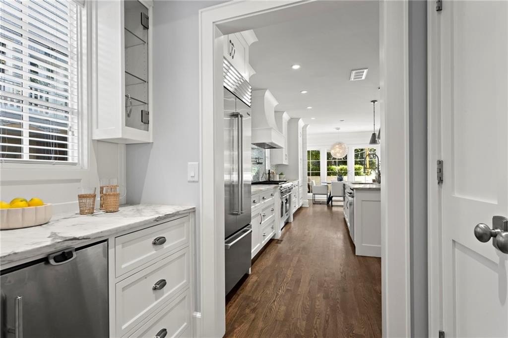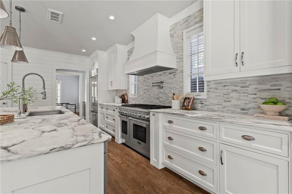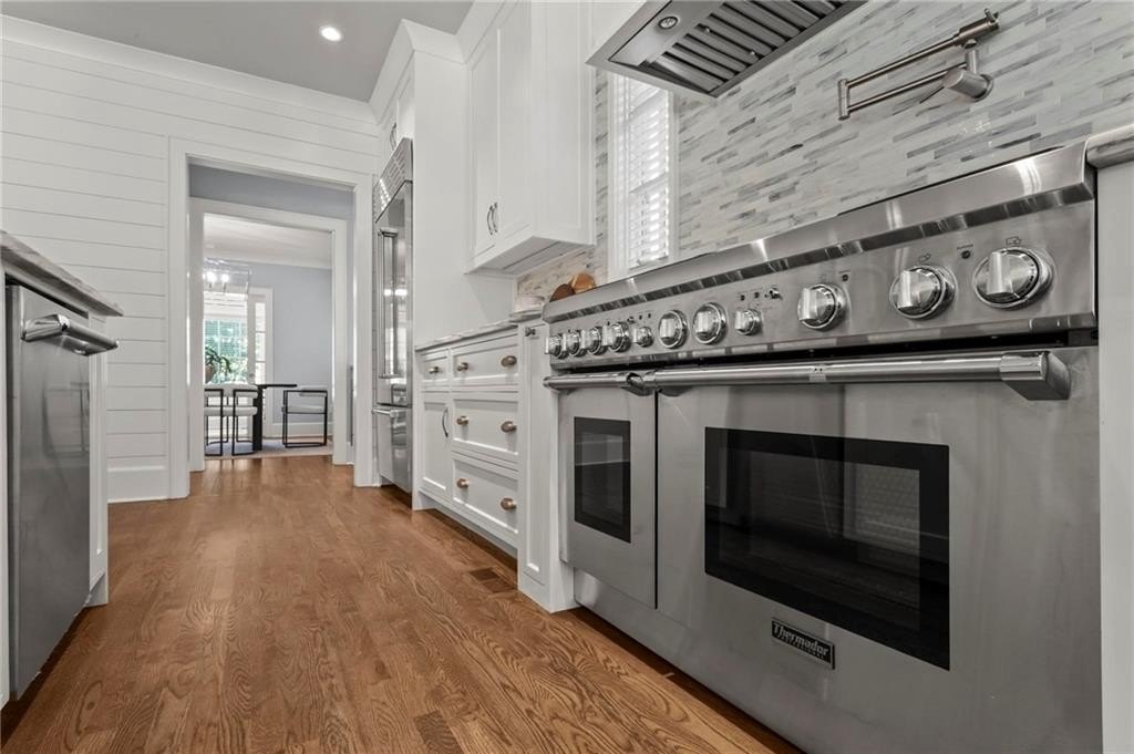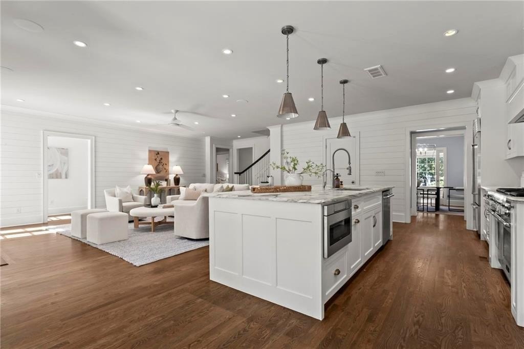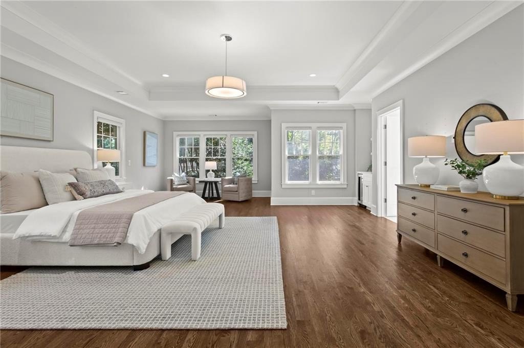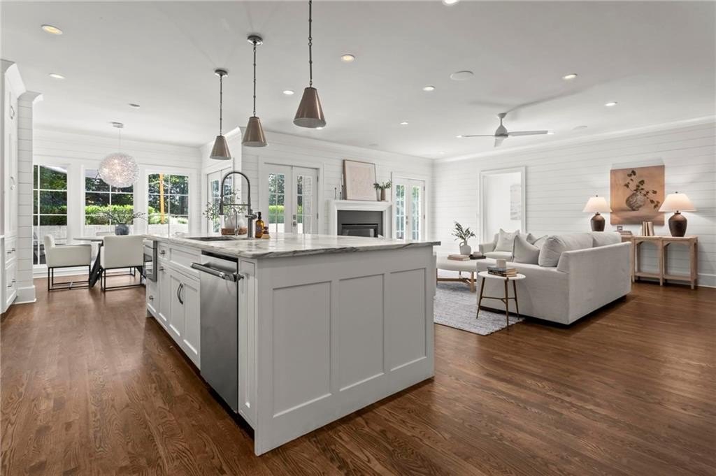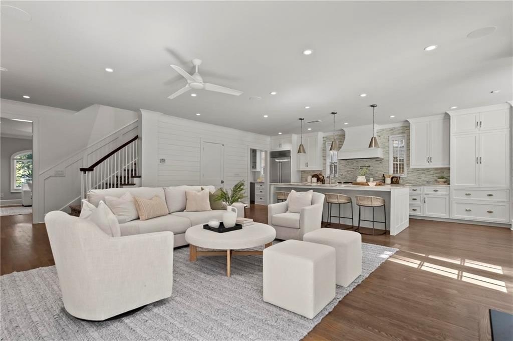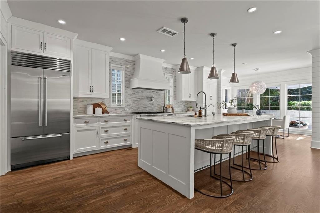 Quintessential Morningside Tudor, expertly renovated and expanded by Horner Homes in 2018, is a dream retreat in an idyllic location. Lush landscaping, generous parking, and a charming front porch make for an easy welcome to greet guests upon arrival. Once inside the arched front door, an open floor plan, high ceilings, extensive trim package and timeless hardwood floors will impress the most discerning eye. The fireside sitting room overlooks the front gardens and opens to the large formal dining space, set beneath a new designer chandelier. Tucked behind a pair of pocket doors, the vaulted office space means serious business. At home chefs will surely delight in this gourmet kitchen boasting a butler’s pantry, custom millwork cabinetry, oversized marble island and commercial grade appliances. The rear half of this main floor is meant for casual entertaining with its sun-drenched breakfast nook, fireside family room (complete with surround sound upgrades and charming French doors), plus a useful mudroom with delightful storage. Rounding out the first level is a cute powder room and an oversized guest suite with generous walk-in closet and private en-suite bathroom. Upstairs you’ll find a massive primary suite complete with a sitting area overlooking the rear courtyard and an in-room wet bar ready for morning coffee. Dripping in marble, the lavish primary bathroom is an expert showcase in timeless design with dual vanities, large shower, soaking tub, and access to the oversized walk-in closet with custom cabinetry. The upstairs laundry room makes the inevitable chore a bit more convenient and manageable. Two additional guest bedrooms, each with private en-suite marble bathrooms, and attic storage complete this upper level. Outside, the stone courtyard exudes old world charm and overlooks the flat, fenced backyard featuring a custom playset and mature trees for ample privacy. Don’t miss the detached one car garage plus more homeowner parking behind the driveway gate. Tree-lined streets with sidewalks, friendly neighbors, pocket parks and top-rated schools define the Morningside neighborhood. Enviable location is moments from Piedmont Park and the Beltline plus local favorite restaurants, boutiques, and coffee shops. You will be hard pressed to find another home in all of intown Atlanta that marries charm and luxury so seamlessly with modern livability. Welcome home to 893 E Rock Springs, where life is good and living is easy.