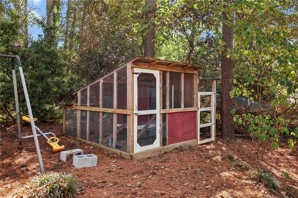 Charming and well-maintained Colonial home, ready for you to move in! Freshly painted inside and out, it features a flat, fenced play yard and a chicken coop This listing is filled with natural light, with rich hardwood floors and a central kitchen that create a great flow for entertaining in this quiet, tree lined neighborhood. Both full bathrooms have been completely updated located just two blocks from a beautiful community pool and 15 minutes from your Dekalb Farmers Market, it also offers easy access to the Stone Mountain bike PATH off Hambrick and is within minutes of the amenities of Clarkston, Avondale Estates, and Decatur. At this price, it won't last long, and you will not find a cozier, more solid home. The unfinished 622 square feet basement is ideal for a wood shop or craft room with direct backyard access. Laundry is conveniently located on the upstairs bedroom level, offering plenty of storage.