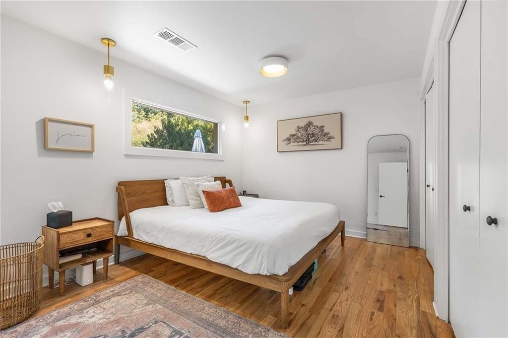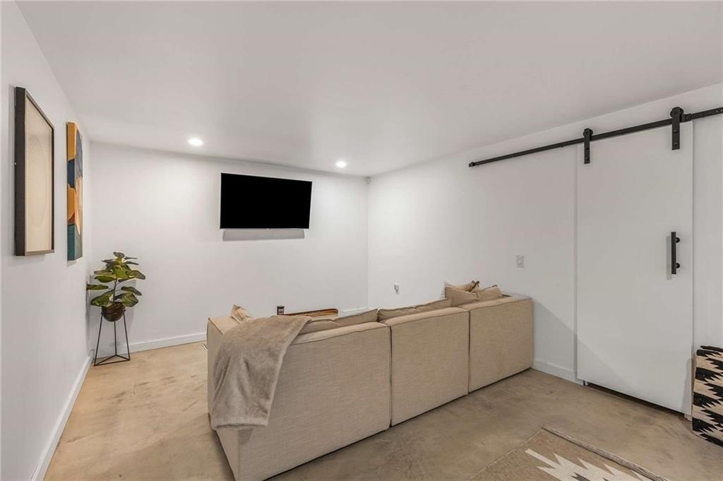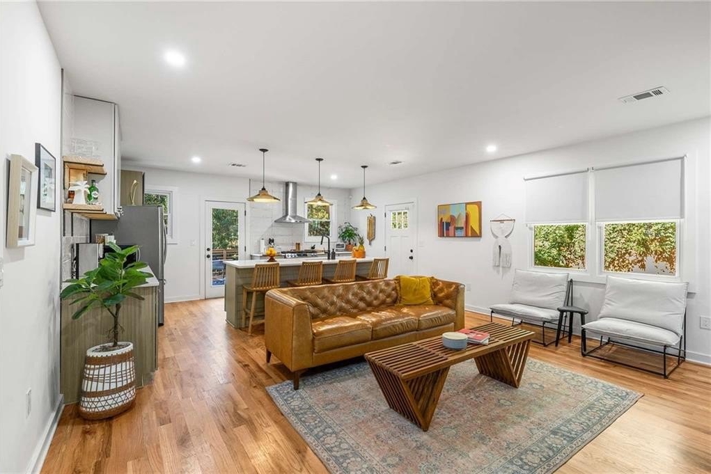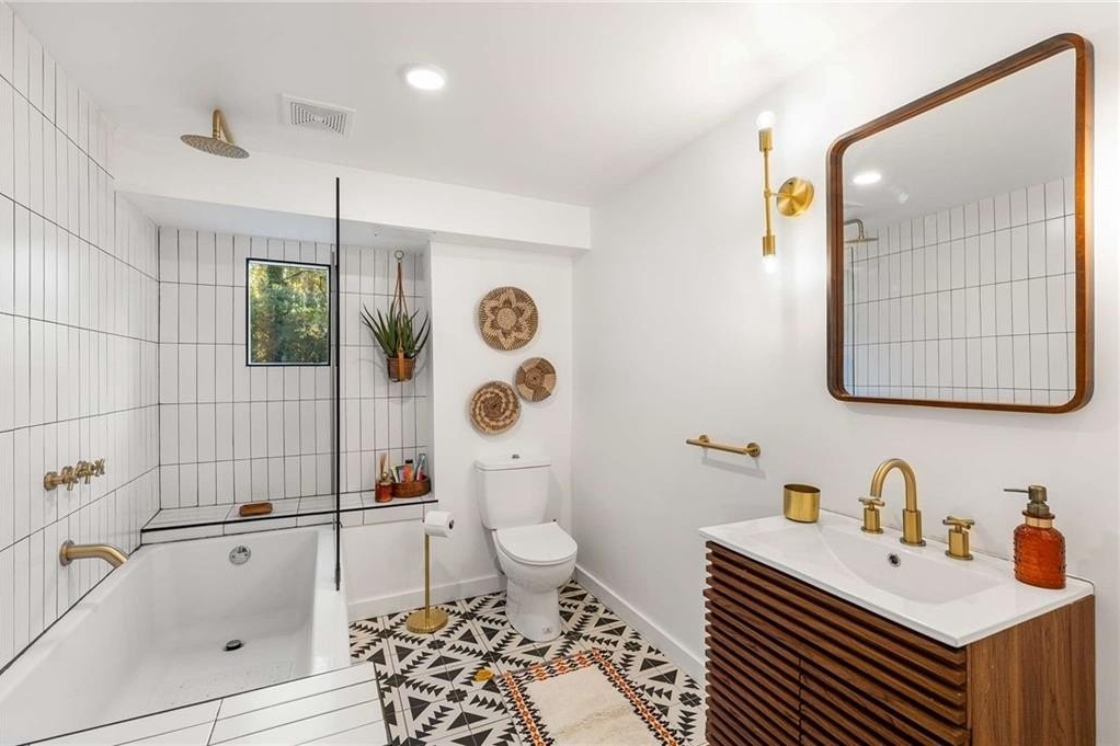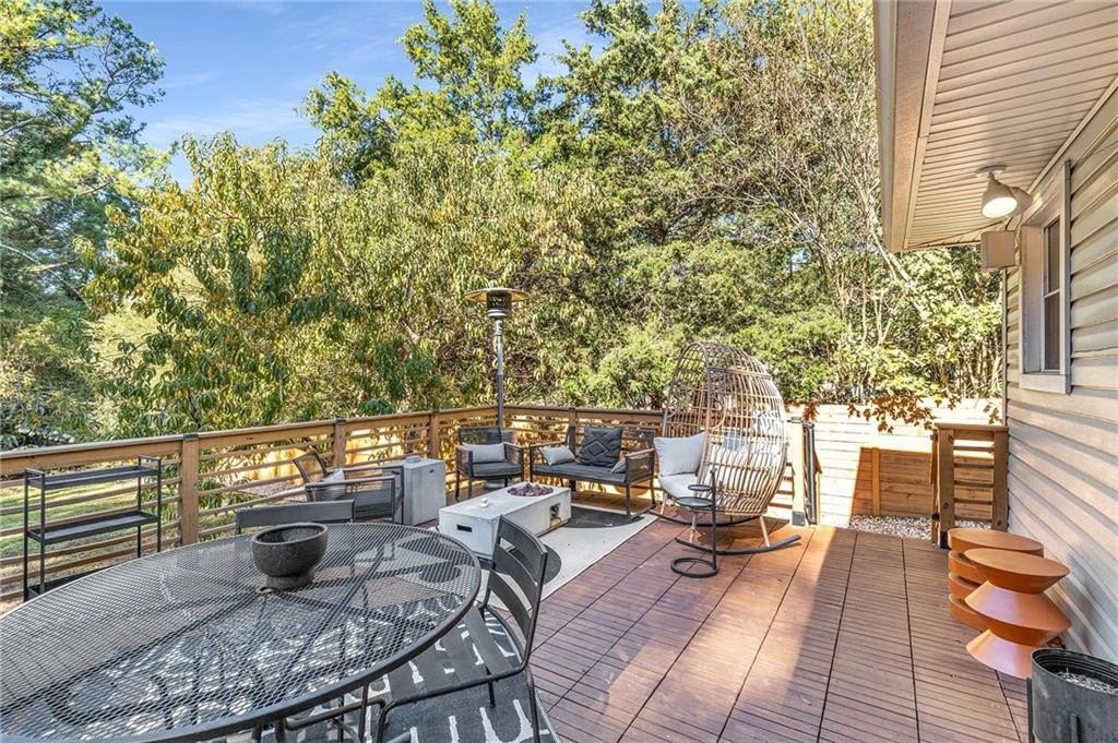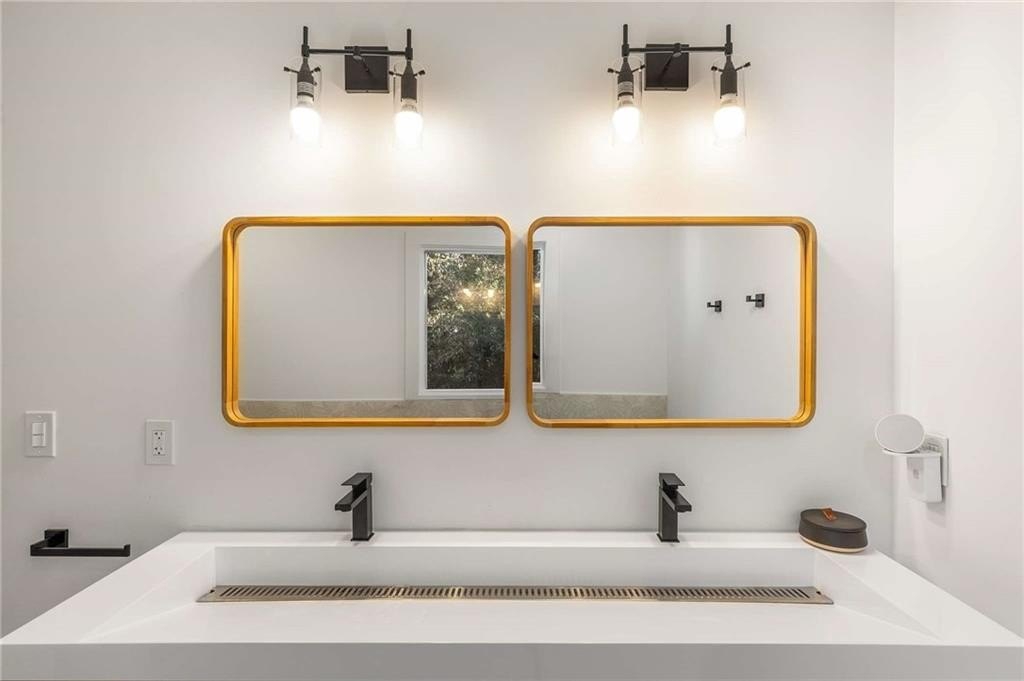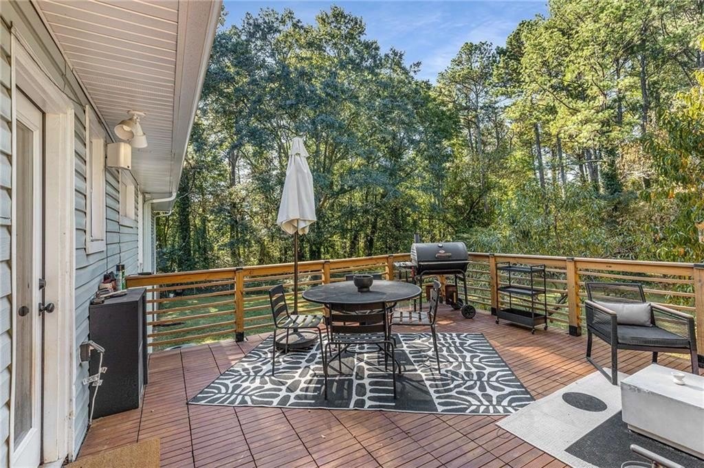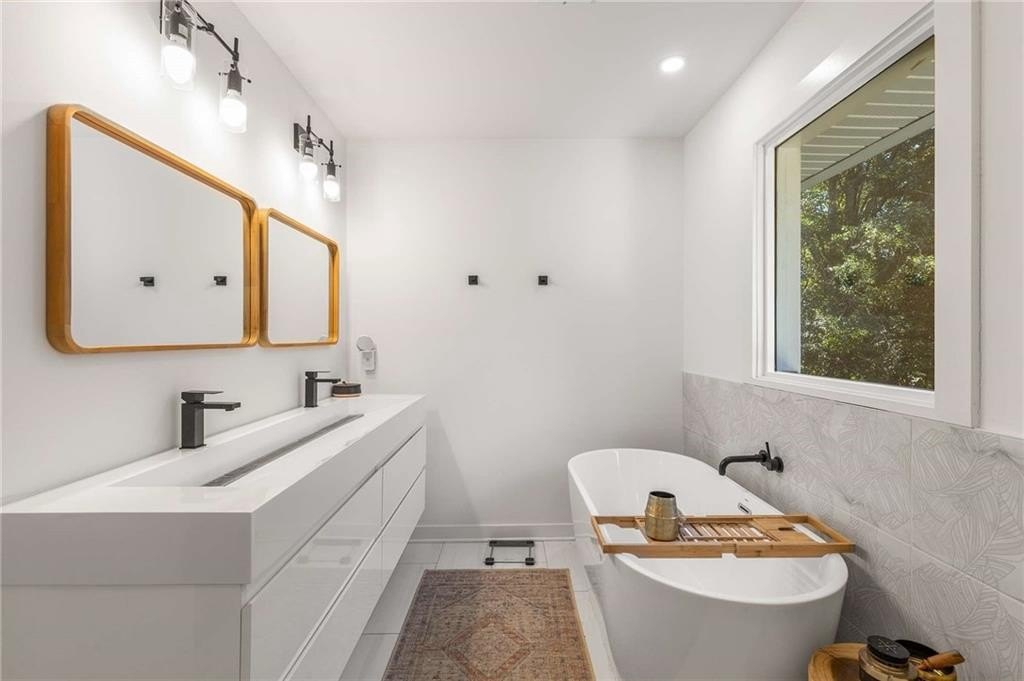 An architectural-modern showpiece on an expansive double lot, this residence marries relaxed sophistication with luminous, open-concept living and a floor plan made for gathering. A dramatic central core showcases a sunken living room anchored by clean lines and generous glazing, flowing seamlessly into a designer kitchen with statement island, premium finishes, and purposeful storage. Multiple doors open to outdoor living—including a treehouse-style deck nestled in the canopy creating effortless indoor–outdoor continuity for morning coffee, weeknight dinners, and weekend entertaining. The luxury-inspired owner’s suite is a private retreat, appointed with a beautifully tiled bath featuring a soaking tub, oversized walk-in shower, and a sleek floating double vanity. Throughout the main level, hardwood floors and curated lighting elevate the ambiance, while sightlines extend to the grounds, emphasizing space and serenity. Down a wide, elegant staircase, the finished terrace level functions as a true second living zone—perfect for multi-gen living, guests, or an epic media/game area—with two additional bedrooms, a full bath, and a large living/rec room with flexible zones for work and play. A second driveway simplifies access and parking, and a bonus garage offers limitless potential for a studio, gym, she-shed, or workshop. Thoughtful design, abundant natural light, and versatile spaces culminate in a rare, refined retreat crafted for elevated everyday living and unforgettable gatherings. Located in the highly desired King Springs School District. Close to Silver Comet Trail, Food Trucks, Smyrna Market Village and The Battery.