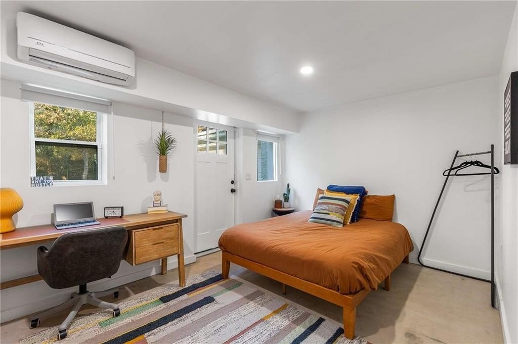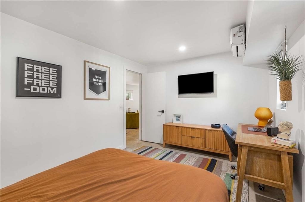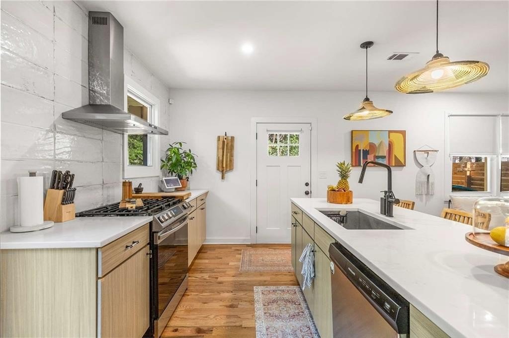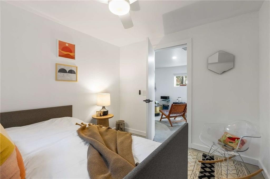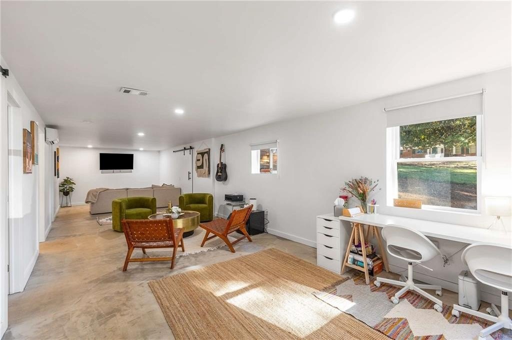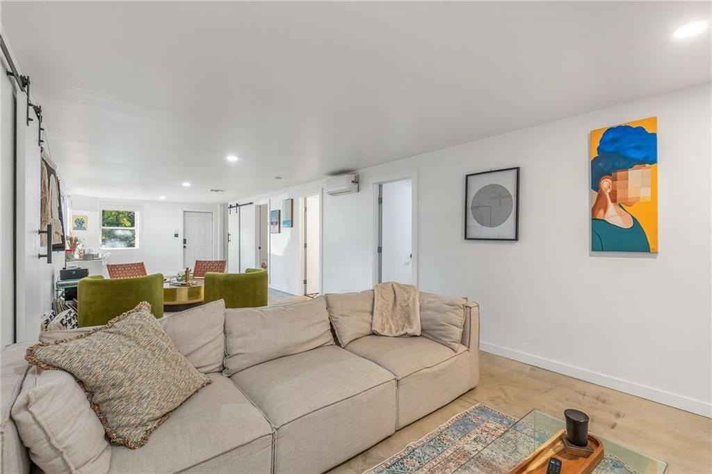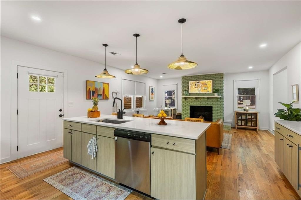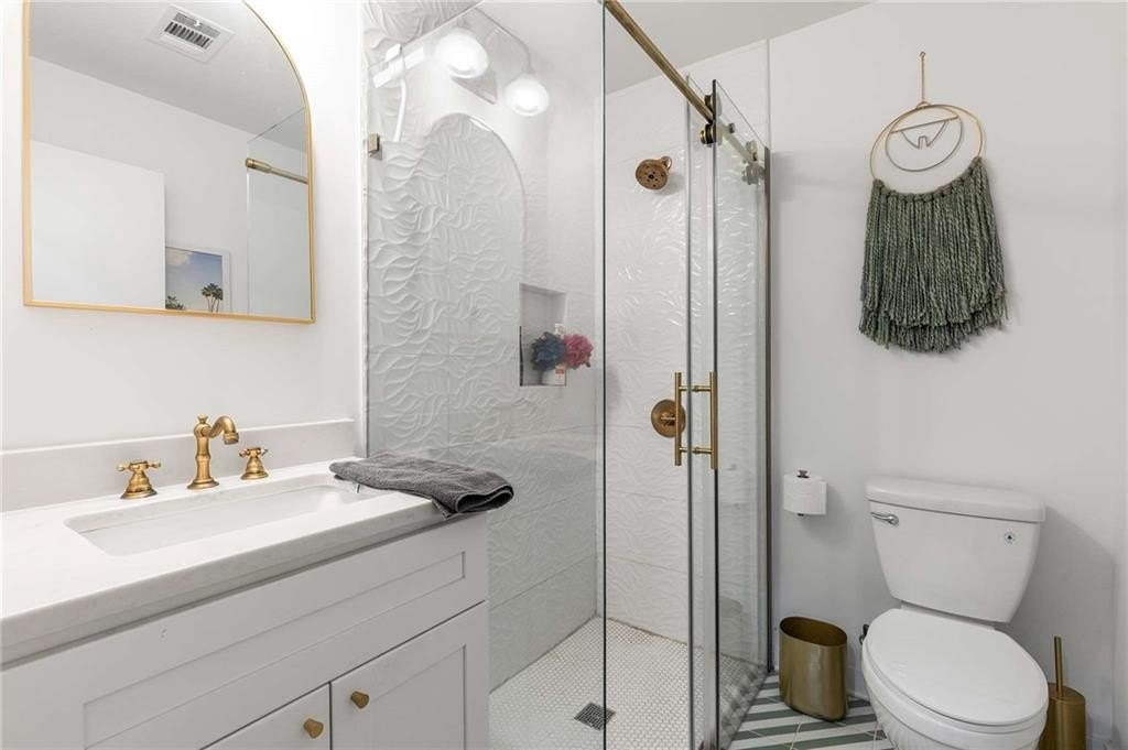 An architectural-modern showpiece on an expansive double lot, this residence marries relaxed sophistication with luminous, open-concept living and a floor plan made for gathering. A dramatic central core showcases a sunken living room anchored by clean lines and generous glazing, flowing seamlessly into a designer kitchen with statement island, premium finishes, and purposeful storage. Multiple doors open to outdoor living—including a treehouse-style deck nestled in the canopy creating effortless indoor–outdoor continuity for morning coffee, weeknight dinners, and weekend entertaining. The luxury-inspired owner’s suite is a private retreat, appointed with a beautifully tiled bath featuring a soaking tub, oversized walk-in shower, and a sleek floating double vanity. Throughout the main level, hardwood floors and curated lighting elevate the ambiance, while sightlines extend to the grounds, emphasizing space and serenity. Down a wide, elegant staircase, the finished terrace level functions as a true second living zone—perfect for multi-gen living, guests, or an epic media/game area—with two additional bedrooms, a full bath, and a large living/rec room with flexible zones for work and play. A second driveway simplifies access and parking, and a bonus garage offers limitless potential for a studio, gym, she-shed, or workshop. Thoughtful design, abundant natural light, and versatile spaces culminate in a rare, refined retreat crafted for elevated everyday living and unforgettable gatherings. Located in the highly desired King Springs School District. Close to Silver Comet Trail, Food Trucks, Smyrna Market Village and The Battery.