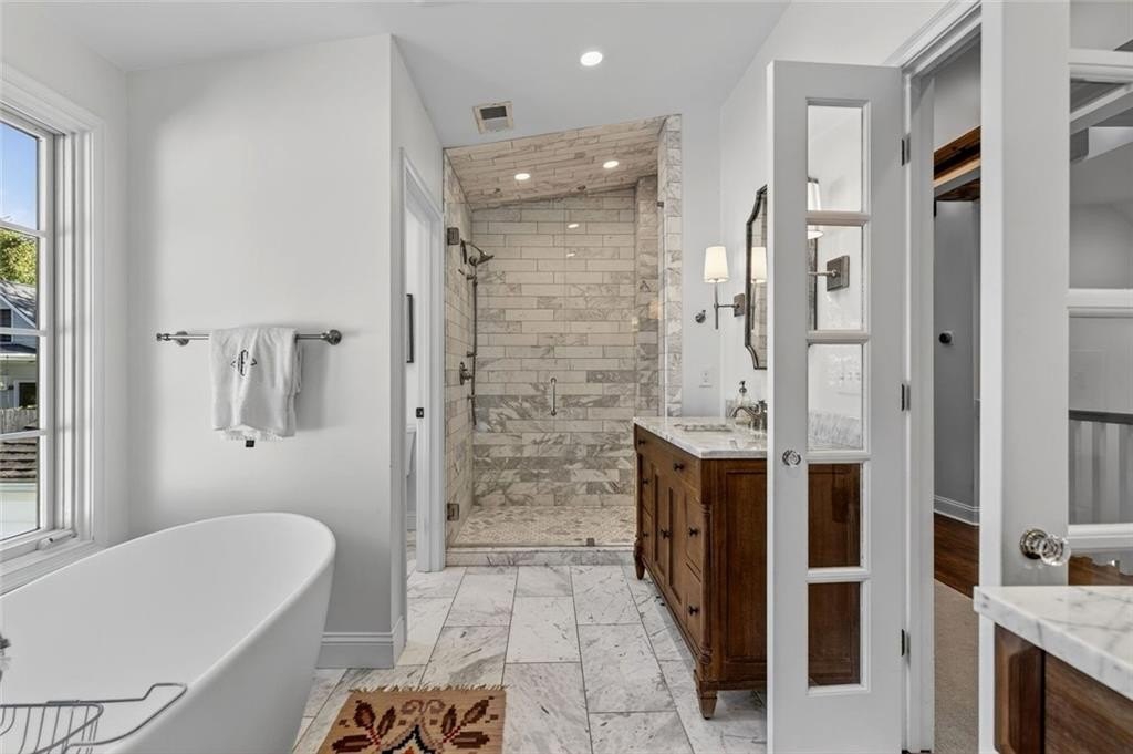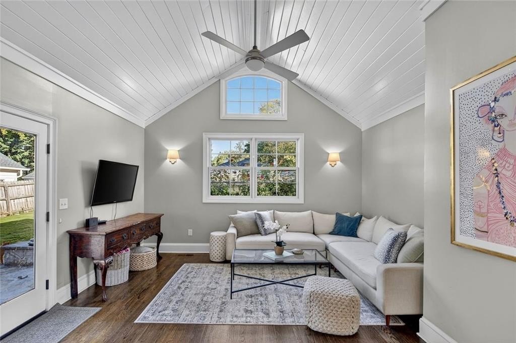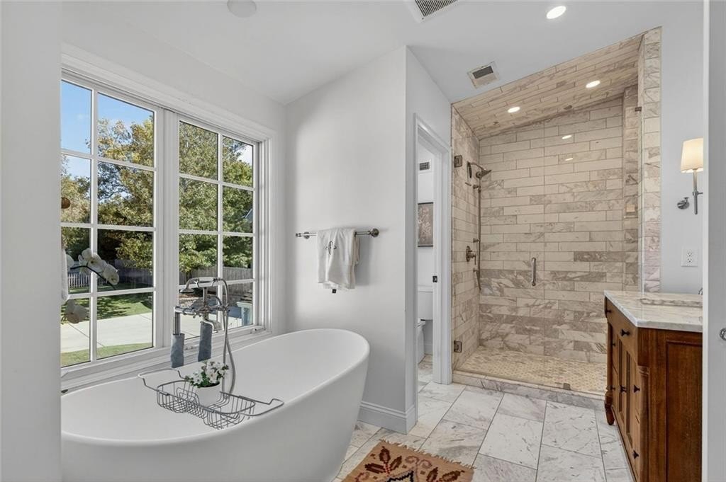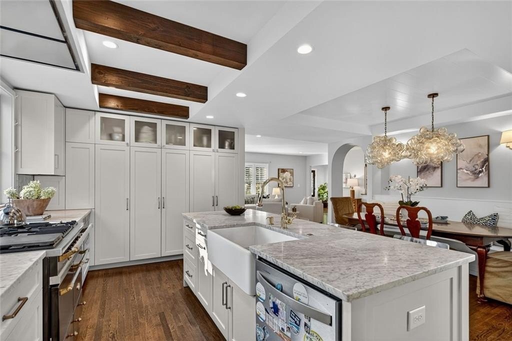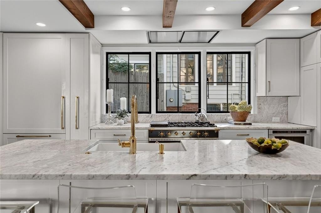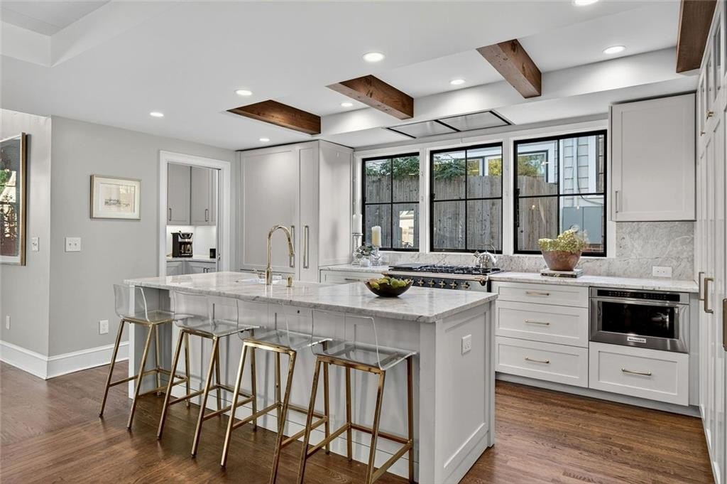Charming Renovated Traditional Home in Buckhead’s Coveted Garden Hills Neighborhood. Discover this beautifully renovated 5-bedroom, 4-bathroom home nestled in the heart of Buckhead’s desirable Garden Hills community. Located on a large, flat walkout lot, this move-in ready residence seamlessly blends classic charm with modern updates and an open, easy-flowing floor plan perfect for everyday living and entertaining. Step inside to find a spacious living room, a light-filled sunroom/playroom, and a vaulted family room that opens to the heart of the home: a stunning chef’s kitchen featuring stainless steel appliances, marble countertops, designer cabinetry, a custom La Canche range, a breakfast island, and a walk-in pantry. Enjoy effortless indoor-outdoor living with doors leading to a private patio with a fireplace, ideal for cozy evenings and year-round entertaining. The main level boasts 3 bedrooms and 2 full baths, while the upper level offers a private guest suite, laundry, and a luxurious primary suite with two walk-in closets and a spa-like bath. Additional highlights include a gated driveway with ample parking and turn-around space, a detached two-car garage, and a beautifully landscaped backyard oasis perfect for kids, pets, or possible future pool. Enjoy walkability to Garden Hills Park, playground, pool, and top-rated restaurants, with proximity to Atlanta’s best public and private schools. This rare find offers the ideal combination of location, lifestyle, and turnkey luxury.