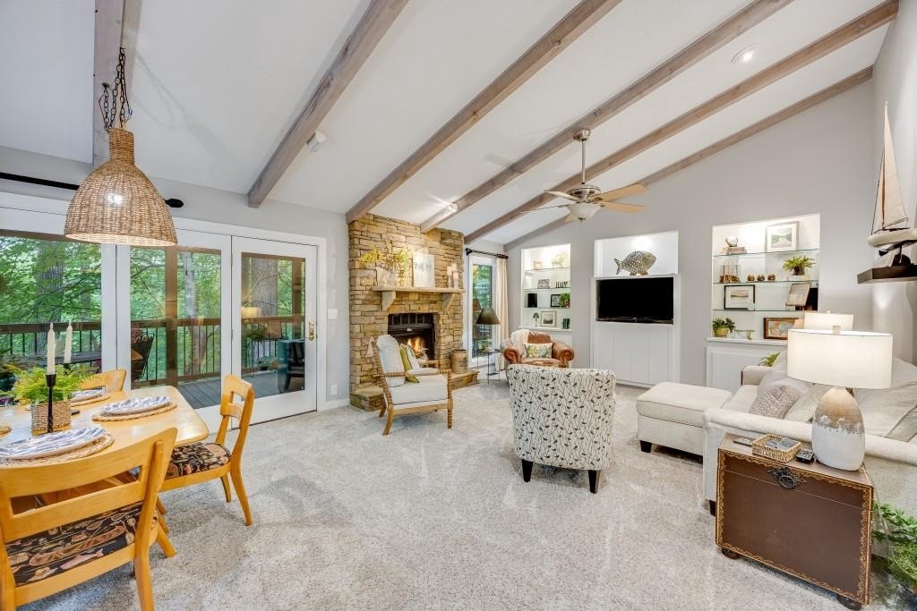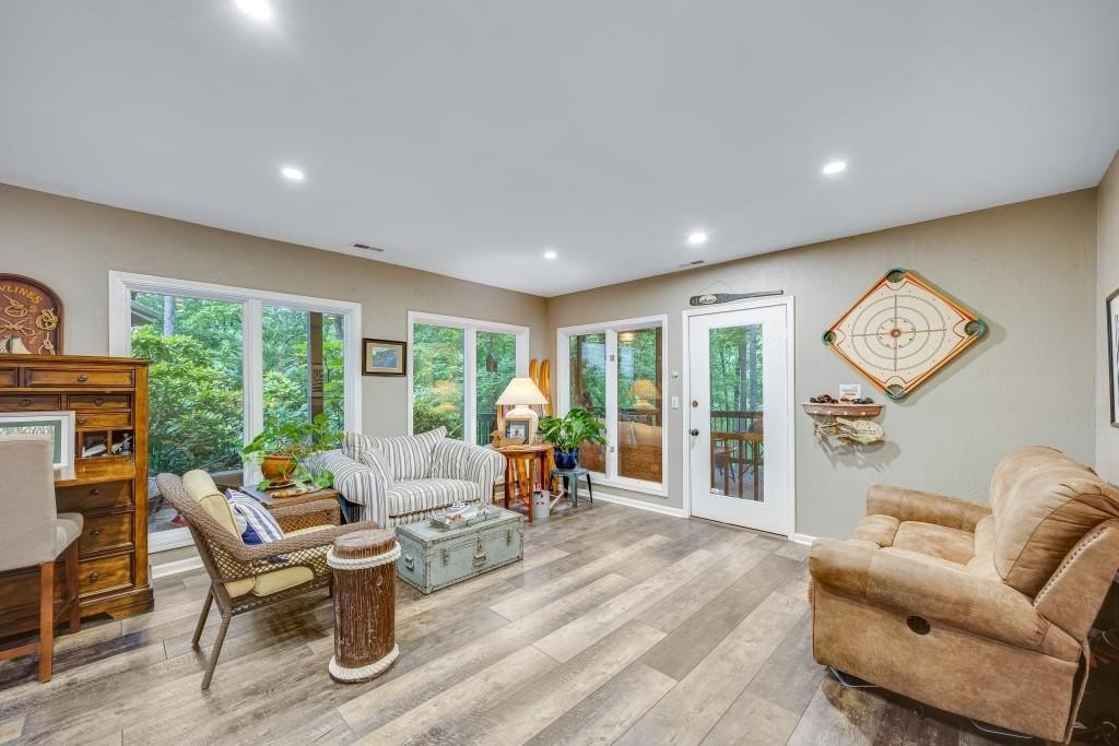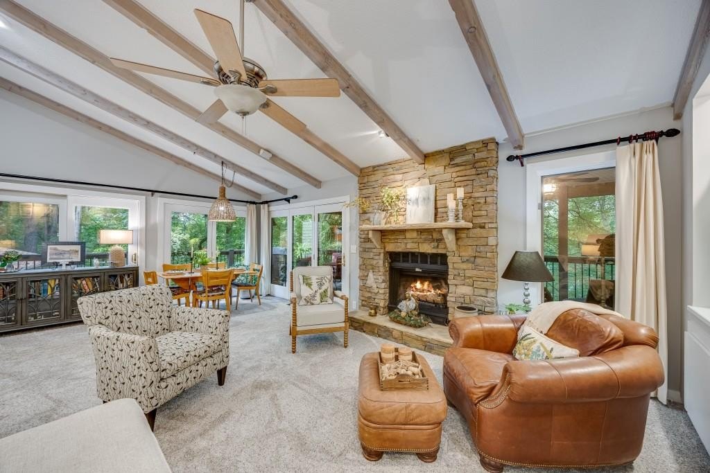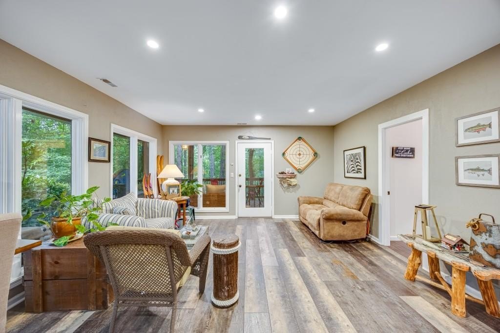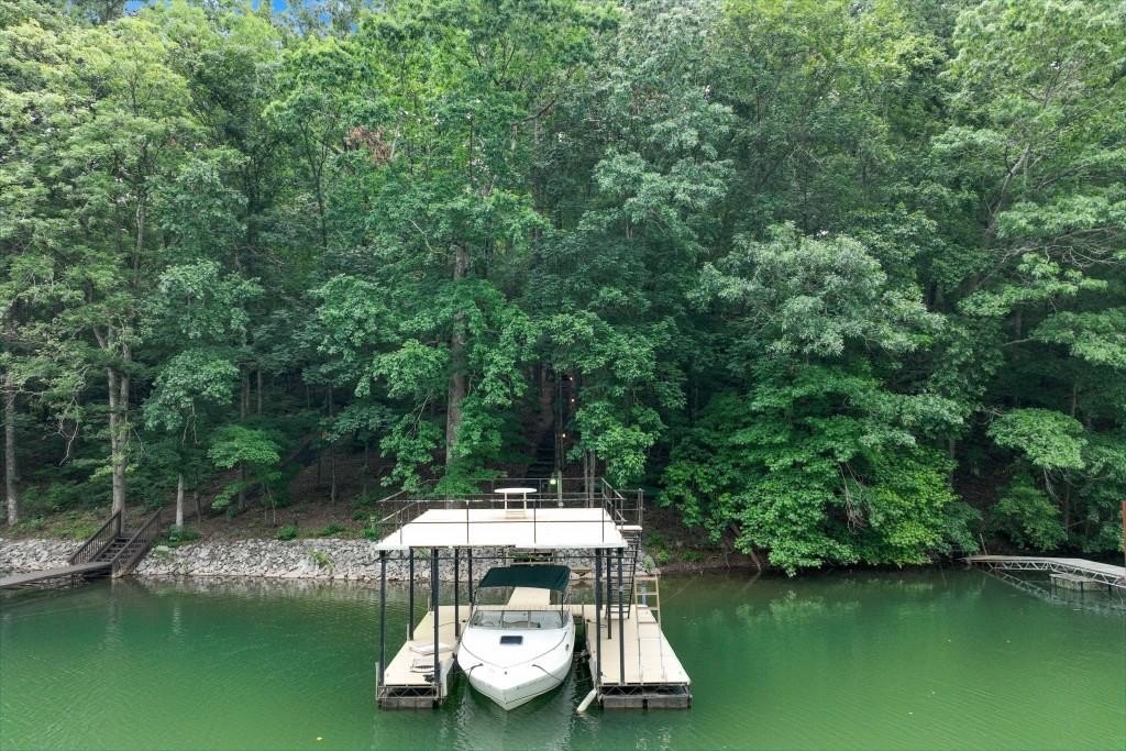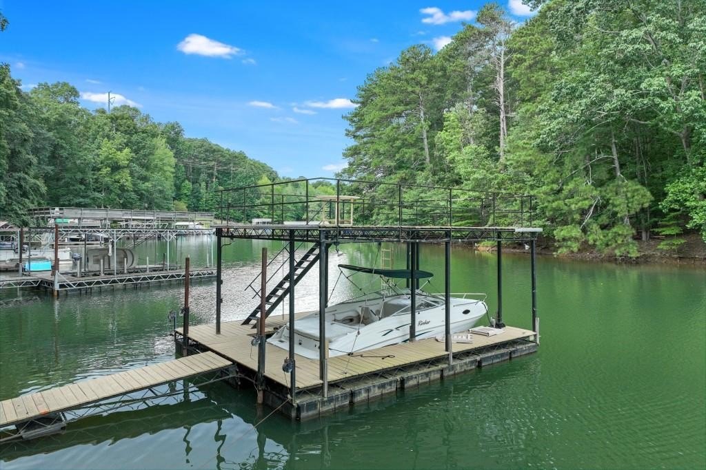 Experience tranquility and the feeling of a daily vacation in this warm and inviting lakeside home with a private, single slip dock with a party deck. Welcome to this beautifully maintained 3 bedrooms, 4 baths lake home with 2 covered decks, a finished basement, new roof (2025), gorgeous landscaping, and peaceful lake views where your dream, lakefront lifestyle becomes a reality. The charming gourmet kitchen features a slate floor, granite countertops, custom cabinetry, an island with a maple countertop and bar sink, a 4 burner gas range with griddle, a cozy breakfast area, and a roomy pantry, making it a chef's delight. The adjacent dining area provides the perfect setting for both intimate family dinners and festive gatherings with friends. The family room invites relaxation with its cozy stone gas fireplace, built-ins, and doors that open onto a covered wrap around deck-perfect for summer barbecues, and outdoor entertaining. The main level also boasts a luxurious primary suite with 2 spacious closets, a spa-inspired ensuite bath with a 5 head shower, an elegant, clawfoot soaking tub, and a custom window. An additional guest bedroom and adjoining full bath will comfortably accommodate weekend guests or family. Upstairs, a full bath and a versatile flex area provides ample space and storage for family, guests, or a home office. The finished basement offers even more living area, additional office space, along with a convenient, large laundry room, full bath and a second covered deck. The double car garage contains a work bench and shelving for tools and hobbies. The outdoor living spaces are truly exceptional. A stone and timber lined path leads to your private single slip dock with a party deck, including power, where endless adventures await. The shoreline has been enhanced with rip rap. You're enjoy the peace of the quiet cove. Once the day is over and you're making your way to your lake home, you'll appreciate that the path is lit with solar and electric lighting. You'll love to gather around the firepit area as you relive the memories of the day. Thoughtfully landscaped gardens burst with color throughout the seasons, while mature trees offer shade and privacy. Life on Lake Lanier is about embracing a lifestyle of relaxation, recreation, and connection. Spend your days swimming, fishing, or boating to the nearby restaurants. Host unforgettable gatherings on your deck, or enjoy quiet evenings by the fire. Whether you're seeking a year-round residence, a seasonal retreat, or a legacy property for generations to come, this lakefront home is your perfect math. New Gangplank on order for dock. Boat is negotiable with strong offer. Schedule a private tour today.