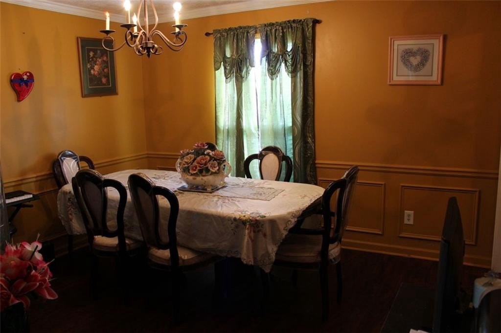 Beautiful features such as crown molding and wainscoting in dining room and tray ceilings in owners