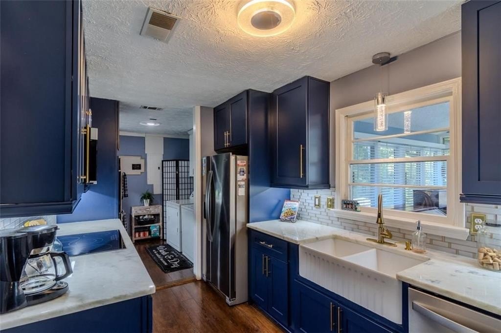 Step into this beautifully renovated 3-bedroom, 2-bath home on over half an acre in a quiet Dallas neighborhood just steps from serene White Oak Park in a NO HOA community! You’ll instantly feel the warmth and charm throughout. The stunning kitchen features custom blue-stained cabinets, marble countertops, double ovens, and all appliances included. The primary suite offers a stylish tile shower, while the spacious secondary bedrooms are bright and welcoming. Enjoy the large sunroom filled with natural light or cozy up by the wood-burning fireplace. This four-sided brick home includes two blueberry bushes, two pecan trees, and two fig trees for a touch of Southern beauty. With new energy-efficient windows, a roof and HVAC less than 10 years old, a two-car garage, mature trees, and ample parking, this home offers comfort and peace of mind. Perfect for first-time buyers, families, or anyone looking to downsize, it delivers high-end finishes and a tranquil lifestyle without the luxury price tag!