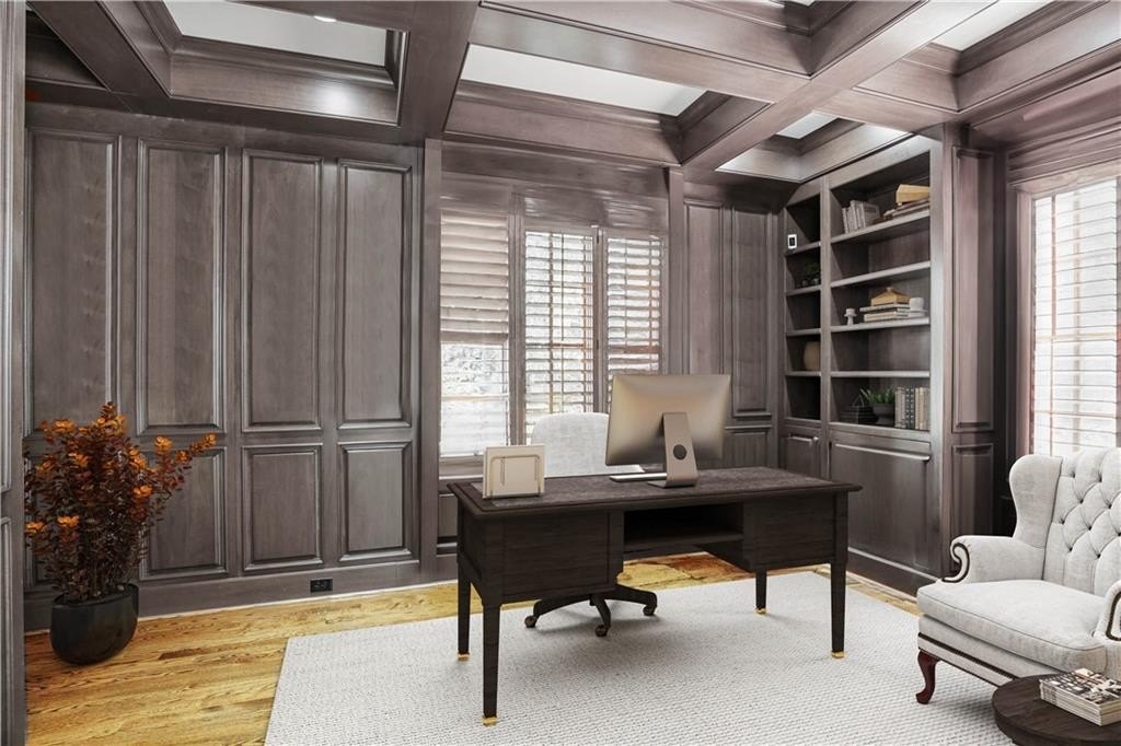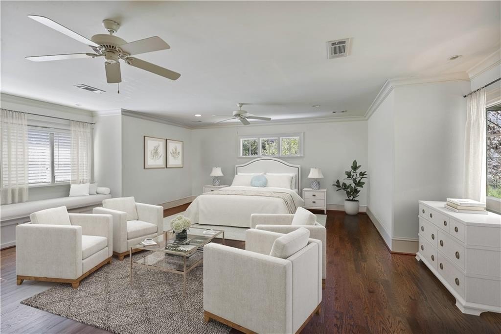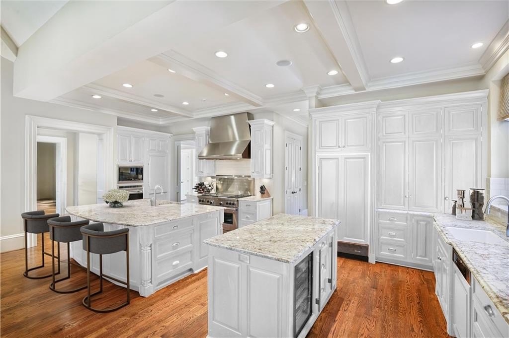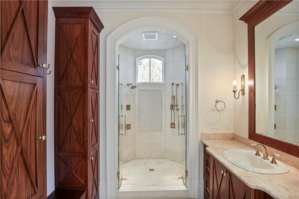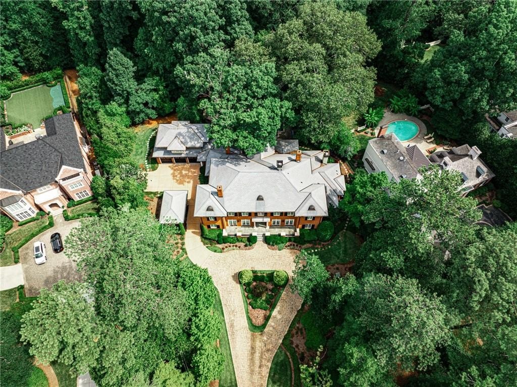 Located in prestigious Buckhead on a private 1.7-acre lot in Tuxedo Park, this beautiful four-sided brick estate home was designed by Brian Smith & built by RL Connelly & Co. Located off the street with a private sweeping driveway and courtyard that leads to the beautifully landscaped pool area and private, wooded grounds. An expansive floorplan with two-story foyer, splendid millwork, exquisite stone details, ornate coffered ceilings, five masonry fireplaces with onyx surrounds, dual staircases, and abundant natural sunlight. The chef’s kitchen features cherry cabinets, natural stone countertops, a double island, Wolf appliances and is located adjacent to the butler’s pantry, formal dining room that seats 12+, relaxing breakfast room and a 12.5 ft vaulted ceiling-keeping room with a fireplace and built-in bookshelves. The family room features an intricate coffered ceiling, fireplace, spacious seating area and a series of French doors that lead onto the covered patio and pool area. The master suite, located on the main floor, impresses with a palatial, light-filled bedroom with a sitting area, fireplace, enviable walk-in closets with custom cabinetry and a luxurious, spa-inspired bathroom–featuring separate vanities, a soaking tub, and a marble shower. Upstairs, there are four secondary bedrooms with generous closets, ensuite bathrooms and a media room. The 6th bedroom and bathroom, located above the three-car gated access garage, is the perfect au pair or in-law suite. The finished Terrace Level is perfect for entertaining with an inviting bar, wine cellar and lounge or media viewing room, in-home sauna, and walk-out access to the heated pool, gazebo, and covered patio area. Located on iconic Habersham Road, this property offers unparalleled convenience to Atlanta's best schools, country clubs, shopping, dining spots, and nearby Chastain Park. Some rooms have been virtual staged. Virtual staging reflects change of paint color and furniture only. Taxes do not reflect Homestead Exemption.