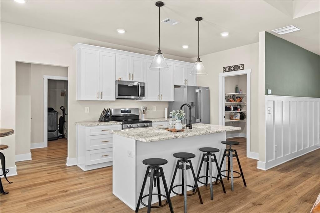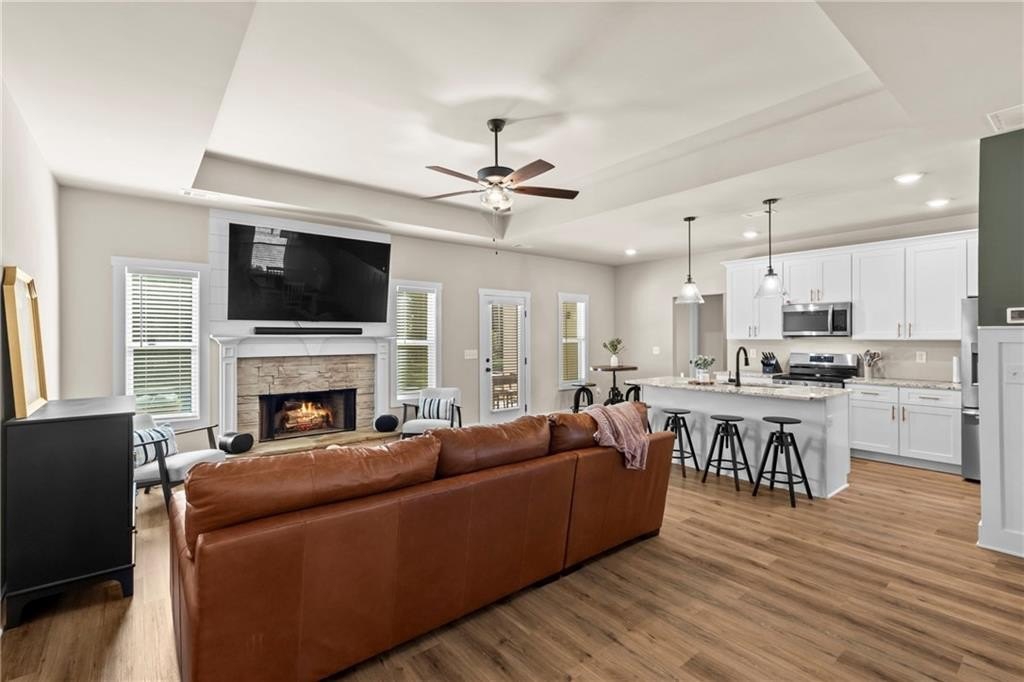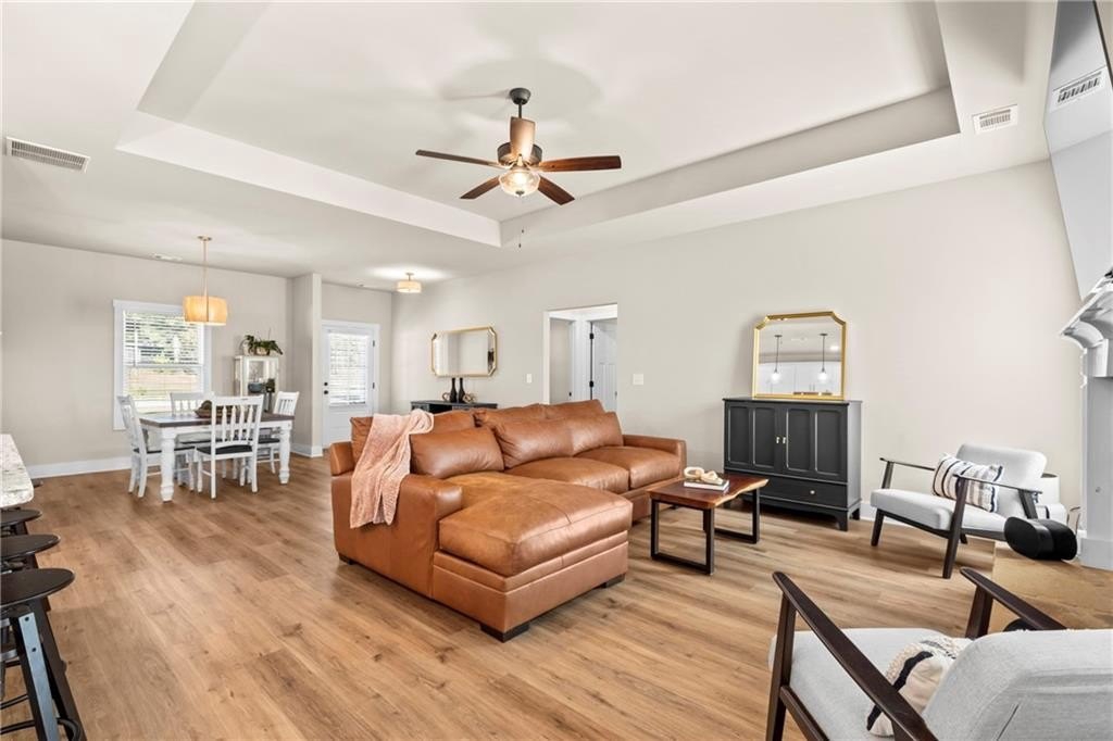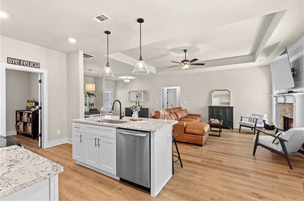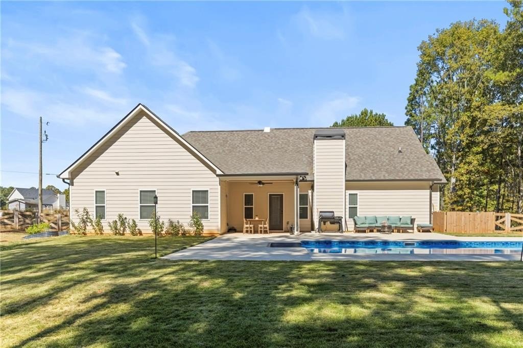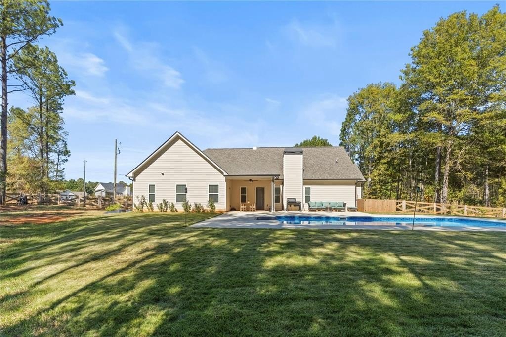 This is the home you’ve been waiting for, better than new construction, thoughtfully designed, and built in 2024 with comfort and lifestyle in mind. From the moment you step inside, you’ll notice the difference. Gorgeous LVP flooring flows throughout, and the open-concept layout makes everyday living and entertaining effortless, connecting the kitchen, dining, and living spaces into one warm and inviting place to gather. The oversized primary suite is more than just a bedroom it’s a retreat. There’s plenty of space to relax, unwind, and enjoy the spa-like bath, and the generous closet space keeps everything beautifully organized. Every detail of this home was designed to make life easier, with thoughtful storage and one-level living that works for every stage of life. Start your mornings or wind down in the evenings on the covered rocking chair front porch, the perfect spot to enjoy a cup of coffee or soak in the fresh fall air. Step out back and discover a private backyard oasis with a heated, in-ground saltwater pool (less than a year old) that turns every day into a staycation. The fully fenced, flat backyard is ideal for gatherings, pets, or play, and the covered patio provides the perfect space to grill, entertain, or simply relax. As an added bonus, the seller is open to selling the home fully furnished, offering a truly move-in ready experience and additional value for the new owner. With so many upgrades already in place, this home offers more value, more comfort, and more lifestyle than anything new in the area, and it’s ready for you to make it yours. All that’s left to do is move in and start creating memories.