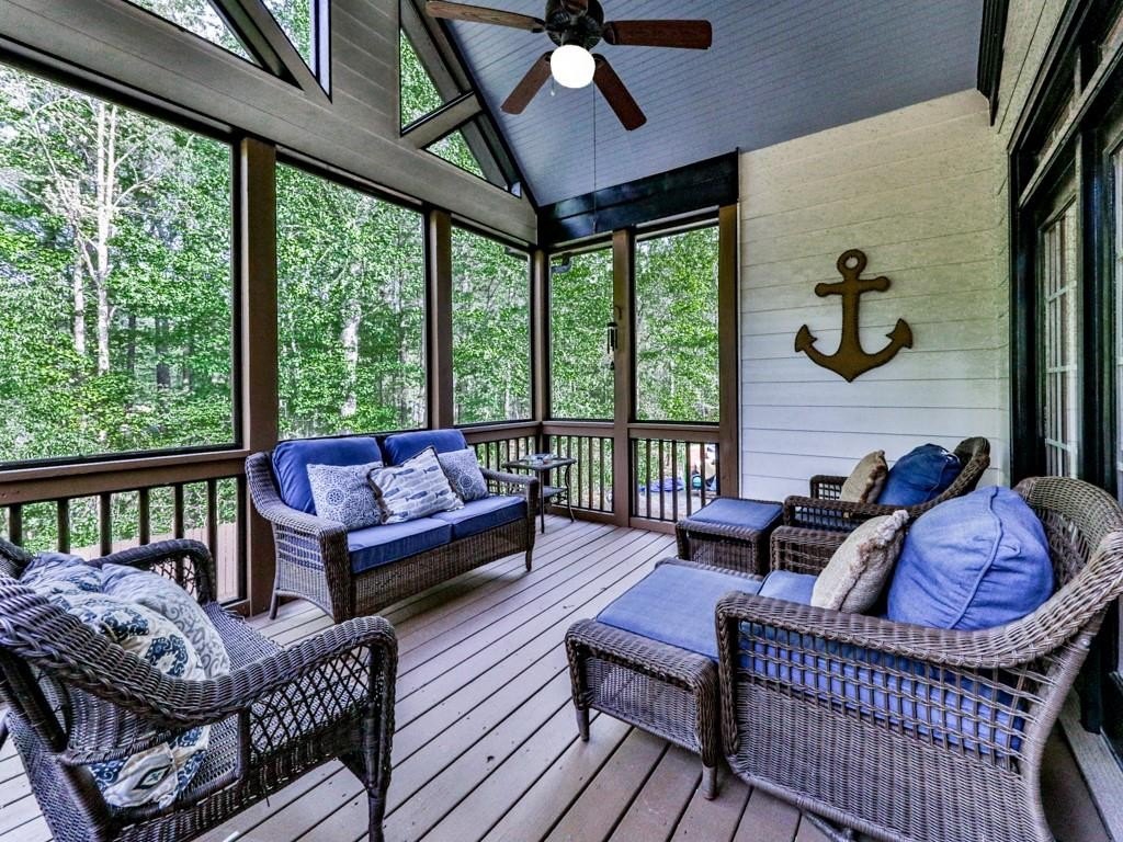 Step outside to the covered and screened deck with a vaulted ceiling, offering the perfect spot for year-round enjoyment.