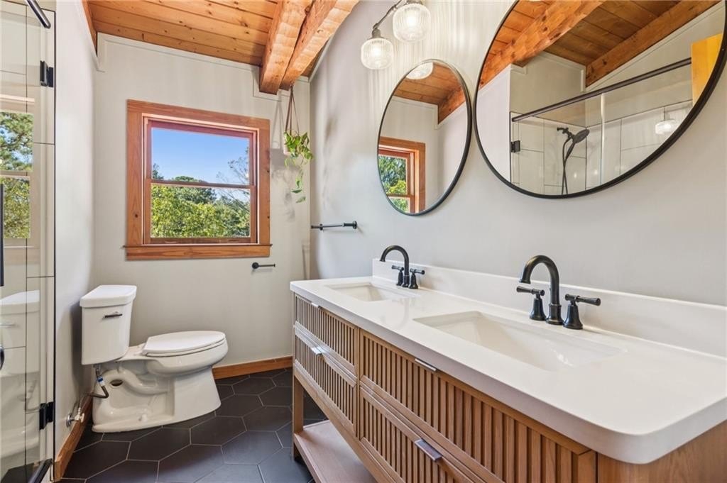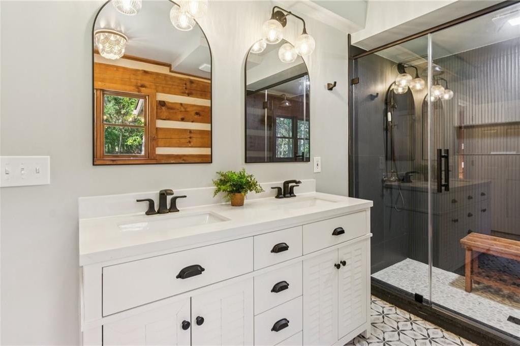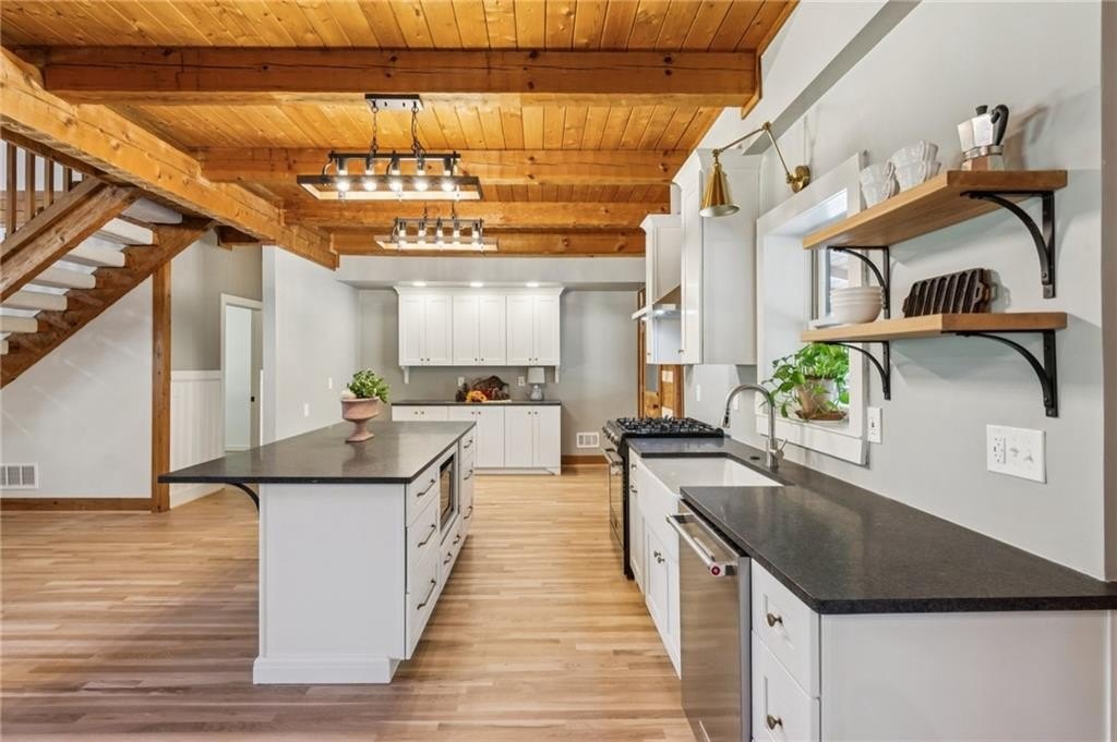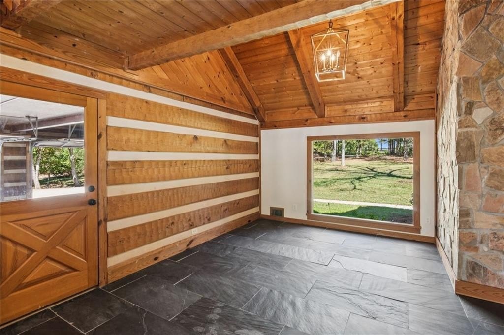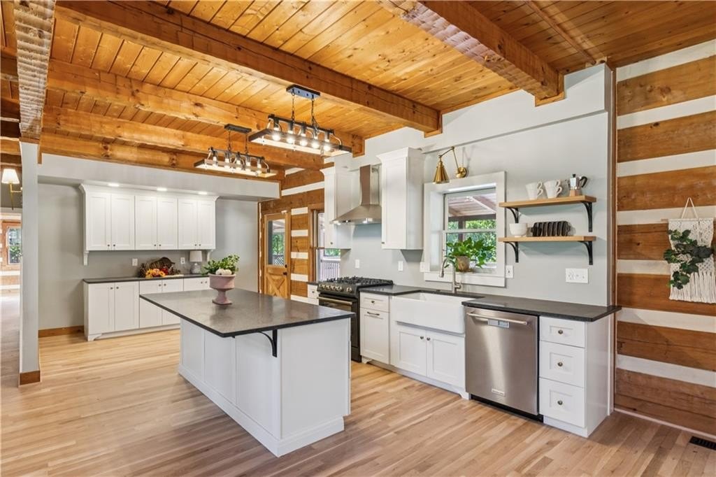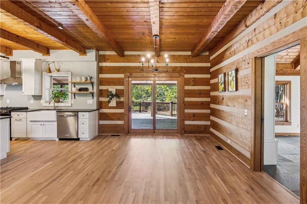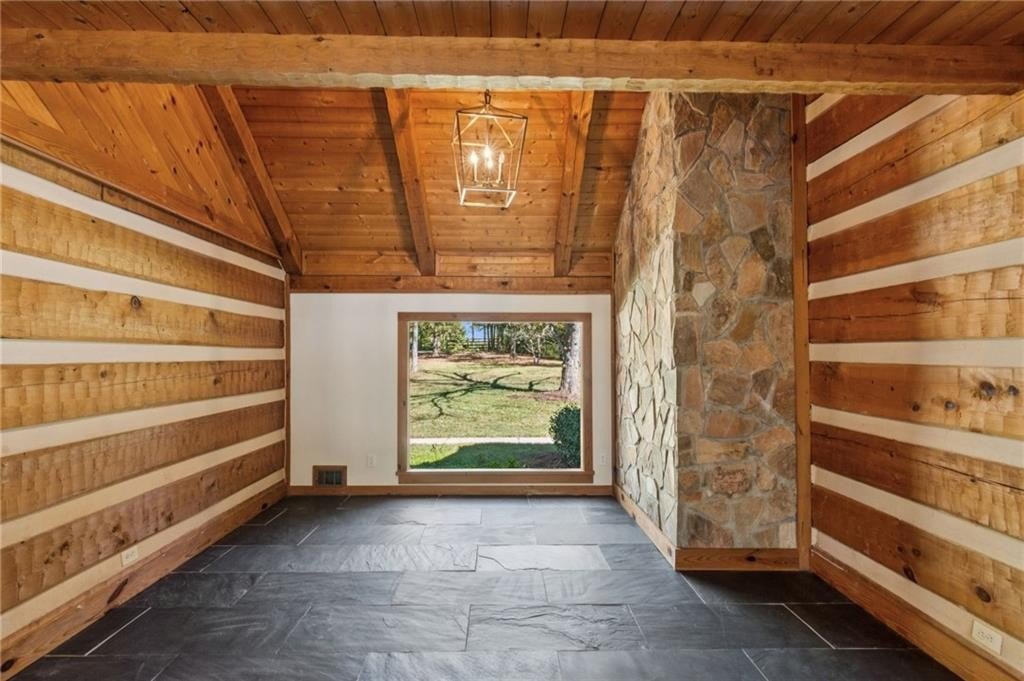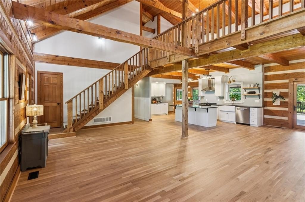 Craftsman roots, elevated to a modern masterpiece! Nestled on 2.5 peaceful acres, this extraordinary residence showcases a head-to-toe designer transformation of a Heatherstone Luxury Log Home. Heatherstone Log Homes are known for handcrafted quality, modern engineering, and energy-efficient materials. This home has been fully modernized with an artist's touch. The floor plan was optimized, the kitchen was fully renovated, and all the bathrooms were completely redesigned, creating a bright, contemporary, open-concept interior that perfectly highlights the home’s original grand rustic details, like the massive two-story, raised-hearth stone fireplace and the rough-cut exposed log beams. From the moment you step onto the expansive covered front porch and walk through the modern, five-panel shaker-style front door, you’re greeted with warmth, light, and tasteful modern-living decor and efficiency. The heart of the home presents an open-concept living space where the gourmet kitchen features all-new, gleaming white, soft-close cabinetry, leathered granite countertops, a deep farmhouse sink, and new appliances. The kitchen flows seamlessly into the dining and living areas for optimal entertaining or easy family living. The owner's suite, plus a second bedroom and full bathroom, are conveniently located on the main level, offering easy and direct access to all the main living areas. And speaking of baths—these updated spaces are magazine-worthy, each with its own personality: from the claw-foot tub to the walk-in glass-door showers, designer vanities, fixtures, and tile. There's also a spacious, sun-filled flex room on the main level that would make the perfect office, library, playroom, or artist's studio. The upper level is highlighted by two additional roomy bedrooms, a large loft living room with a wet bar, and an expansive bonus room with a separate entry that could be used for a home business. Real hardwood, custom tile, and stone floors grace all the main floors, except for the bonus room. For those who love outdoor living, there's over 1,700 square feet of deck area (mostly covered) that extends the living space outdoors. It's perfect for large-group entertaining, simply enjoying your morning coffee, or a quiet evening decompression in the pergola-covered hot tub. With no HOA, you’re free to plant that dream garden, raise some chickens, and park all your toys on your land, which is currently fenced on three sides. While you’ll enjoy the quiet surroundings, you're just 5–7 miles from several retail and dining hubs, just 2–3 miles from Harbins Park walking trails, athletic fields, and playgrounds, and just 4–5 miles from the new Rowen Foundation Project—a planned community for "knowledge, research, and innovation."