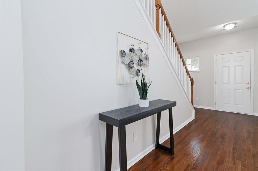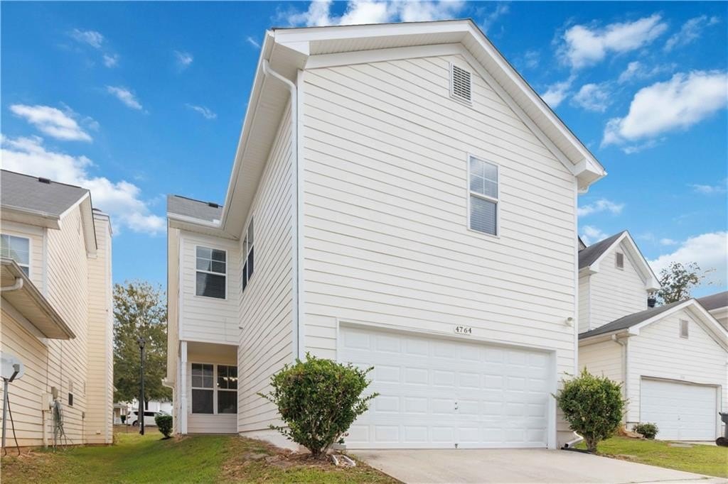 Beautifully Renovated 3-Bedroom, 2.5-Bath Home in a Prime Location! Welcome to this stunning and move-in ready home featuring 3 spacious bedrooms and 2.5 bathrooms. Step inside to a bright and airy 2-story great room with gleaming hardwood floors throughout and a cozy fireplace—perfect for gatherings. The updated kitchen showcases white cabinets, stylish tile backsplash, quartz countertops, a pantry, breakfast bar, and an eat-in dining area. Conveniently located off the kitchen is the laundry room and a half bath for guests. Additional main-level highlights include a closet, under-stair storage, and access to the fully finished, rear-entry garage. Enjoy outdoor living with covered front and back porches, ideal for relaxing or entertaining. Upstairs, the owner’s suite offers a spacious walk-in closet with custom shelving, double vanities, a soaking tub, and a separate shower. The second level also features two secondary bedrooms and a full bathroom with a tub/shower combo. Located in a vibrant community with fantastic amenities including a pool, playground, and clubhouse for events. Conveniently situated near shopping, dining, schools, and major highways. Just minutes from Camp Creek Marketplace and only 10 minutes from Hartsfield-Jackson Atlanta International Airport. Don’t miss the opportunity to own this beautifully updated home in a sought-after location. The location of this property is eligible for 100% financing. Payment assistance program available for 1st time homebuyers.