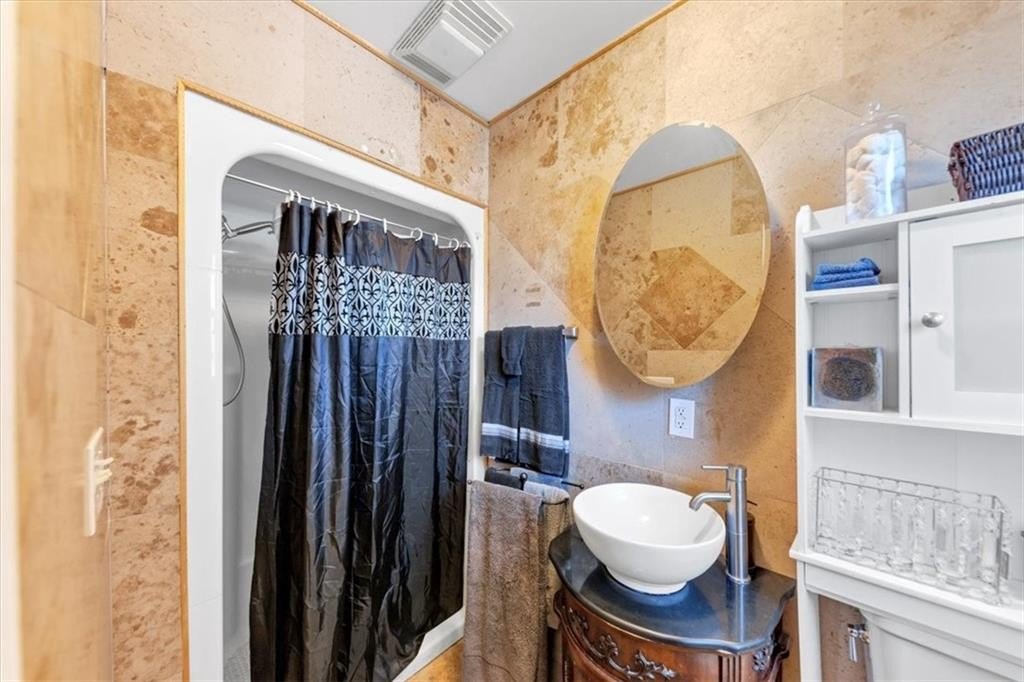 The expansive in-law suite comprises its own entire building next to a mini amphitheater in the rear or the property and offers a serene retreat with a Greek spa-inspired bathroom and generous walk-in closet, while secondary bedrooms provide style and flexibility for guests, family, or a home office.