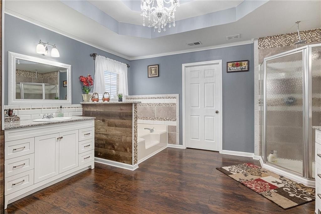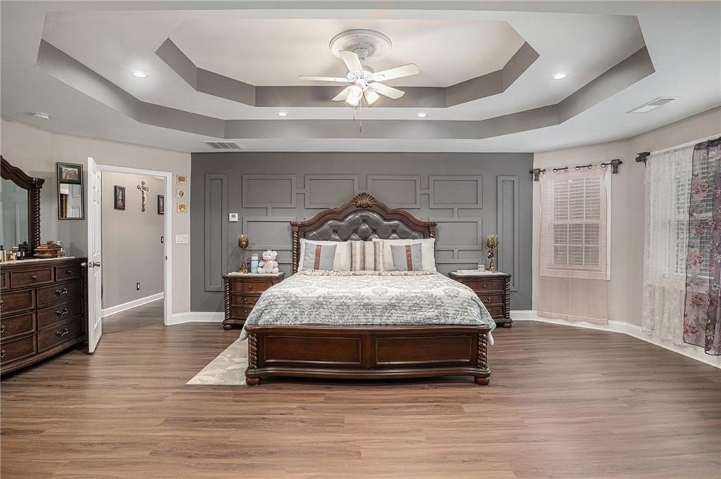 Welcome to this exquisite custom-built 6-bedroom, 4-bath home in the highly sought-after Sutherland community! This impeccably maintained residence offers the perfect blend of elegance, comfort, and convenience—featuring countless upgrades throughout. Located just minutes from Chimneys Golf Course, Fort Yargo State Park, local parks, downtown Winder, and Hwy 316, this home provides easy access to recreation, shopping, and dining. Step inside to an inviting open floor plan adorned with custom tile and marble in the foyer. The two-story grand great room impresses with coffered ceilings, rich crown molding, and an abundance of natural light. The main level features two bedrooms and a full bath with a step-in shower—perfect for guests or multigenerational living. The spacious kitchen is an entertainer’s dream, showcasing granite countertops, custom trim, LVP flooring, and a massive island overlooking the family room. Upstairs, unwind in the oversized owner’s suite complete with a cozy sitting area, shiplap accents, LVP flooring, and a spa-inspired en suite with custom tilework, soaking tub, double granite vanity, and a large walk-in closet. Three additional bedrooms and two full baths complete the upper level. Set on a large, level, fenced-in lot, with a storage shed/workshop, this backyard is a private retreat with the beginnings of an outdoor kitchen—ready for your personal touch! Don’t miss this rare opportunity to own a beautifully upgraded custom home in a PRIME location. Schedule your showing today!