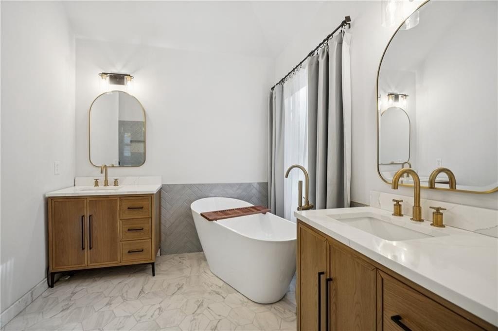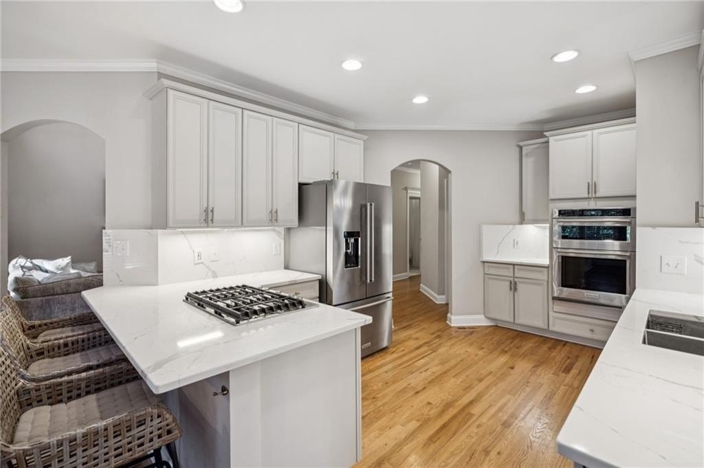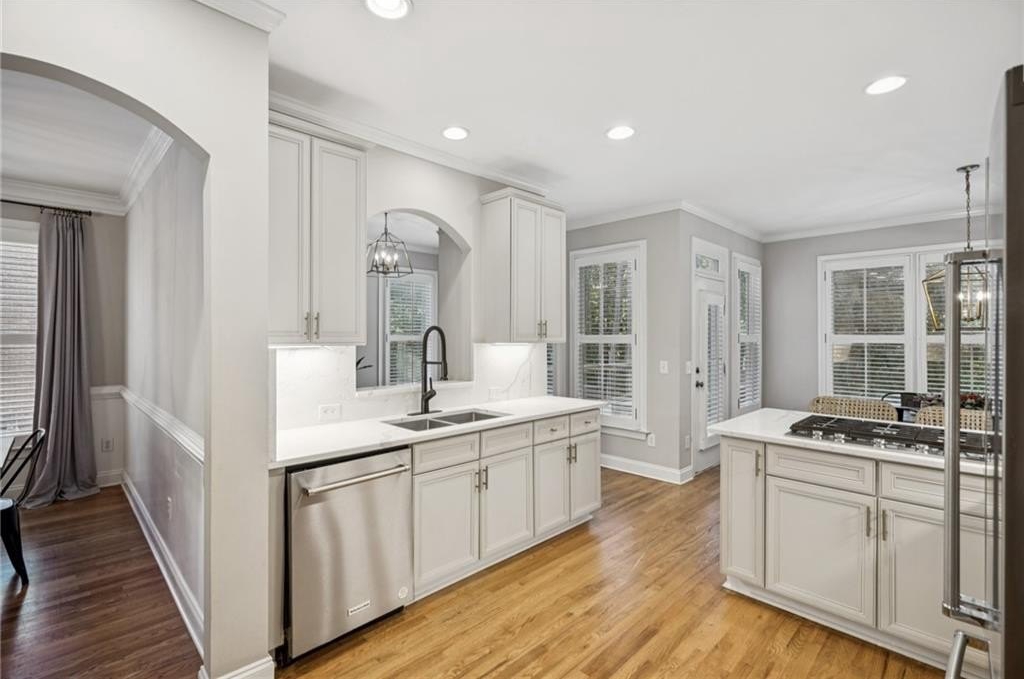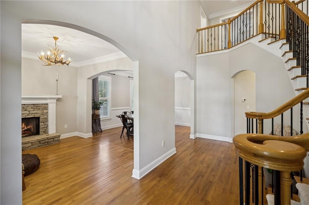 Welcome to this stunning brick-front residence featuring 5 Bedrooms, 4 full baths, and full basement! So much charm and well-appointed features throughout this lovely home. The architectural features begin with the arched brick entryway that leads to the beautiful double front doors. Step inside the grand two-story foyer and experience elegance throughout every detail. Gleaming hardwood floors flow across the main level, enhanced by crown molding and upscale design-focused touches. The gourmet kitchen is a chef’s dream, showcasing quartz countertops, stainless steel appliances, double ovens, a large pantry, and a spacious breakfast bar. Enjoy casual dining in the bright breakfast area or unwind in the cozy keeping room with custom built-in bookcases perfect for reading, office or playroom. You may also want to enjoy your meal on the large deck off the breakfast area! Great for entertaining, the oversized dining room easily seats 12+ guests and opens to a charming living room with a stone fireplace—ideal for intimate gatherings or quiet reading by the fire. The impressive two-story family room features a wall of windows flooding the space with natural light and a sophisticated marble fireplace as the centerpiece. A guest bedroom with a private bath on the main level provides comfort and convenience. Upstairs, retreat to the luxurious primary suite with double-door entry and hardwood floors. The spa-like primary bath offers a freestanding oval soaking tub with a gold floor-mounted filler, an oversized shower, separate vanities, and custom shelving in the walk-in closet. Three additional spacious bedrooms include one with an ensuite bath and two with private or nearby bath access. The laundry room is conveniently located upstairs. The home also includes a full unfinished basement with high ceilings, stubbed for a bath, and walkout access—ready for your dream expansion. Step outside to a private fenced backyard oasis perfect for outdoor entertaining. The terrace-level patio features under-decking and recessed lighting, creating a comfortable space for family gatherings or relaxing evenings with friends. Located in highly sought-after West Cobb, this home offers excellent schools, nearby shopping, dining, and easy access to everything you need. Don’t miss this opportunity to own a truly gorgeous home that blends luxury, comfort, and convenience!