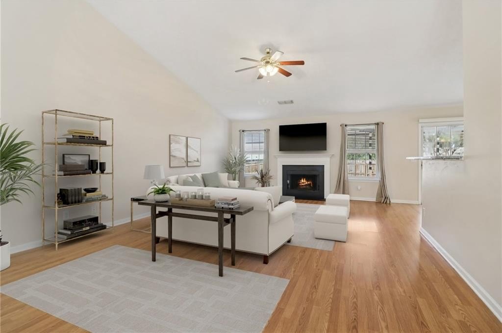 Welcome home to this spacious and inviting traditional ranch, perfectly situated just minutes from Downtown Woodstock, top-rated schools, shopping, and everything else you need for a convenient and vibrant lifestyle. This property offers the perfect blend of comfort, functionality, and community amenities that are sure to make you fall in love. Step inside and discover an open-concept floor plan designed for easy living. Vaulted ceilings and abundant natural light create a bright and airy atmosphere, making every space feel warm and welcoming. The kitchen is the heart of the home, seamlessly connected to the living room, breakfast area, and dining room—perfect for entertaining or simply staying connected with loved ones as you cook. The laundry room is thoughtfully located just off the kitchen, offering easy access to the garage for added convenience. The owner’s suite is your private retreat, complete with a spa-like soaking tub, separate shower, and an oversized walk-in closet that provides ample storage. The secondary bedrooms are equally spacious and share a large, well-appointed bathroom, making this home ideal for families or hosting guests. Step outside to your backyard oasis! The patio, adorned with a Pergola, is waiting for your personal touches—whether it’s adding cozy seating, vibrant plants, or string lights for ambiance. Enjoy your morning coffee or host a barbecue in the privacy of your backyard, surrounded by tranquility and charm. But that’s not all—this home is located in a community that offers exceptional amenities just minutes away and easily walkable. Dive into summer fun at the Olympic-sized pool, let the kids explore and play at the community playground, or stay active at the state-of-the-art gym. This neighborhood is designed to elevate your lifestyle, providing opportunities for relaxation, recreation, and connection. Don’t let this incredible property slip away. Schedule your tour today and discover the perfect place to call home—a space that offers comfort, convenience, and a thriving community you’ll love being part of!