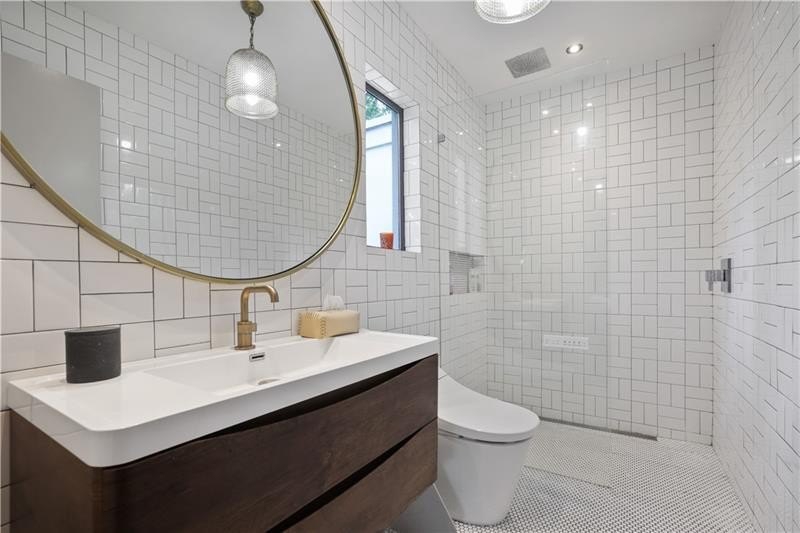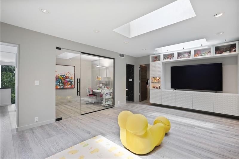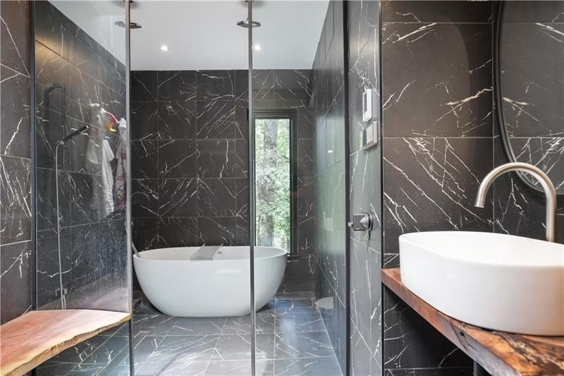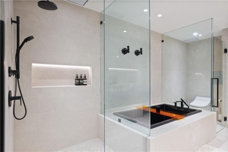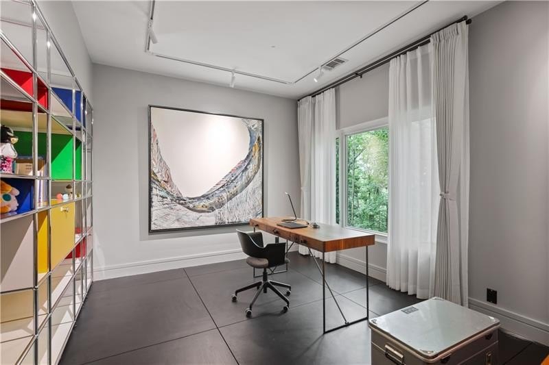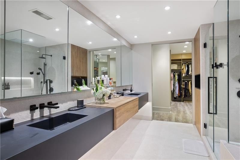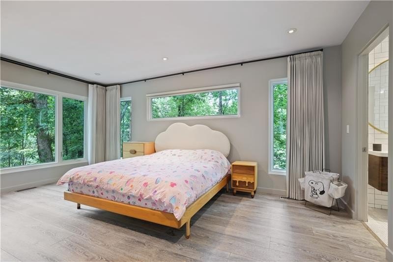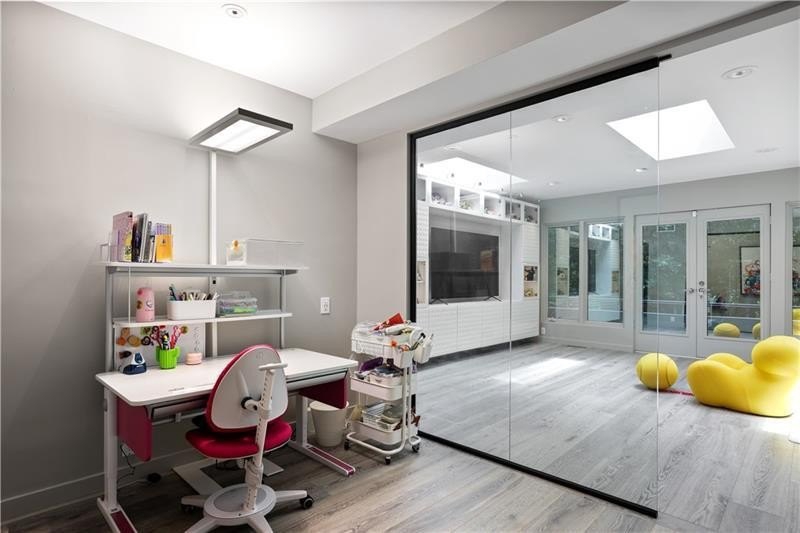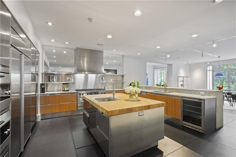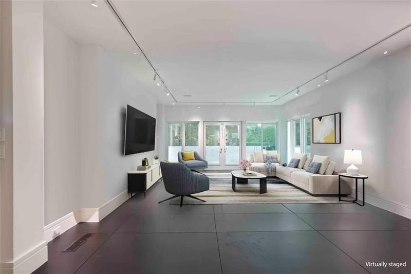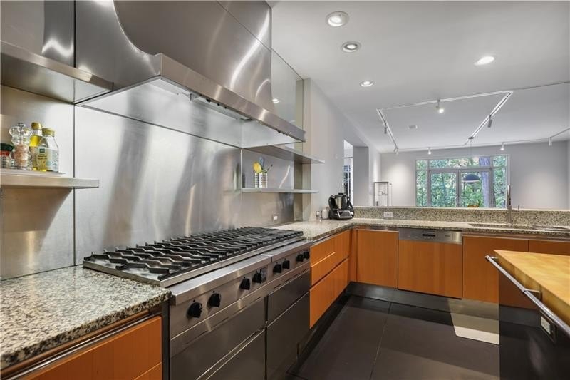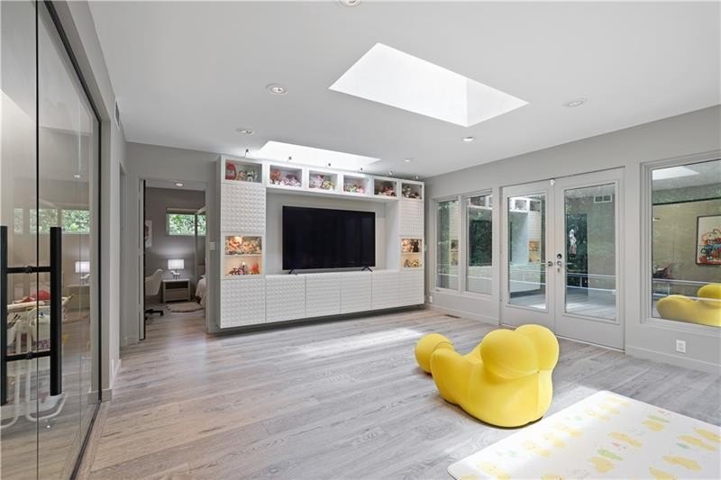 This spectacular contemporary estate on 2.5 private acres stands as a true landmark in Buckhead's prestigious Paces neighborhood. Sophisticated in design yet warm and livable, the property offers a rare balance of modern architecture and everyday comfort. A private drive leads to an expansive motor court, mature landscaping, and a turfed front lawn, setting the stage for the home's striking entrance. Inside, a dramatic foyer with 12-foot ceilings introduces sun-drenched interiors framed by walls of windows, soaring ceilings, and sleek contemporary details. The main-level primary suite boasts a newly renovated bath and an oversized custom closet. Designed for both everyday living and grand entertaining, the main level showcases a vast living room that also functions as a formal dining space for 12+, anchored by a large wet bar ideal for gatherings. Additional highlights include a private office, stylish powder room, and a comfortable family room. The chef's kitchen features stone counters, SieMatic cabinetry, Gaggenau ovens, an 8-burner Russell gas range, and a wine refrigerator, and flows seamlessly into a fireside breakfast room overlooking the lush, private backyard-complete with ample space for a future pool. Upstairs, two bedrooms and two bathrooms are complemented by a spacious bonus room that opens to a covered deck, perfect for year-round outdoor enjoyment. A possible fourth bedroom, currently serving as an office, enhances the home's flexibility. New windows throughout fill the interiors with natural light and frame views of the surrounding greenery. Outdoor living is equally impressive, with porches on both levels, expansive lawns, and multiple areas designed for recreation, relaxation, and entertaining. Located in the sought-after Jackson Elementary district and close to Buckhead's premier dining, shopping, and schools, this remarkable estate offers an unparalleled lifestyle in one of Atlanta's most coveted neighborhoods.