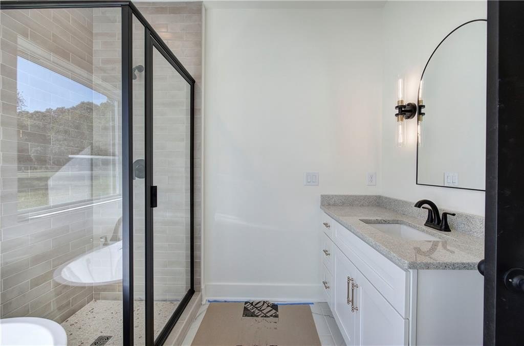 Enjoy open, airy living spaces filled with thoughtful touches like soft-close cabinets and drawers, elegant stone countertops, stainless steel appliances, and a generous pantry. The flooring is a gorgeous coretec LVP in a designer oak color. The inviting family room is perfect for gatherings and everyday living. Retreat to the luxurious primary suite featuring stylish fixtures, double sinks, a tile shower, and a large walk-in closet—your private sanctuary.