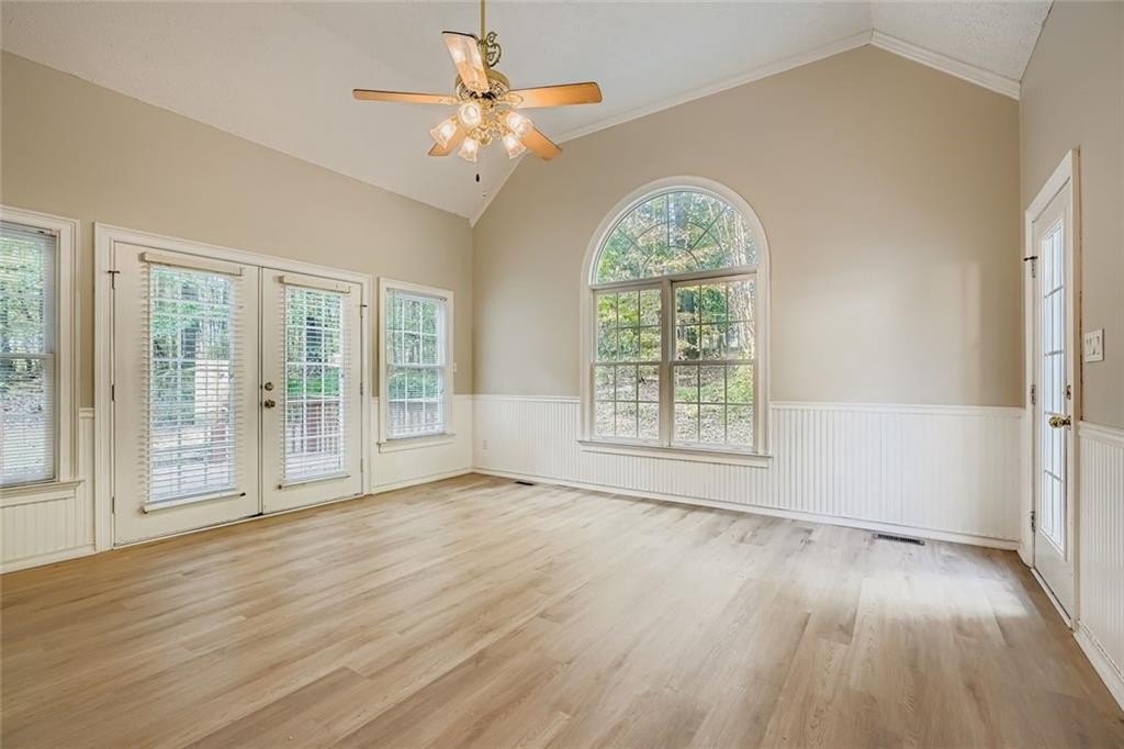 Welcome to this charming 4-bedroom, 2.5-bath home nestled on a peaceful private 2-acre lot in the heart of Fayetteville, GA. As you enter, you'll be greeted by an expansive main floor featuring formal living and dining rooms, connecting to an open-concept kitchen that seamlessly flows into another spacious living area, making it perfect for entertaining. The living area opens into a beautiful sunroom, where you can unwind next to a double-sided fireplace that adds warmth and ambiance to both the living and sunroom spaces. Upstairs, you’ll find four generously sized bedrooms and two full bathrooms. Step outside to the large backyard, which is thoughtfully divided into two sections—perfect for outdoor activities or creating a peaceful retreat. The expansive deck invites you to enjoy the fresh air and views of the private surroundings. This home offers a perfect balance of functionality and comfort, with abundant space for both relaxation and entertaining. Don’t miss the chance to make this beautiful home yours!