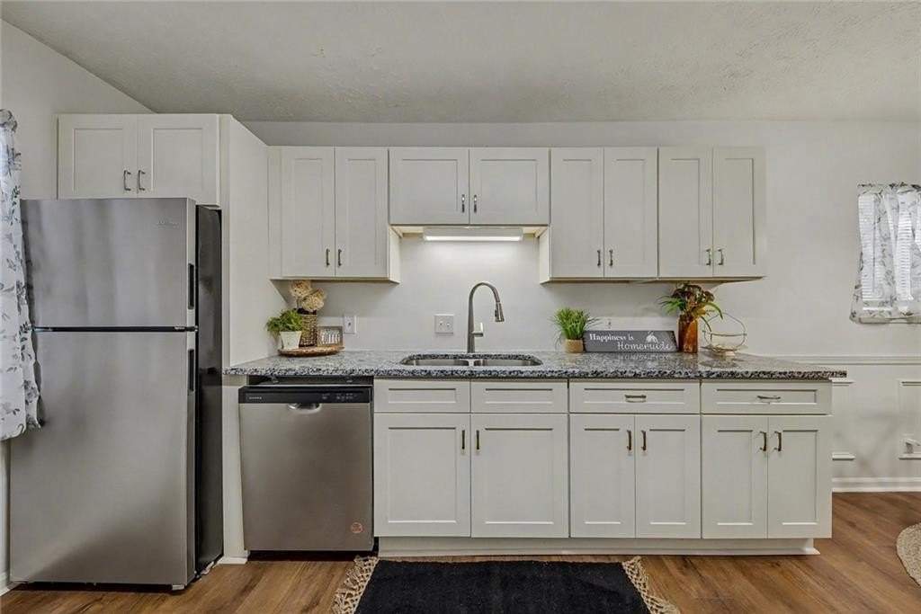 Beautifully updated step-less ranch-style home on a quiet cul-de-sac! This is a fee simple townhome with no HOA fees and no rental restrictions. Just minutes from all the shopping, restaurants and events at Marietta Square. You won’t believe this incredible renovation! The kitchen in this move-in ready home has been thoughtfully renovated with new shaker style kitchen cabinets, granite countertops and stainless steel appliances. The seller has spared no expense with all new flooring, fresh paint, updated light fixtures and updated bathrooms. They didn't stop there...add in a new roof, new Hardie Plank siding that has just been painted as well as new gutters. The front yard landscaping has been updated with new grass and landscape timbers. Follow the winding stone path around the side of the home to enter your own private back yard complete with a brand new privacy fence. This yard is huge and is a perfect place for entertaining, grilling out or just letting your four legged friend run around and explore. Not only is this home close to Marietta Square, it is also within walking distance to one of Marietta’s favorite parks, Laurel Park. Walking trails, playgrounds, open fields, tennis courts and picnic tables are just a few of the amenities at this park. You are also close to Truist Park, Kennesaw Mountain and have quick access to I-75. There are too many upgrades to list here so contact us about a full list of all the renovations. This charming low-maintenance home combines comfort, convenience, and value — schedule your showing today and come see why you’ll love living here!
