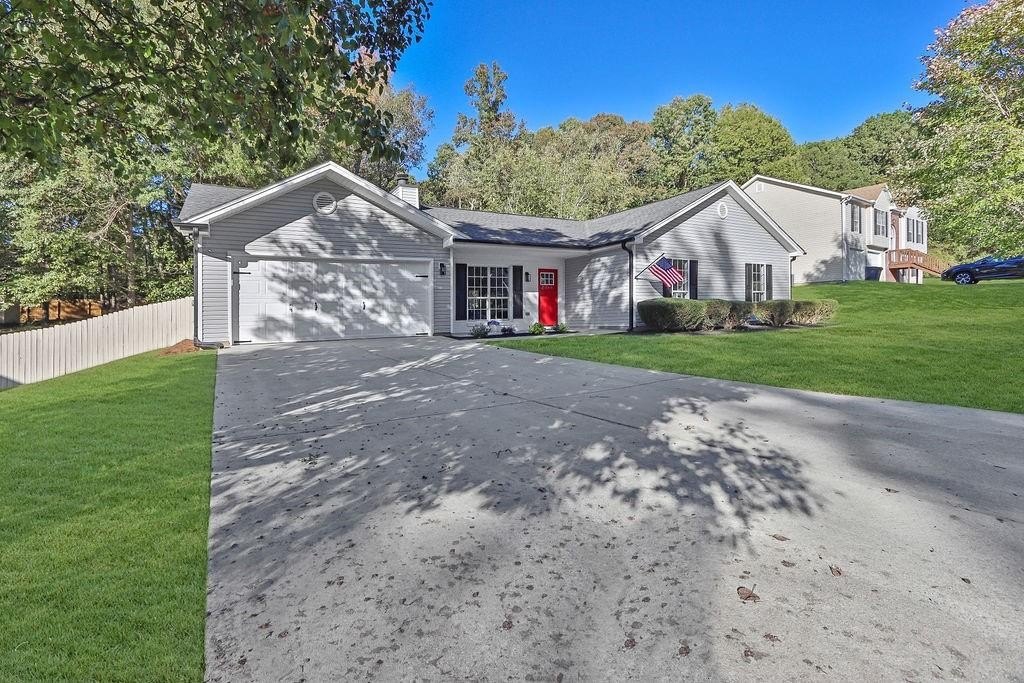 A beautifully updated home situated on a large, level 0.6-acre fenced lot in a no-HOA community. ~~From the curb, the all-new landscaping enhances the charm and appeal of the private outdoor spaces. ~~The exterior also features low-maintenance vinyl siding, offering both beauty and ease of upkeep. ~~Step inside to discover warm, inviting interiors freshly painted throughout with custom accent details ( Shiplap Fireplace and wall - Also in the main bedroom and laundry) adds a touch of craftsman style - We also included new 1x4 trim around all the windows and door frames. ~~ The home has been thoughtfully renovated with new Luxury Vinyl flooring, New appliances, New lighting and New plumbing fixtures, and beautiful New stone countertops in the kitchen and bathrooms! The spacious family room welcomes you with a cathedral ceiling and an eye-catching fireplace, creating a cozy yet open space perfect for gatherings.~~The oversized owner’s suite provides a peaceful retreat with a renovated bath featuring a separate tub and shower and all-new fixtures and hardware. ~~ Additional updates include a large two-car garage with beadboard trim along the walls and freshly painted floor and new garage door motor and openers.~~ A big Plus is the recently replaced and certified septic system for peace of mind. ALSO the new 2.5 Ton HVAC system - sure to keep you cool in the GA Summer and warm in the winter. ~~ Conveniently located near shopping, dining, and interstates. ~~ This home blends modern craftsman comfort with everyday practicality. This Dacula gem truly has it all!