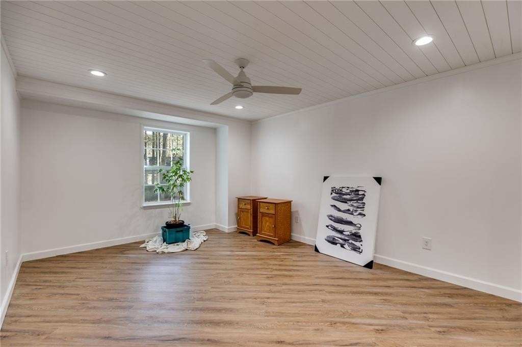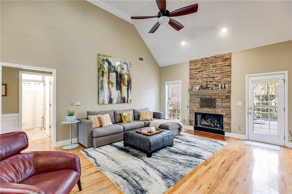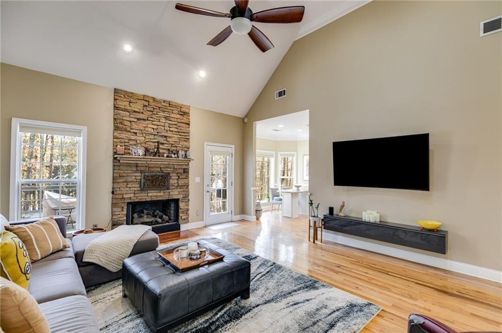 LUXURY UPGRADES AND A FINISHED BASEMENT RETREAT AWAITS! This 5-bedroom, 3-bath ranch offers the perfect blend of style, comfort, and thoughtful details that make it stand out from the rest. Main Level Elegance: Open family room with vaulted ceiling, gleaming hardwoods, and a striking stone fireplace. Sun-filled dining room with plantation shutters and wainscoting-ideal for memorable gatherings. A chef-inspired kitchen with custom cabinetry (glass fronts, pull-out shelves, soft-close doors), granite counters, tile backsplash, stainless hood vent, and built-ins like a cutting board. Conduction cooktop and convection oven make cooking a delight. Charming breakfast nook with a custom granite table to match the counters. Primary suite retreat featuring a double tray ceiling and spa-like bath with HEATED tile floors, walk-in shower, bidet, dual vanities, and custom closet system. Two additional bedrooms plus an updated full bath with extra window, tile flooring, and modern vanity. Finished Basement Retreat: The lower level is more than extra space-it's a destination. Enjoy: Bonus room with shiplap ceiling, recessed lighting, and a kitchenette for entertaining or guests. Two additional bedrooms, including one with a spacious walk-in closet. Gorgeous full bath with heated tile floors, walk-in shower, and multiple shower heads-brand new and never used! Outdoor Living: Relax on the TREX deck with upgraded railing, perfect for coffee or evening gatherings. Covered patio below with views of a landscaped yard featuring new sod and fresh plantings. Peace of Mind Upgrades: Newer HVAC (3 years) and roof (4 years). Move-in ready, and meticulously maintained. With luxury upgrades throughout and a basement retreat built for entertaining or multi-generational living, this home offers a rare combination of comfort and sophistication. Schedule your showing today and see why this one is truly special!