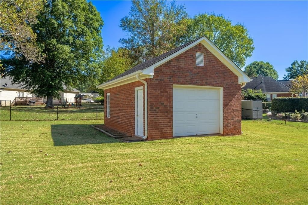 Welcome to Churchill Downs, where timeless brick architecture meets comfortable modern living. This beautiful 5-bedroom, 3-bath home offers space, charm, and thoughtful details throughout. The owner’s suite on the main level provides convenience and privacy, while the four additional bedrooms upstairs ensure plenty of room for family and guests. The heart of the home features a double-sided stone fireplace that creates a warm ambiance, connecting the inviting family room with the breakfast area and kitchen — perfect for both cozy evenings and casual gatherings. Entertain in style in the formal dining room, or step outside to enjoy the fenced backyard, offering both security and serenity. A rare find, the property also includes a 16 x 22 brick garage/workshop — ideal for hobbies, storage, home business or creative projects. Added conveniences such as pre-plumbing for a central vacuum system and front yard irrigation enhance the home’s functionality and appeal. Located in one of the area’s most desirable neighborhoods, this Churchill Downs residence is a perfect blend of elegance, comfort, and practicality — ready to welcome you home. Less than 5 minutes from I-75, shopping, medical, and more.