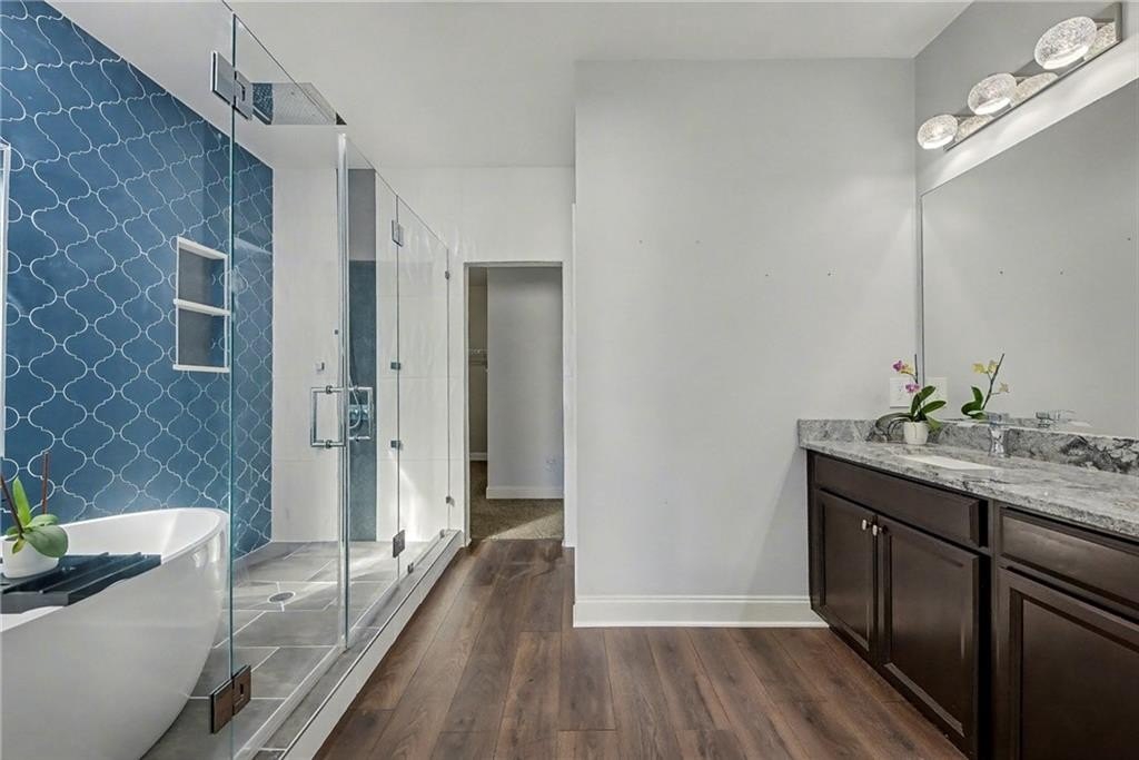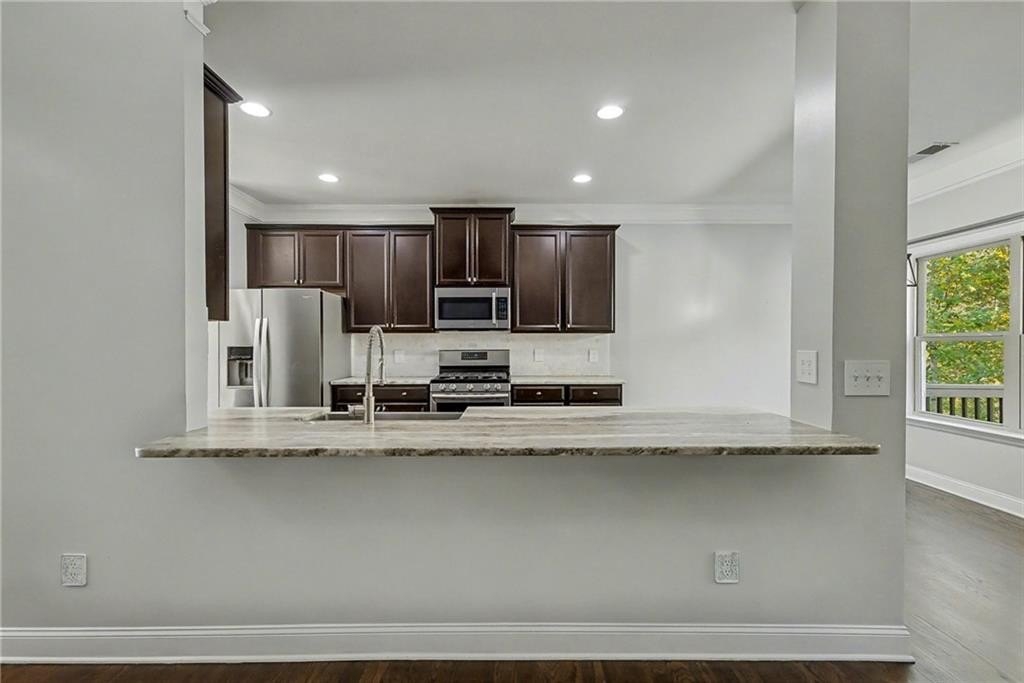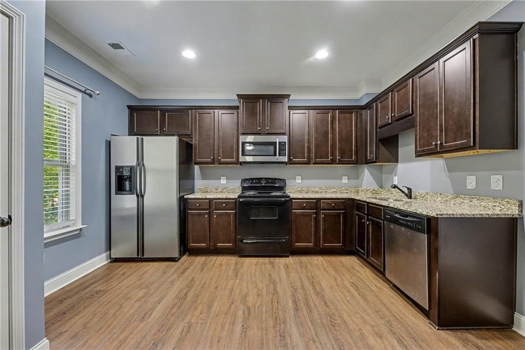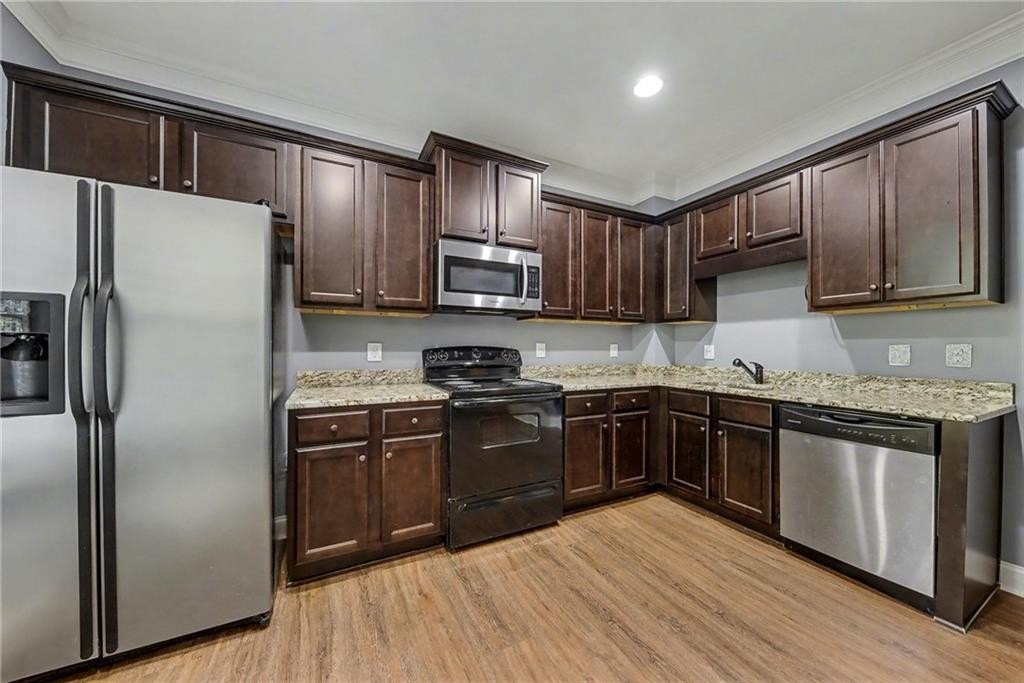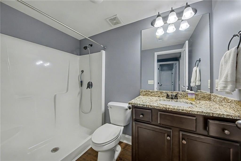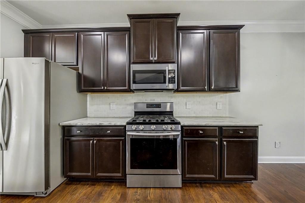 Welcome home to this stunning raised ranch nestled at the end of a peaceful cul-de-sac in quiet Heritage Woods. Thoughtful design and elegant finishes shine throughout, including hardwood floors, crown molding, ample storage, and an open-concept layout that’s perfect for everyday living and entertaining. The spacious eat-in kitchen features upgraded granite countertops, a marble backsplash, deep single-vessel sink, and stainless steel appliances and abundant counter space. The Owner’s Suite on the main level is a true retreat with a luxurious renovated bath boasting a wet room with soaking tub, double shower heads, and a huge walk-in closet. Two additional bedrooms, a full hall bath, and a convenient powder room complete the main floor. Enjoy cozy evenings in the family room with a gas fireplace, or head downstairs to the full in-law suite, featuring two bedrooms, a full bath, media room, and second complete kitchen—ideal for guests, extended family, or rental potential. Step outside to your private, fenced backyard, which is only part of the expansive 1.75-acre lot, offering space to relax, garden, or play. Don't miss the workshop or storage room off of the garage. All just minutes from I-575 and vibrant Downtown Ball Ground, with its charming shops, restaurants, and community events.