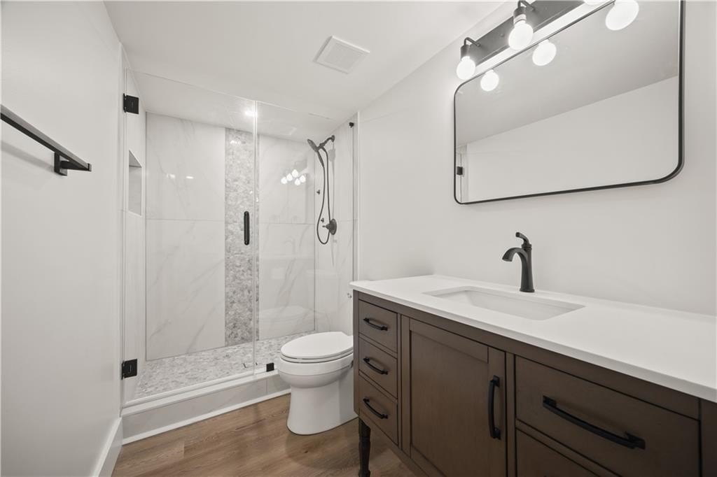 The primary suite on the main includes a spa-style bath and its own laundry hookup for convenience. Upstairs offers four spacious bedrooms, two renovated bathrooms, and a second laundry area. The finished terrace level features a 1BR/1BA suite with private entry, perfect for guests, in-laws, or rental potential.