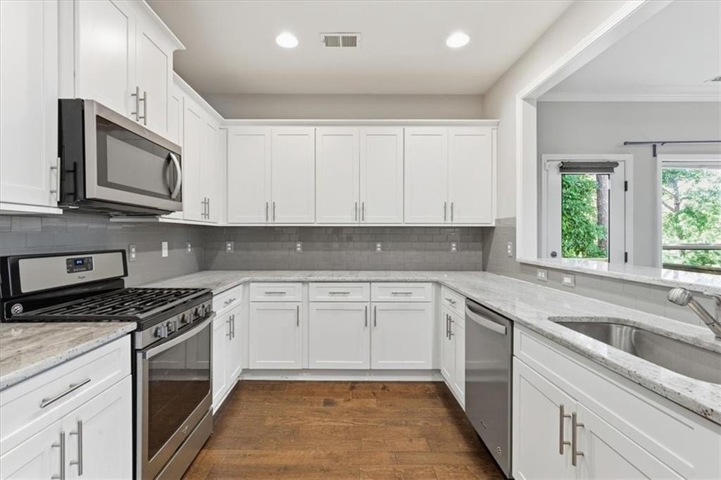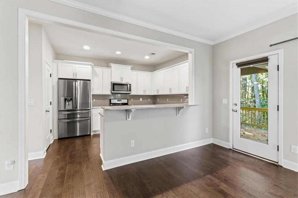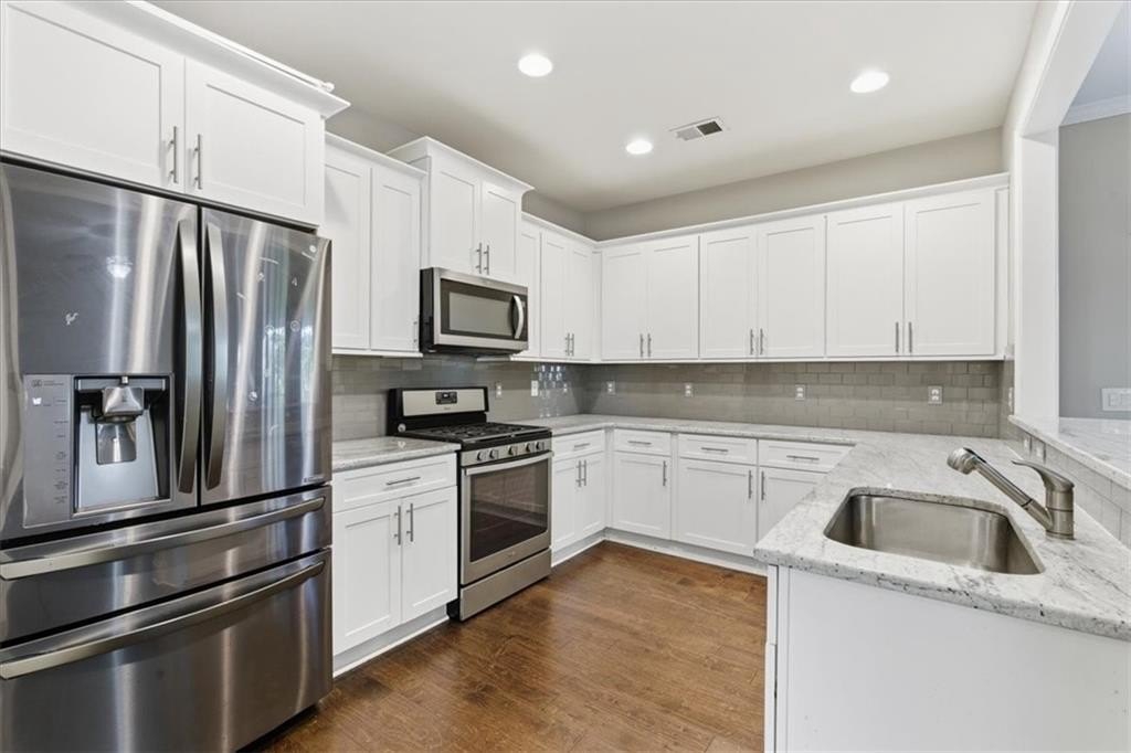 Sought-After Whispering Lake, Kennesaw, on a very peaceful cul-de-sac! Welcome home to warmth and light, where beautiful hardwoods carry you from the foyer into a generous great room anchored by a decorative stone fireplace, and alongside, the chef’s kitchen keeps everything within easy reach, granite countertops, stainless appliances, and a gas range, perfect for weeknight dinners and effortless entertaining. Upstairs, life stays simple with the laundry room just steps from all three bedrooms. The primary suite is a true retreat with a double vanity, separate soaking tub and shower, and a spacious walk-in closet. When it’s time to unwind, step out to the private deck and enjoy a peaceful, tree-lined backdrop, ideal for morning coffee, and weekend grilling. Meticulously maintained and move-in ready, this home sits close to the local college, shopping, dining, and medical facilities. Comfort, convenience, and a peaceful setting. Schedule your private tour today!