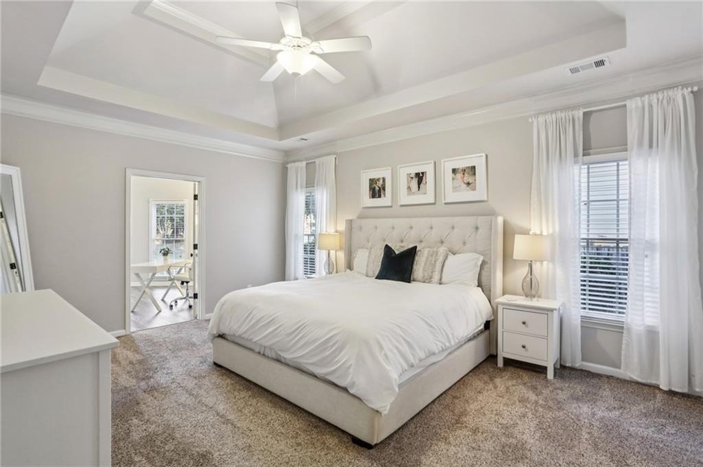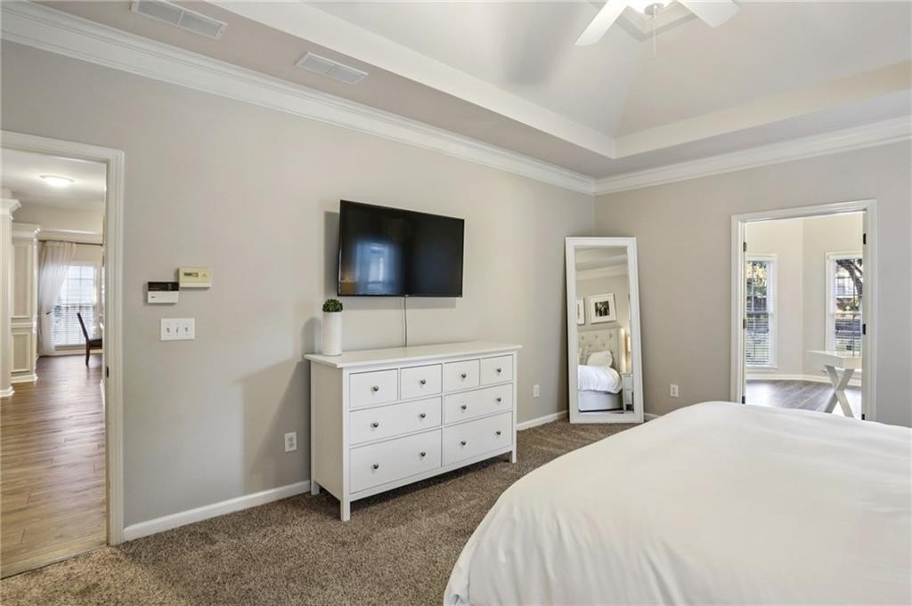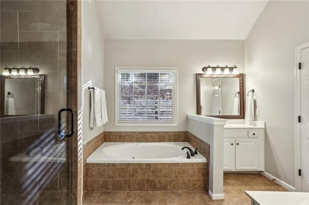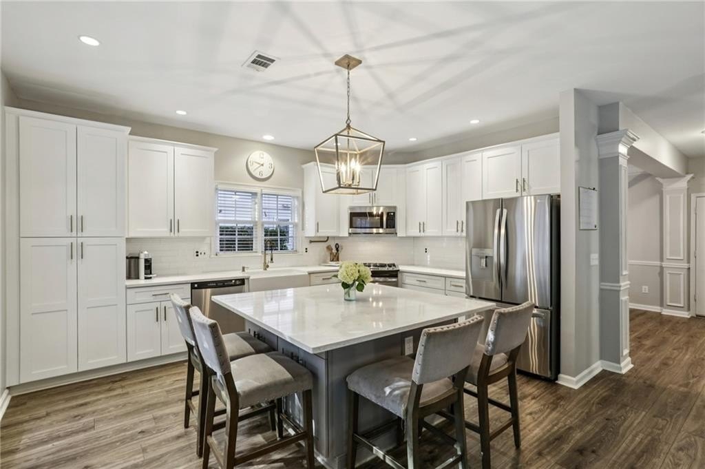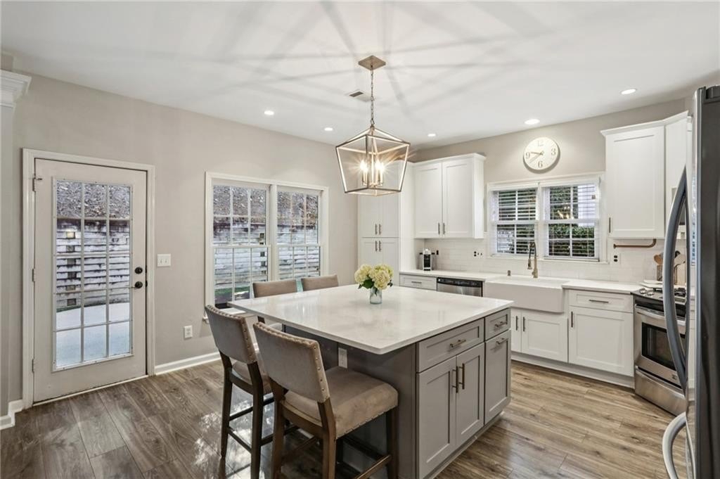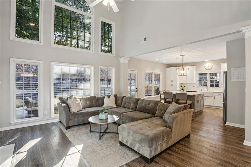 RARE FIND ~ Beautifully updated Master on Main home in Roswell's sought after Coleman Ridge Subdivision! With white painted brick exterior, its stunning curb appeal shines! Open concept floor-plan with 4 Bedrooms, 2.5 Bathrooms plus an upstairs Loft/Flex Space! Upon entering this home you are greeted with a two-story Foyer, a stately staircase, and attractive hardwood style flooring. With neutral paint and designer accents, its warm and inviting Family Room is the centerpiece to this welcoming home. The Family Room has plenty of space for a generous sectional sofa, positioned just right in front of its cozy fireplace and crisp bookcases. Natural light fills this home through the oversized wall of windows and high ceilings! The recently renovated, gorgeous Kitchen has a stainless gas range, stylish faucetry and hardware, and a charming yet modern farm style sink. With quartz countertops and a generous square island, this space is made for entertaining and mingling between rooms. A separate Dining Room with a designer chandelier is ready for your dinner parties! Toward the front of the home, is a bright Office with windows from the floor, the perfect space to work from home, or for a formal living room. The Master Bedroom is on the Main Level, a very hard to find feature in today's market. With trey ceilings, crisp molding and a ceiling fan, this retreat is a restful space. Through its french doors is the Master Bathroom with separate his/her closets, separate vanities, a jetted tub and a heavy glass-enclosed shower. Also on the Main Level is a pretty Powder Room for guests, and the purposeful Laundry Room! Upstairs you will find a Loft Area with large built-in bookcases, that can be well-used for extra fun or function! This area could be great for games, crafts, reading and so much more! Also upstairs are three Guest Bedrooms each with high ceilings a generous closets. There is a Full Bathroom with dual vanities and a dividing door between its shower room. There is also substantial storage with a multi-purpose closet, walk-in Attic space, and pull down access stairs to a second Attic area up top! Surely not to be missed, the wooded, shaded and fenced Back Yard is ready for relaxation or fun with its extended patio with easy spaces to add a hot tub or play area! Best of all, you will love the maintenance-free and pet-friendly turf lawn! This home has been well cared for and updated with a new roof, new gutters and exterior paint (2022), new main level flooring (2020), new garage door (2019), new hot water heater (2022), AND new HVAC units (2020 and 2022)! Coleman Ridge is a friendly and social 62-home neighborhood built in 1998/1999, with an active Homeowners Association, and an optional access to Swim/Tennis with membership at the front intersection of neighborhood. This home is zoned for excellent schools, has an award winning park system, sidewalks to the Chattahoochee River area, and is such a short drive to retail with grocery, Starbucks, UPS Store, and more. A huge draw to this area is Historic Roswell known for Alive After Five, top restaurants, boutiques, galleries and unique cultural offerings so closeby! Don't miss out on this amazing home, come visit today!