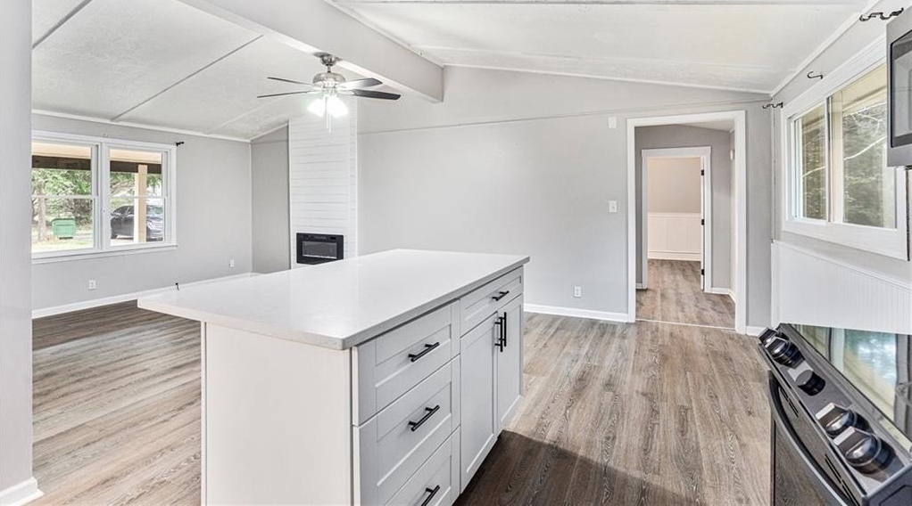 This beautifully updated home features a functional split-bedroom floorplan and thoughtful design throughout. The kitchen boasts new quartz countertops and backsplash, a large island, and charming beadboard accents. The laundry room and primary bath feature shiplap accents that add a modern farmhouse touch.