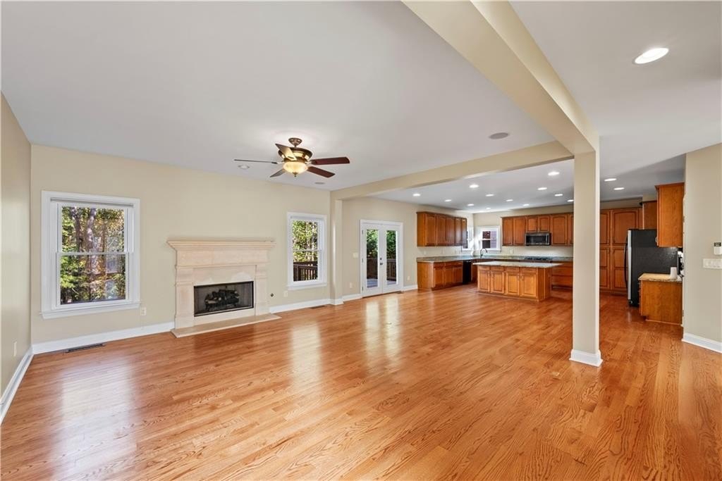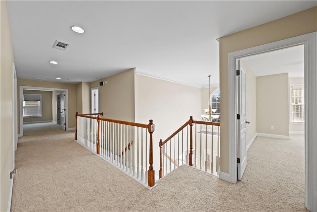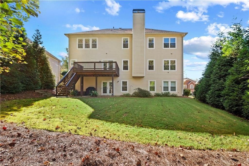 Mansion style home in beautiful south west Forsyth County! Step inside this stunning 8-bedroom, 5-bath home in one of Cumming’s premier swim and tennis communities—where nearly 5,500 square feet of beautifully finished space blends elegance, light, and livability. Gleaming hardwoods span the main level, complemented by brand-new double-pane windows throughout and a four-year-old roof. From its open layout to its thoughtful details, this home offers space and comfort rarely found at this level. The main floor centers around an impressive kitchen—an oversized island overlooks the great room and a wall of windows with views of the wooded backyard. A generous dining room, full guest suite with attached bath, and multiple living areas make entertaining effortless. Upstairs features five bedrooms including a stunning primary suite with dual walk-in closets, spa-inspired bath, and private laundry. The finished terrace level adds versatility with two bedrooms, a full bath, a large media or recreation room, and pre-wiring for a kitchenette—ideal for guests or an in-law suite. Out back, enjoy a large deck overlooking the landscaped, wooded yard. With an unbeatable location just minutes from GA-400, The Collection, and Cumming City Center, this home is zoned for Vickery Creek Middle and the coveted West Forsyth High School.