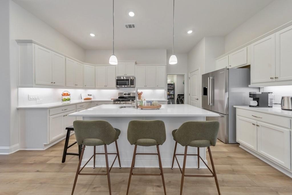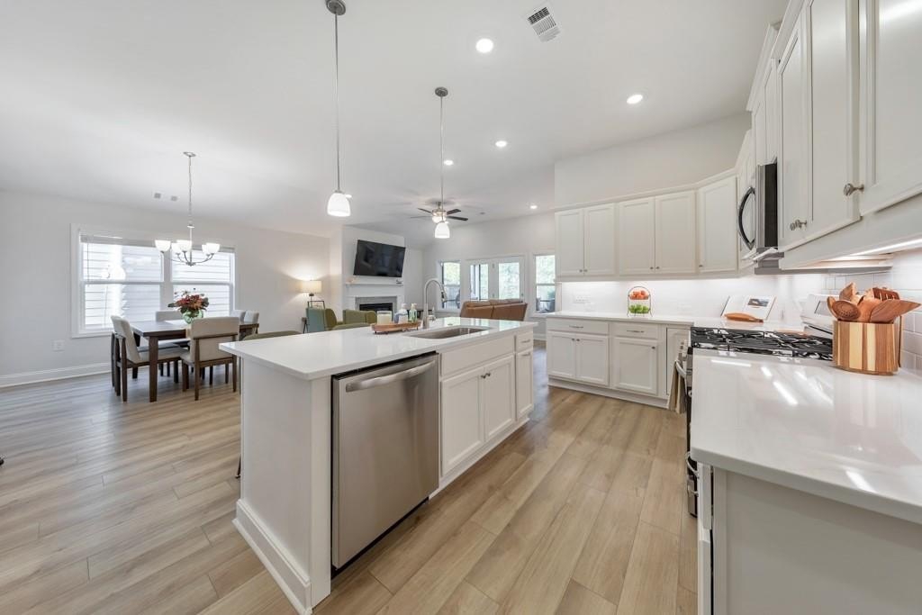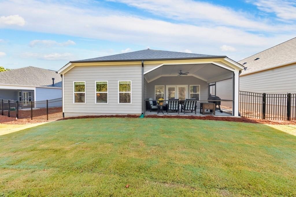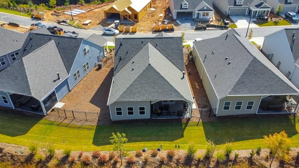 Welcome to this stunning 3 bedroom / 3 bathroom home built in 2024 in the highly desirable 55+ Madeira community! This beautiful home offers modern comfort, thoughtful design, and an unbeatable location. Enjoy your morning coffee on the cozy covered front porch before stepping inside to an open and airy floor plan filled with natural light. The modern kitchen features white cabinets, stone counters, a center island with seating, stainless steel appliances, and a pantry. The fireside family room flows seamlessly to the open concept dining area, creating the perfect space for everyday living and entertaining. A separate flex room provides the ideal spot for an office, sitting room, or hobby space, and the laundry room is conveniently located just off the kitchen. The spacious primary bedroom boasts vaulted ceilings, an ensuite bathroom with double vanities and a glass shower, and a large walk-in closet. A secondary bedroom on the main level has easy access to a full bathroom in the hall. Upstairs, you’ll find an additional bedroom, full bathroom, and ample storage space—perfect for guests or extended family. Step outside to the screened-in patio overlooking the level backyard greenspace, or enjoy the fenced-in side yard—ideal for gardening or pets. The home also includes an attached 2-car garage for convenience. Residents can take advantage of the community clubhouse and active neighborhood lifestyle. Prime location close to Downtown Acworth, Kennesaw, and Marietta, with easy access to major roadways, shopping, dining, and entertainment—this home truly has it all!