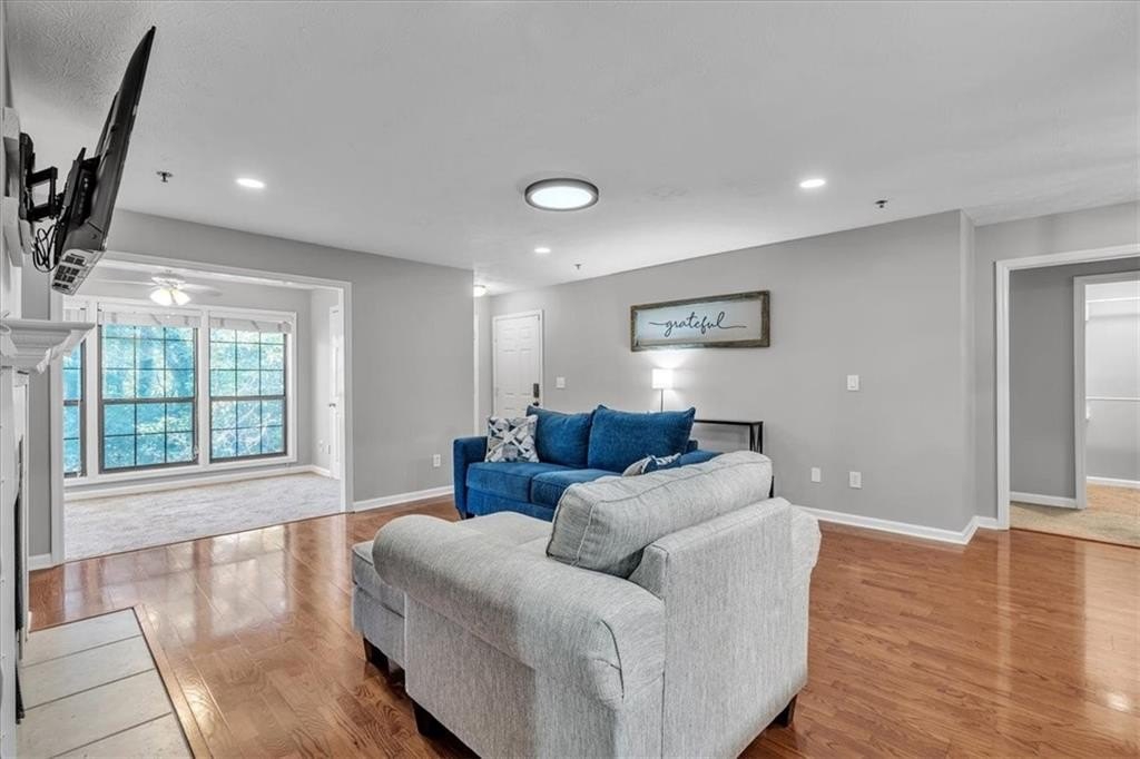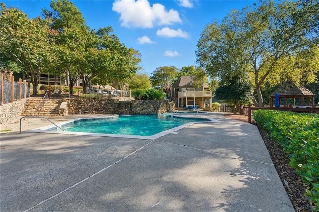 This well maintained, stepless 2BR/2BA Condo is located in a gated swim/tennis community in the heart of Vinings! Features updated kitchen and baths as well as hardwood flooring in the fireside living space. The updated kitchen features solid surface countertops and stainless appliances. Great flex space off the living area is perfect for office or sunroom and leads to the private deck. Roommate floor plan with a bedroom and bath at each end of the unit. The large deck is accessible from the sunroom and secondary bedroom and faces the wooded area at the rear of the neighborhood, providing a very private and tranquil feel. Community amenities include swimming pool, tennis court, dog park, clubhouse, car wash, fitness center, grills & trails.