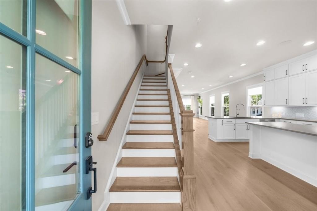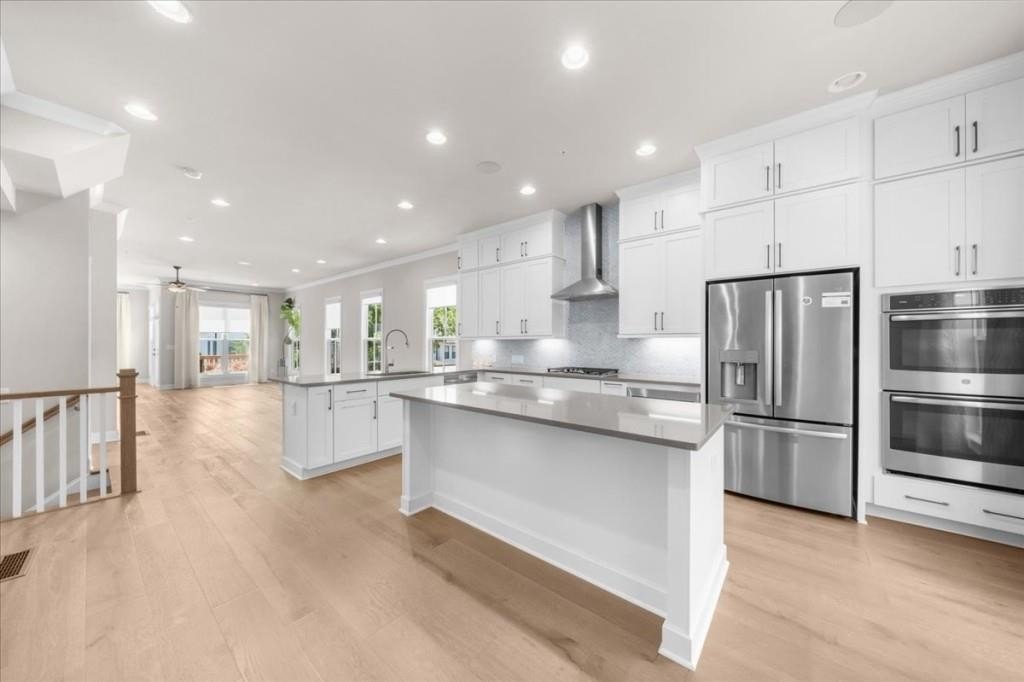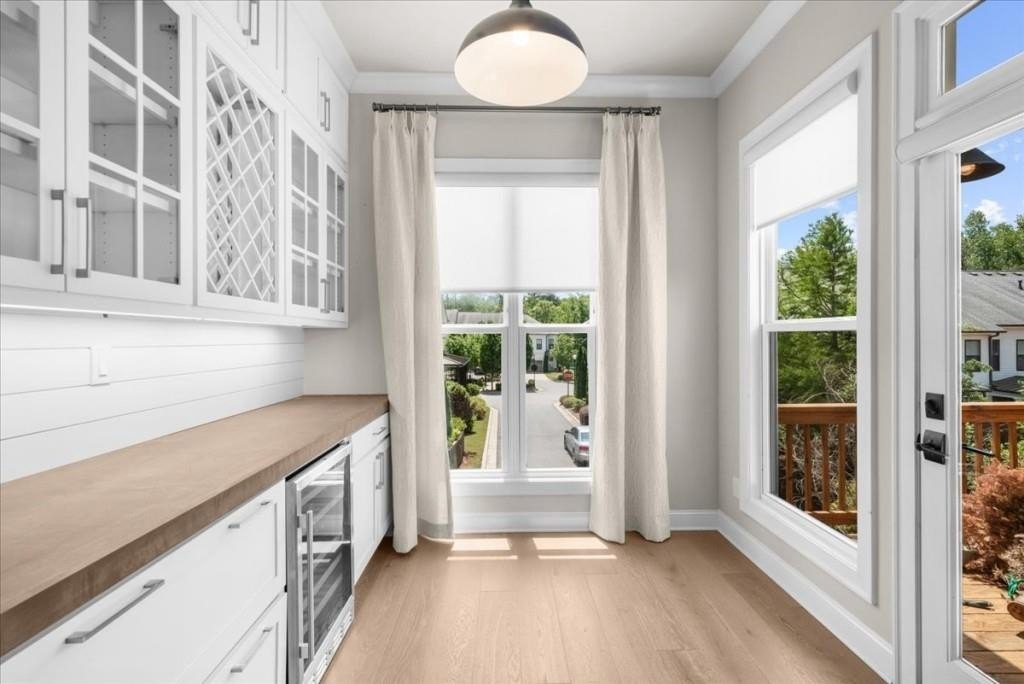 Stunning end unit located in highly sought after Chelsea Walk in the heart of Downtown Alpharetta! Featuring 3br 3.5ba, elevator servicing all 3 levels, designer kitchen with top of the line appliances, quartz countertops, oversized island and breakfast bar. Open floor plan concept continues to the living room with fire & ice gas fireplace, formal dining, full custom bar with wine chiller and custom cabinetry, a sunroom/flex space overflowing with natural light, powder room and large grilling deck. Secondary level offers an expansive primary suite with a spa-like bathroom with massive frameless glass walk-in shower with rain head and handheld wand, walkin California custom closet builtins. Spacious ensuite guest bedroom and full laundry room. Terrace level offers additional bedroom with a full bathroom leading out to a two car garage with ample storage. This gated community offers a neighborhood dog park, pocket parking and overflow guest parking with plenty of green space. Walking and biking trails directly behind the neighborhood.