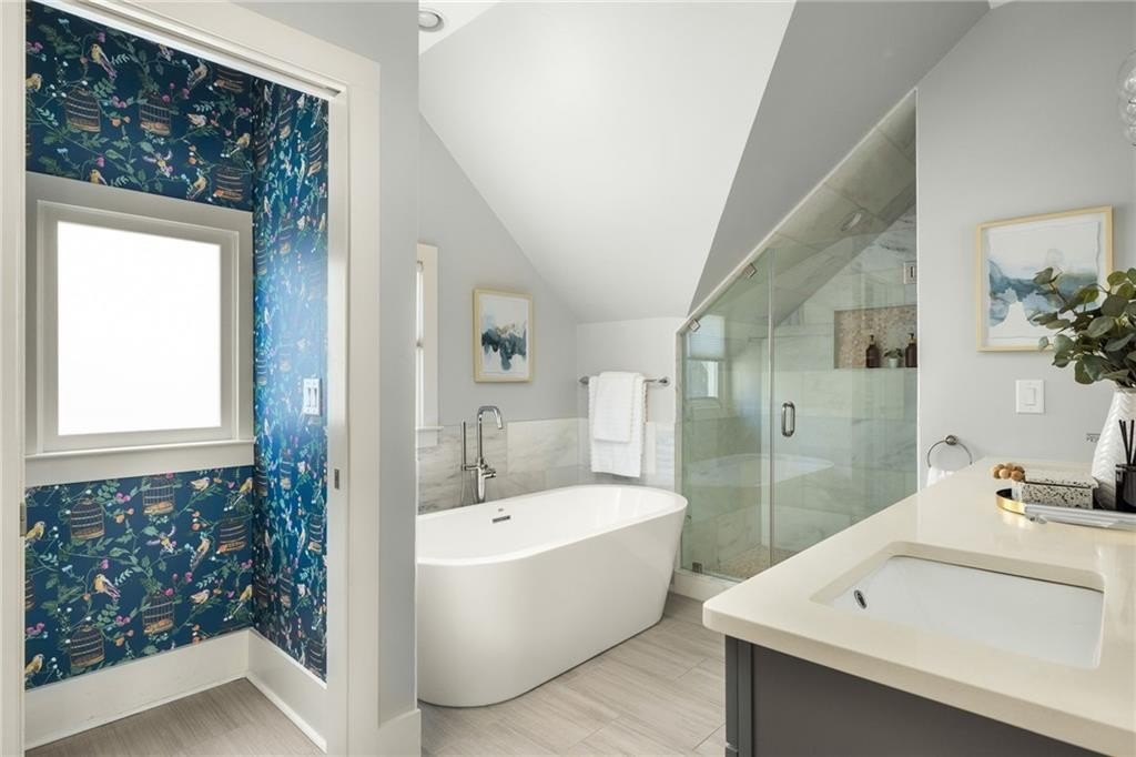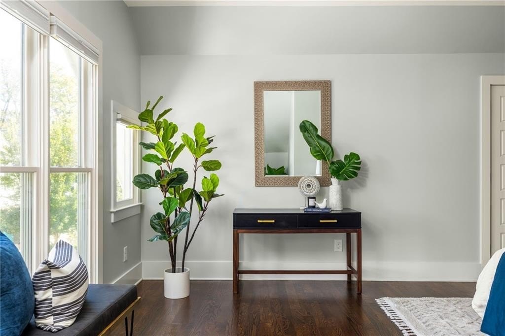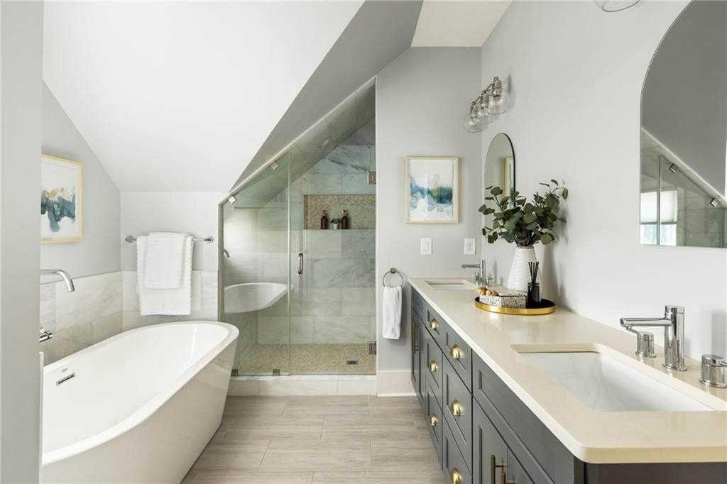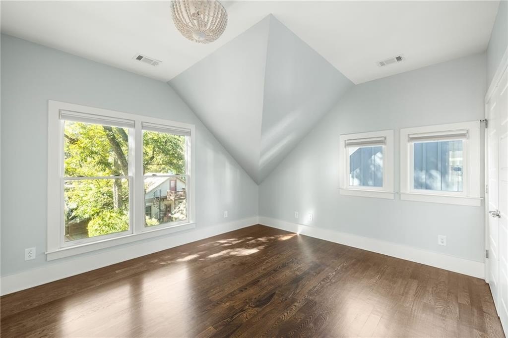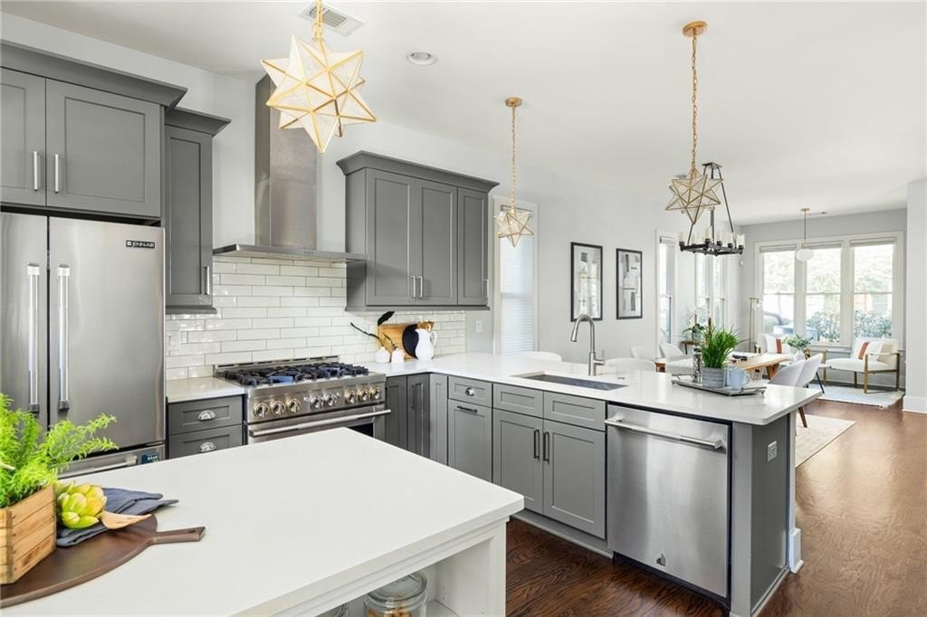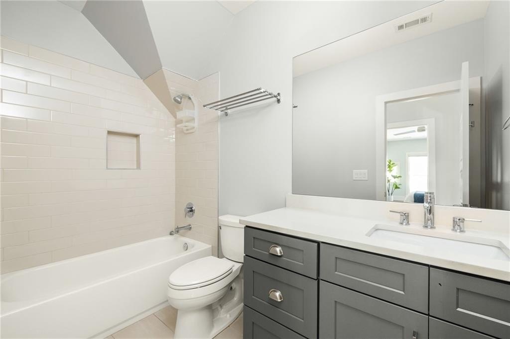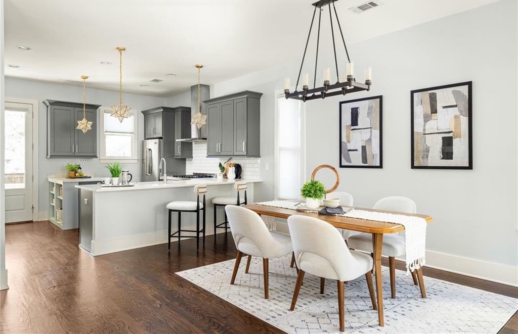Welcome to La France Walk, a private neighborhood intentionally created to foster connection, sustainability, and a true sense of community. From the charming exterior, walk in to find soaring ceilings, abundant natural light, and an open floorplan with gas fireplace, custom built-ins, fresh paint and refreshed hardwood floors throughout. Chef’s kitchen features a professional style JennAir gas range, quartz countertops, and a breakfast bar for casual dining. Designed with flexibility in mind, the first-floor suite features a private entrance and updated bathroom, easily serving as a guest suite, home office or income-generating ADU. Upstairs, you’ll find a spacious loft perfect for a home office, den, or playroom. The oversized primary suite provides a serene retreat with newly updated bathroom including a spa-like shower system. Bonus space within the suite offers room for a Peloton to be tucked out of sight, reading nook, or second walk-in closet. Two additional bedrooms and another full bathroom complete the upper level. Built with energy efficiency in mind, this home includes solar panels, spray foam insulation, zoned HVAC, custom rain barrels, and a 220V outlet ready for your electric vehicle. The low-maintenance yard is beautifully landscaped with native plants. Outdoors, enjoy a spacious front porch for morning coffee or evening chats with neighbors, a rear patio for al fresco dining, and a private fenced yard for pets or play. You’ll also find an outdoor storage closet and side shed. Within La France Walk, residents enjoy a shared gathering space with porch swings, a firepit, and a bike pump station, all designed to encourage deep community and connection among neighbors. Located just two blocks from MARTA, minutes to the BeltLine, and surrounded by shops, parks, and restaurants, this home offers a perfect blend of location, design, and intentional community right in the heart of Edgewood.