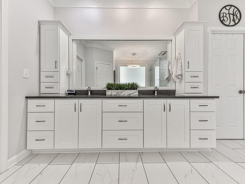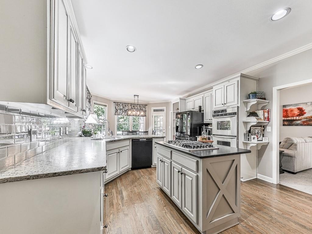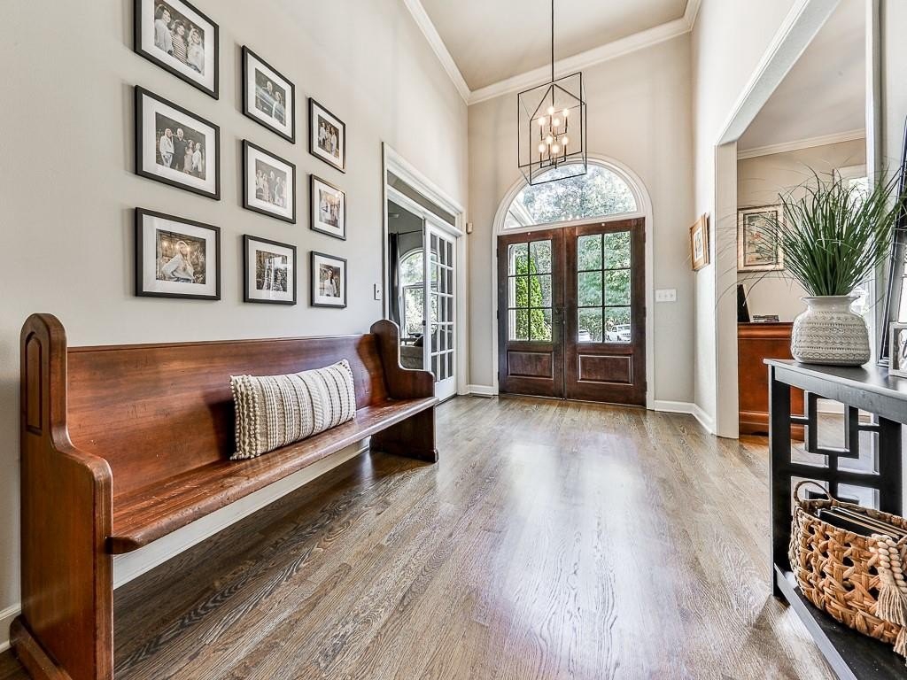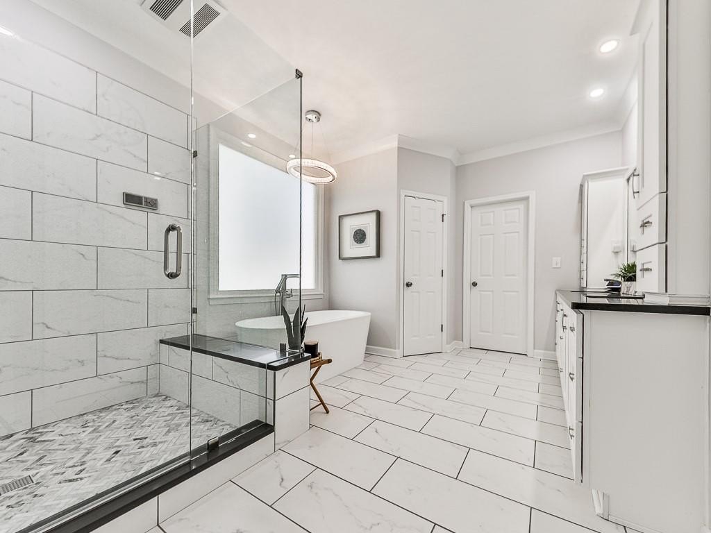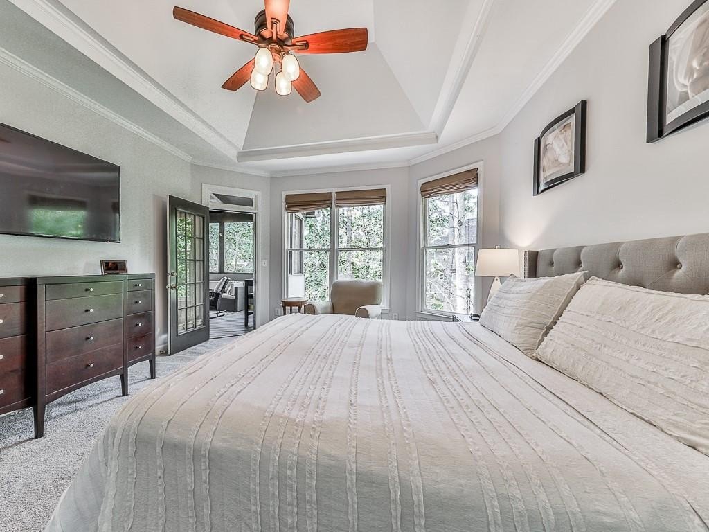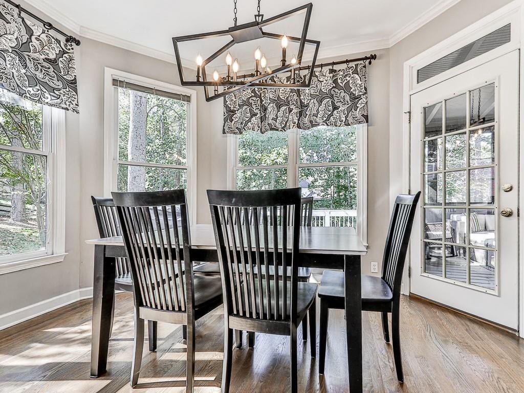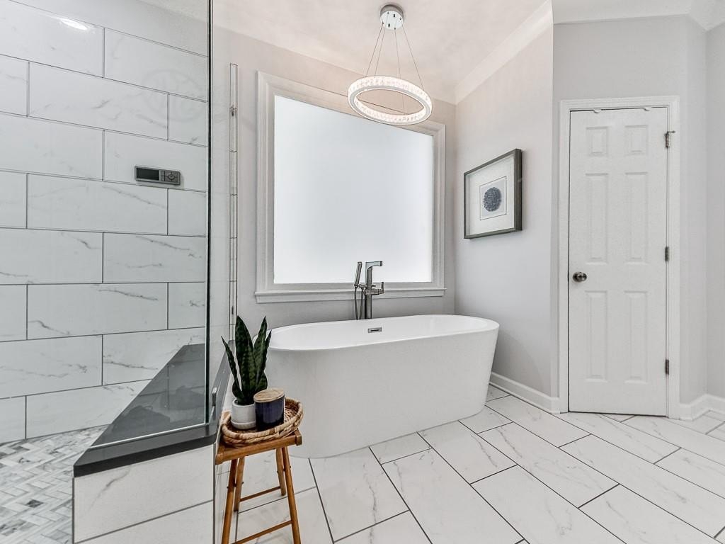 Discover luxury and comfort in this expansive 5-bedroom, 4.5-bathroom home, perfectly situated on a level cul-de-sac lot. The primary suite, conveniently located on the main floor, offers a serene retreat with a spacious layout, direct access to the screened porch, and a newly updated primary bathroom featuring a luxurious soaking tub and a large walk-in shower with elegant finishes. Gleaming hardwood floors flow throughout the main level, enhancing the home’s sophisticated charm.
