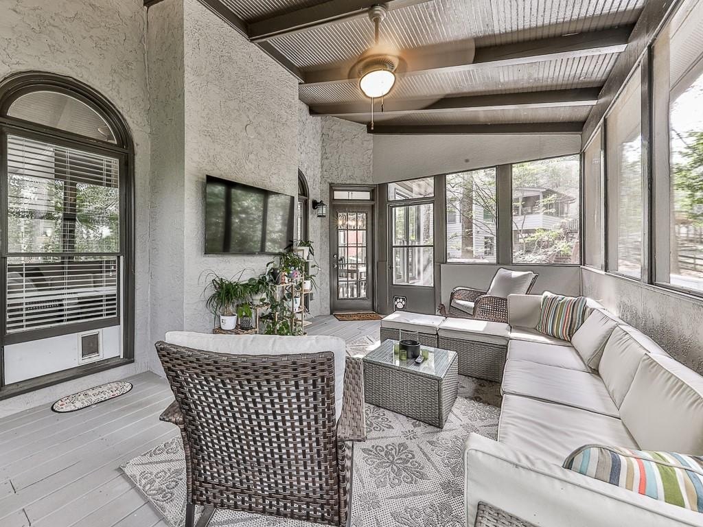 Step outside to enjoy the screened porch and deck, overlooking a fenced backyard with a charming fire pit—ideal for relaxation or outdoor activities. Upstairs, three additional bedrooms and two full bathrooms provide ample space for family or guests.