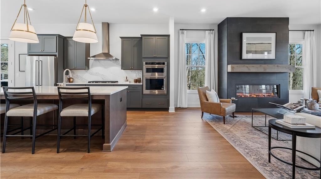 Ready NOW, Our beautiful Harleigh Model is for sale! Repose offers a serene sanctuary where nature and harmony intertwine beautifully. We are located just minutes from Atlanta in the vibrant and charming city of Chamblee. This thoughtfully designed community combines tranquil surroundings with easy access to schools, shopping, dining, and healthcare The Harliegh plan features 3 upper bedrooms along with 2 full baths, and 1 lower bedroom and full bath, perfect for an in-law suite or home office. The expansive open concept floorplan is great for entertaining family and friends. Enjoy the outdoors on the covered porch on the upper and lower levels. This community is SHOWN BY APPOINTMENT ONLY.
