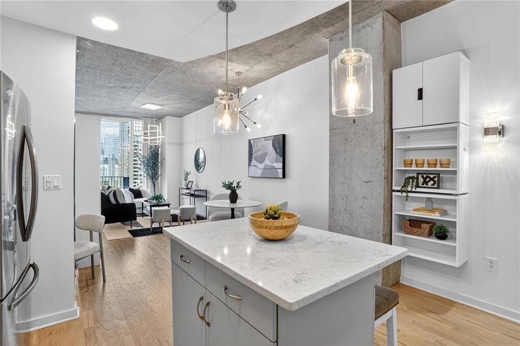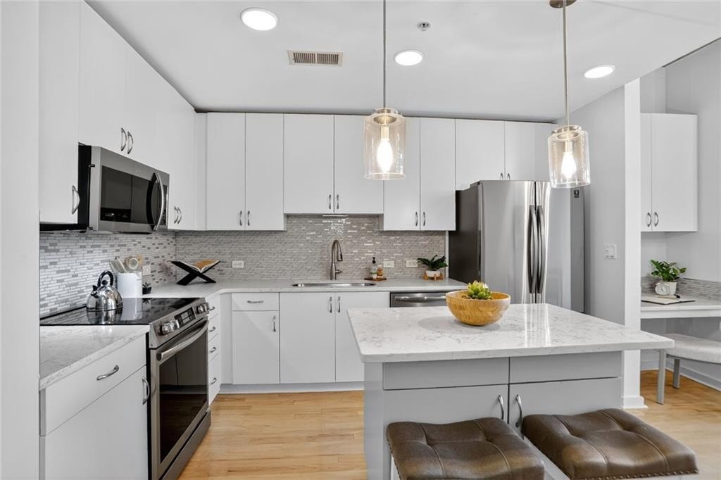 Experience the perfect blend of style, space, and location in this stunning Midtown retreat. This beautifully updated condo is a rare find—offering a seamless mix of modern touches and classic charm. The open-concept layout feels spacious and inviting, with oversized windows that flood the home with natural light and frame breathtaking views of the city skyline. Step into the sleek, updated kitchen featuring brand-new appliances and contemporary finishes, all set against the backdrop of rich hardwood floors that run throughout the home. Every detail is designed to create a warm, comfortable space that feels instantly like home.