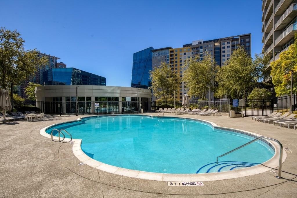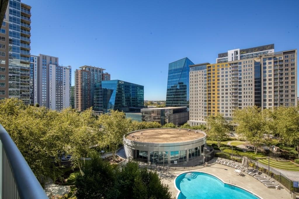 -less foot traffic from Marta (typically people get off and hang around the other side of the building by Publix/the liquor store) -less residential buildings on the stretch of the street (other building also has entrance to The Mark) -I.e. feels safer to enter the building in our tower instead of the other tower -restaurants and exercise studios on W Peachtree as opposed to nail salons, tanning, laundromat -less noise from students (the mark across the street, U-house on spring street) -reliable view (no view from north building) -less rentals in East tower (north tower has like 50% rentals, more move ins-outs, whereas 950 has lots of long-term residents) -less ambient noise (some street noise rather than highway noise and nightlife noise from spring street) Also, facing the pool and garden from the 10th floor is a permanent view. Many people who got other units thought they'd get a nice view and were quickly disappointed when other high rises were built