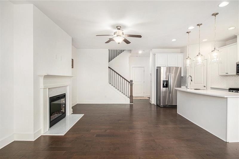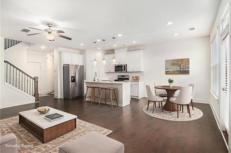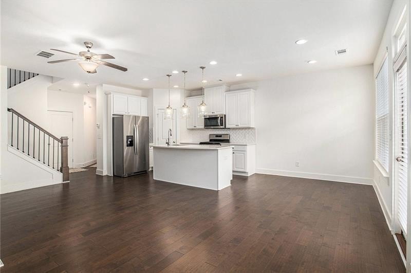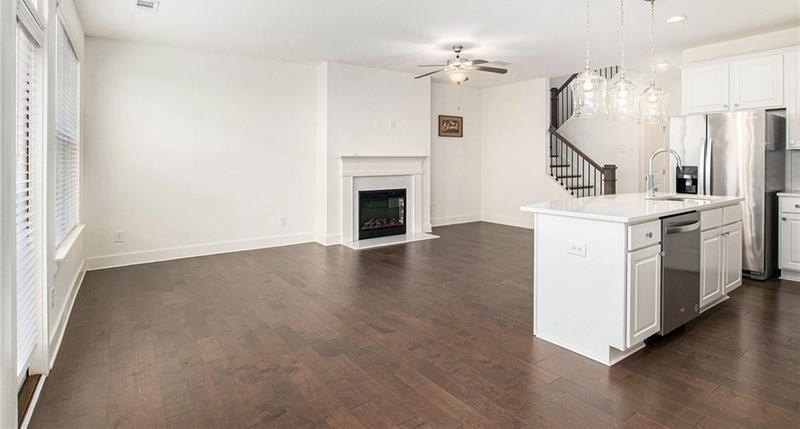 3.5% Assumable FHA! VACANT QUICK CLOSE 62 Garrison Drive, a move-in-ready, modern townhouse offering low-maintenance living in a prime Winder location, just minutes from Hwy 85. This 3-bedroom, 2.5-bath home features an open-concept layout with luxury vinyl plank flooring, soaring ceilings, and an inviting electric fireplace in the spacious living room. The gourmet kitchen showcases painted cabinetry, a large quartz-topped island, stainless steel appliances, and elegant pendant lighting, ideal for both everyday meals and entertaining. Upstairs, you'll find a versatile loft-style second living area and a spacious, light-filled primary suite with two additional bedrooms. Enjoy a private, fenced backyard with a patio perfect for grilling or relaxing. HOA includes exterior maintenance, pest control, termite bond, and swim amenities. No rental restrictions make this a great investment opportunity as well. Don’t miss this well-appointed townhome that blends modern comfort with convenience!